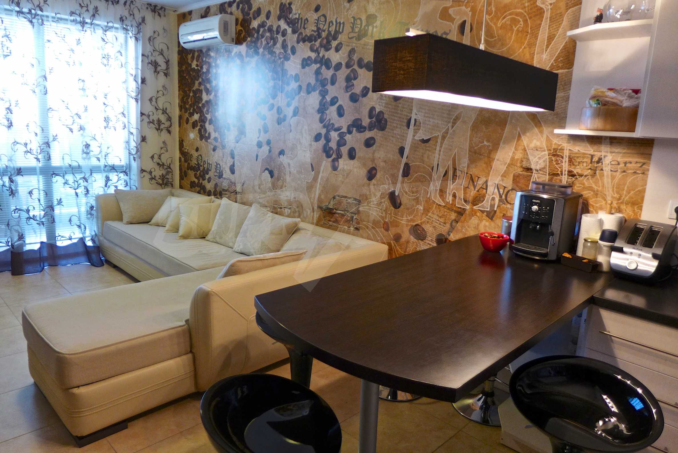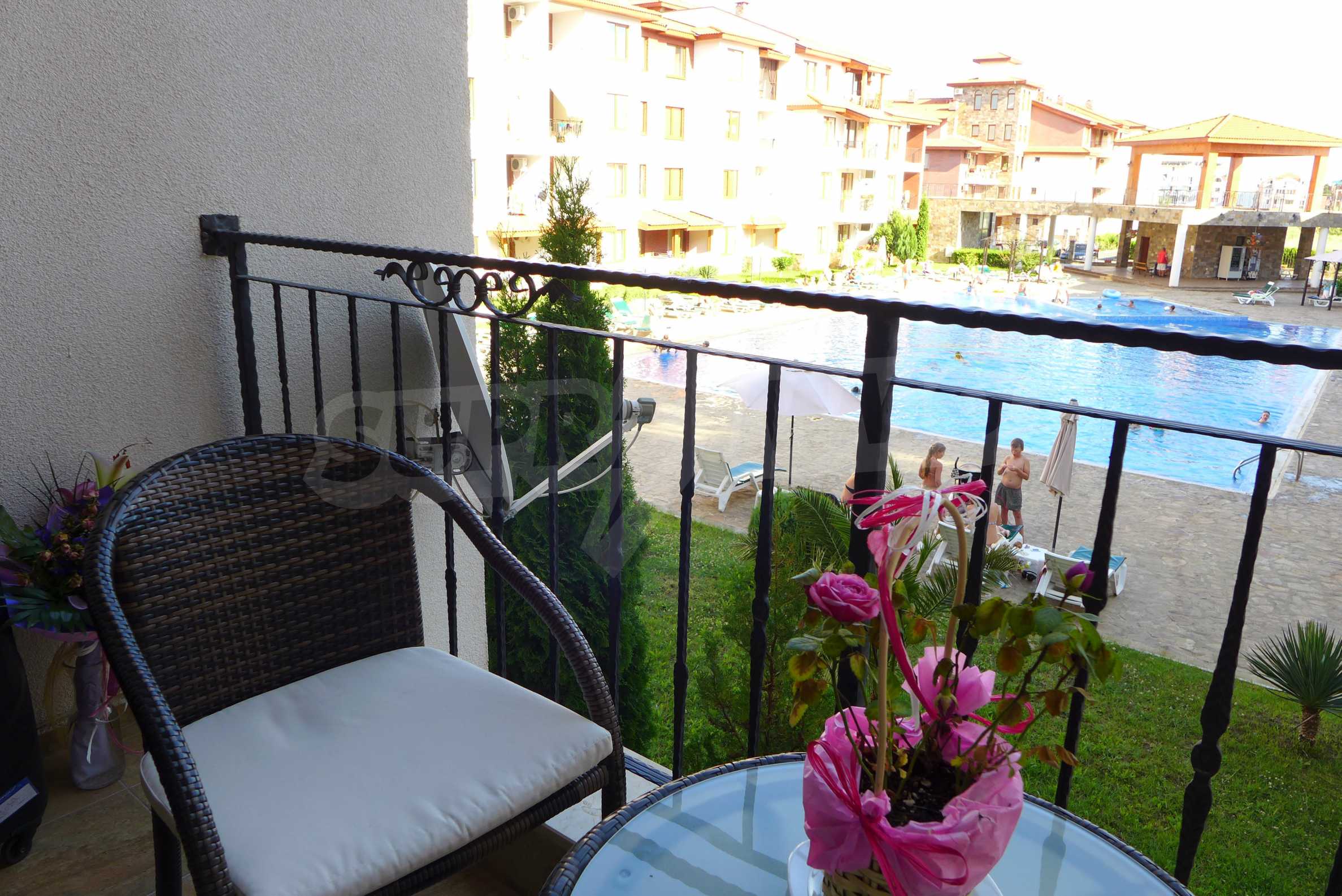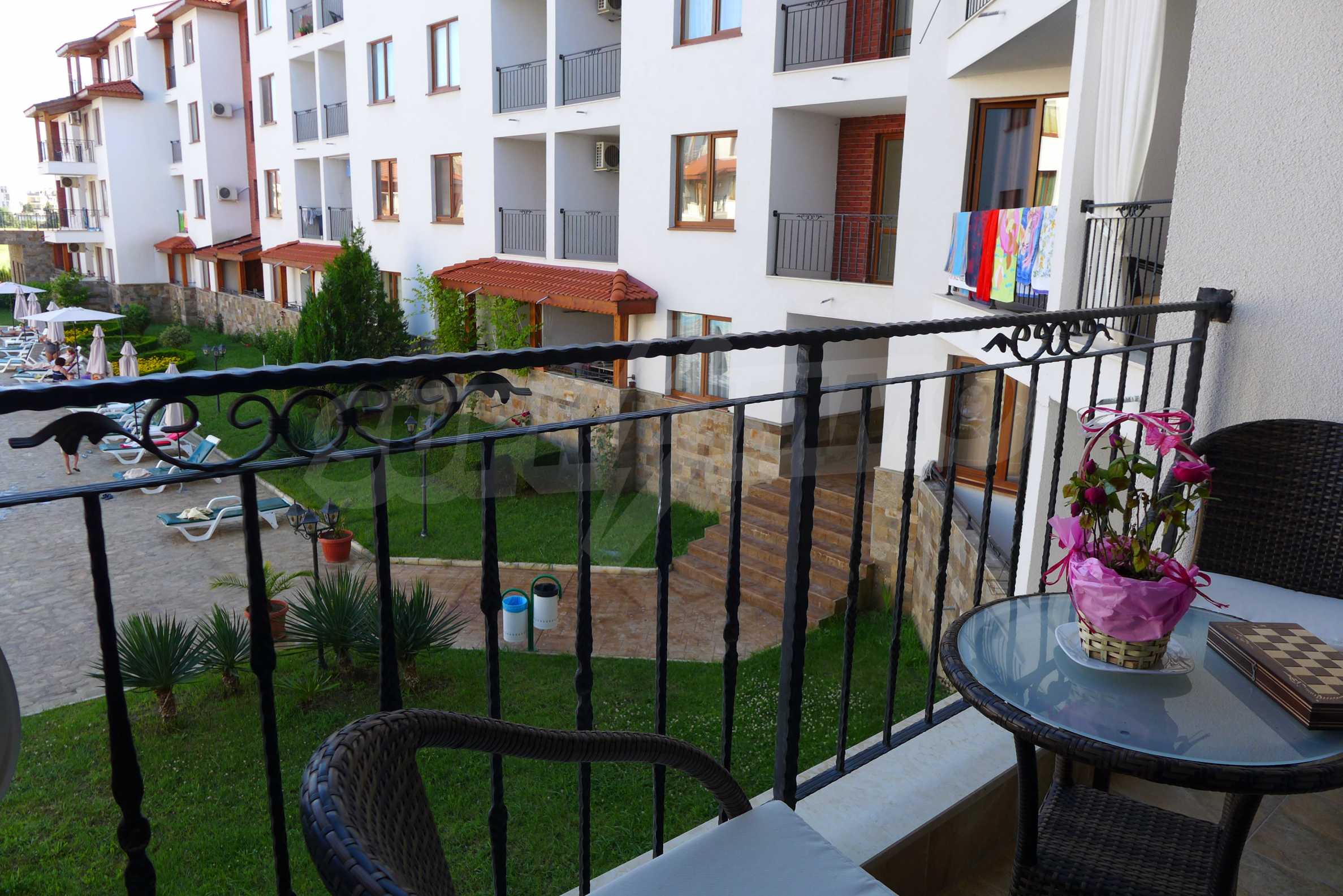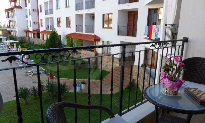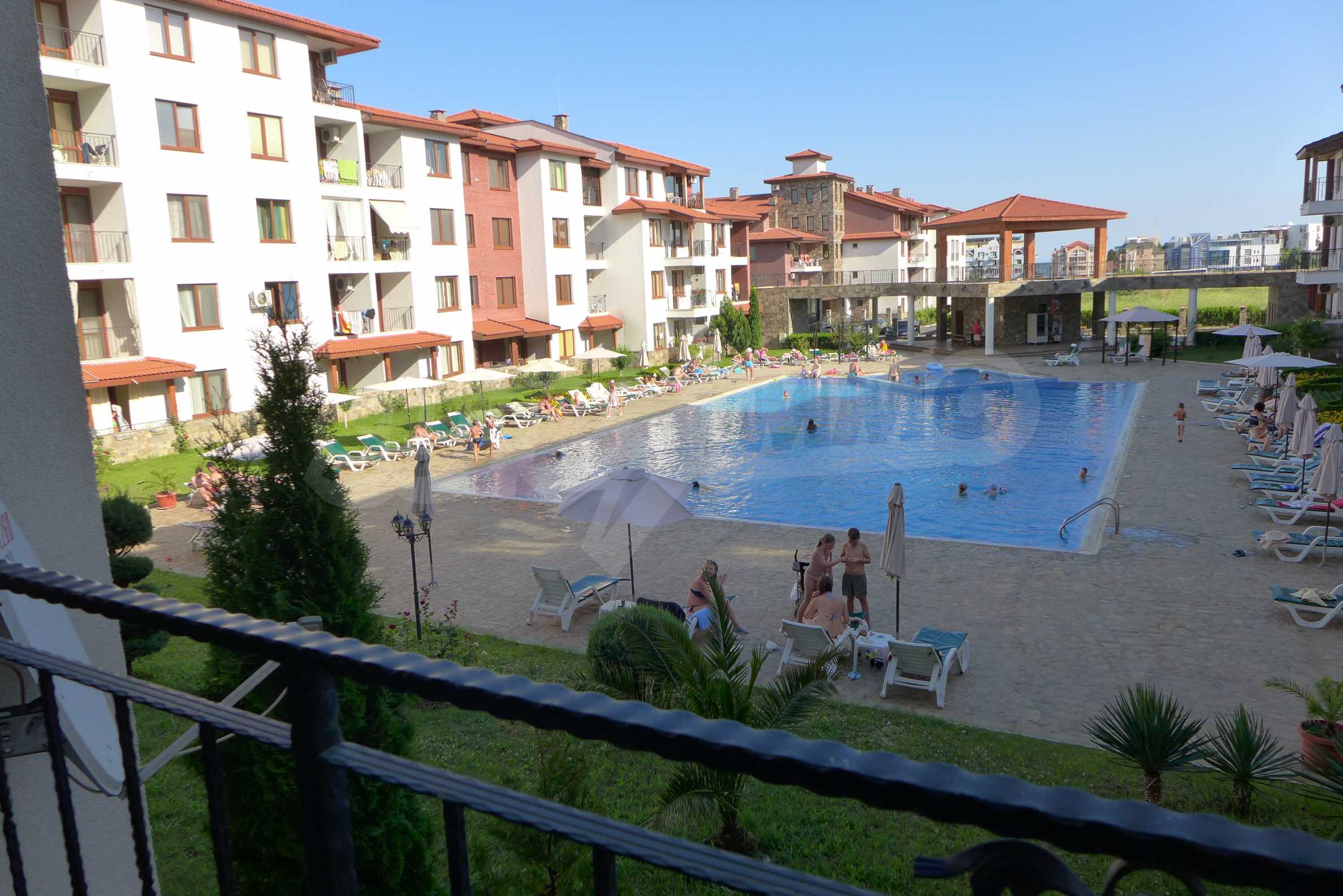 We are pleased to present for sale a two-bedroom, furnished holiday home only 200 meters from the sea in a picturesque and peaceful region between Ravda and Nessebar. The apartment is part of the gated complex Apollo 6, completed in 2009 with a total area of 11,945 sq.m., land area of 8095 sq.m. and total number of units - 170 apartments, 60% of which have panoramic views of the swimming pool in the complex.