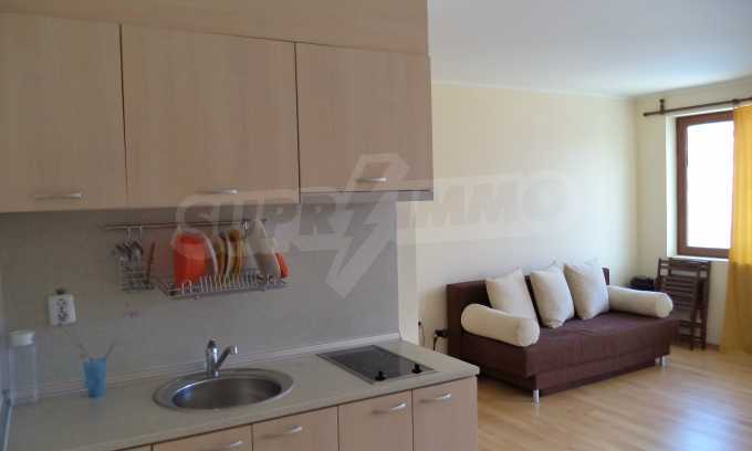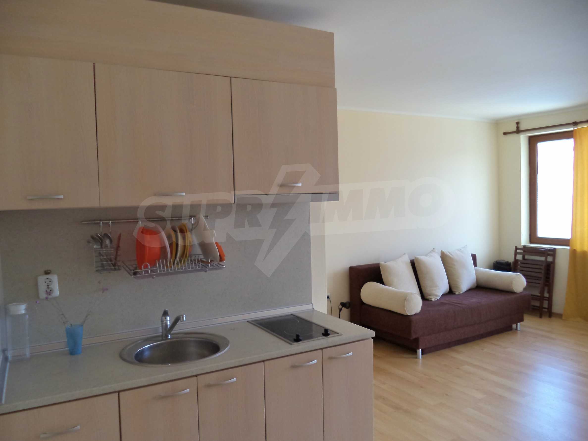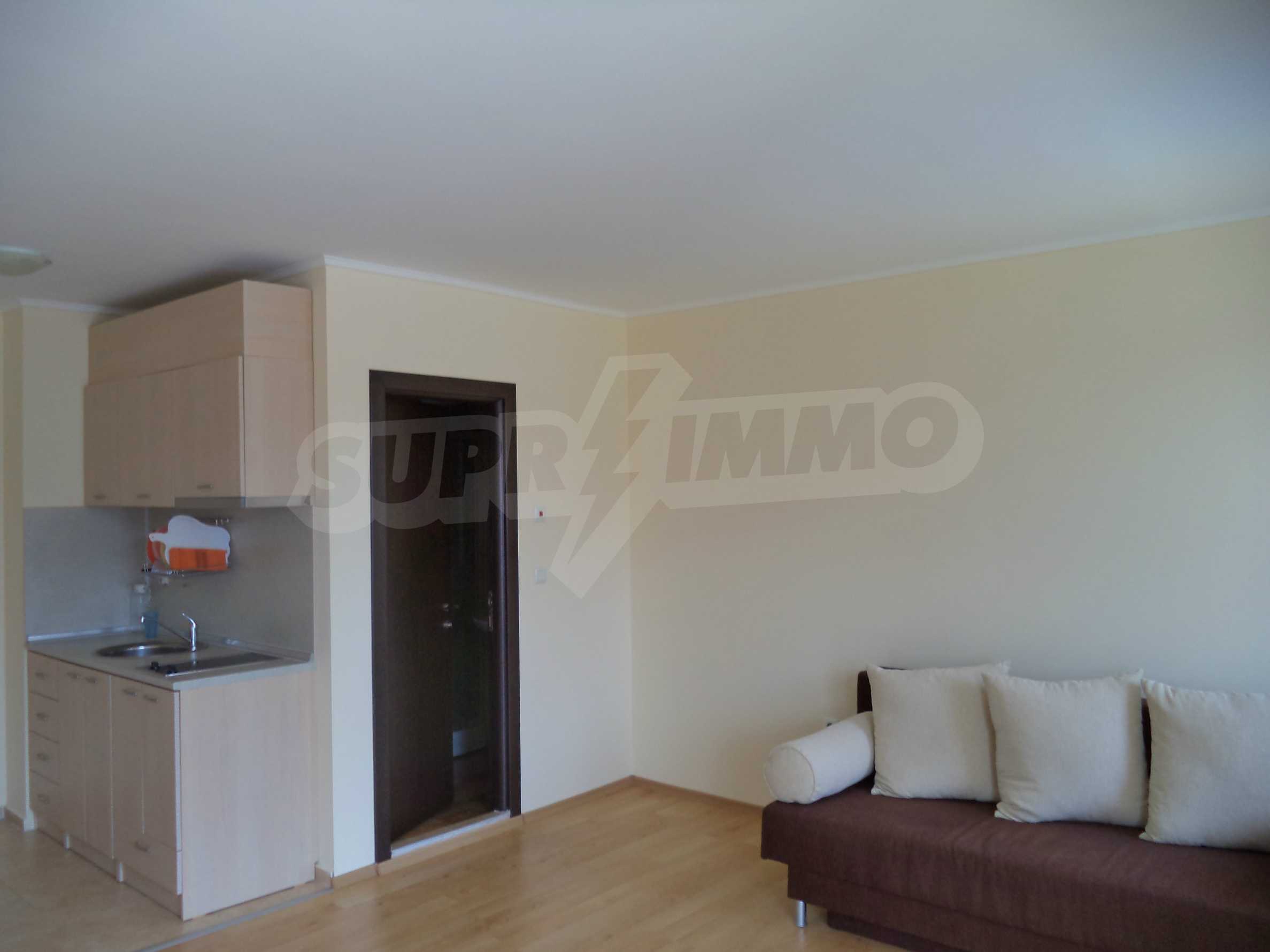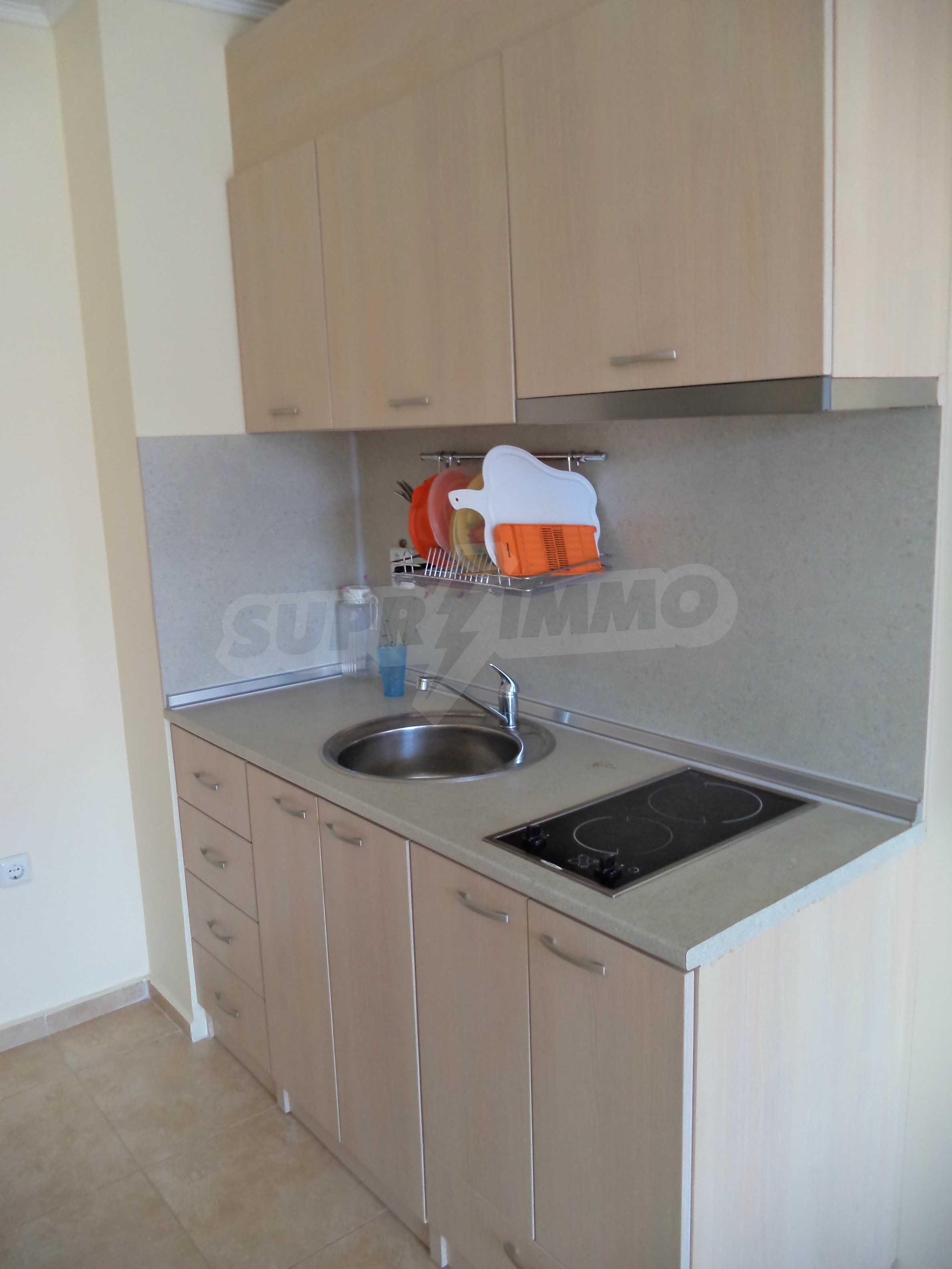 We offer you this studio with a total area of 48 m2. The property is supplied with air-conditioners. A standard air-conditioner - also available. Upvc window frames are available in the property. The furniture and appliances that are available include: an air-conditioner, a built-in kitchen, a cooker, an extractor hood and a shower box. The property is connected to electricity, communal water supply and communal sewage system. Some of the other available facilities that you will certainly consider important include: a balcony, a bathroom with toilet, an open-air parking lot and internet. From the inside you will be able to enjoy wonderful swimming pool views.