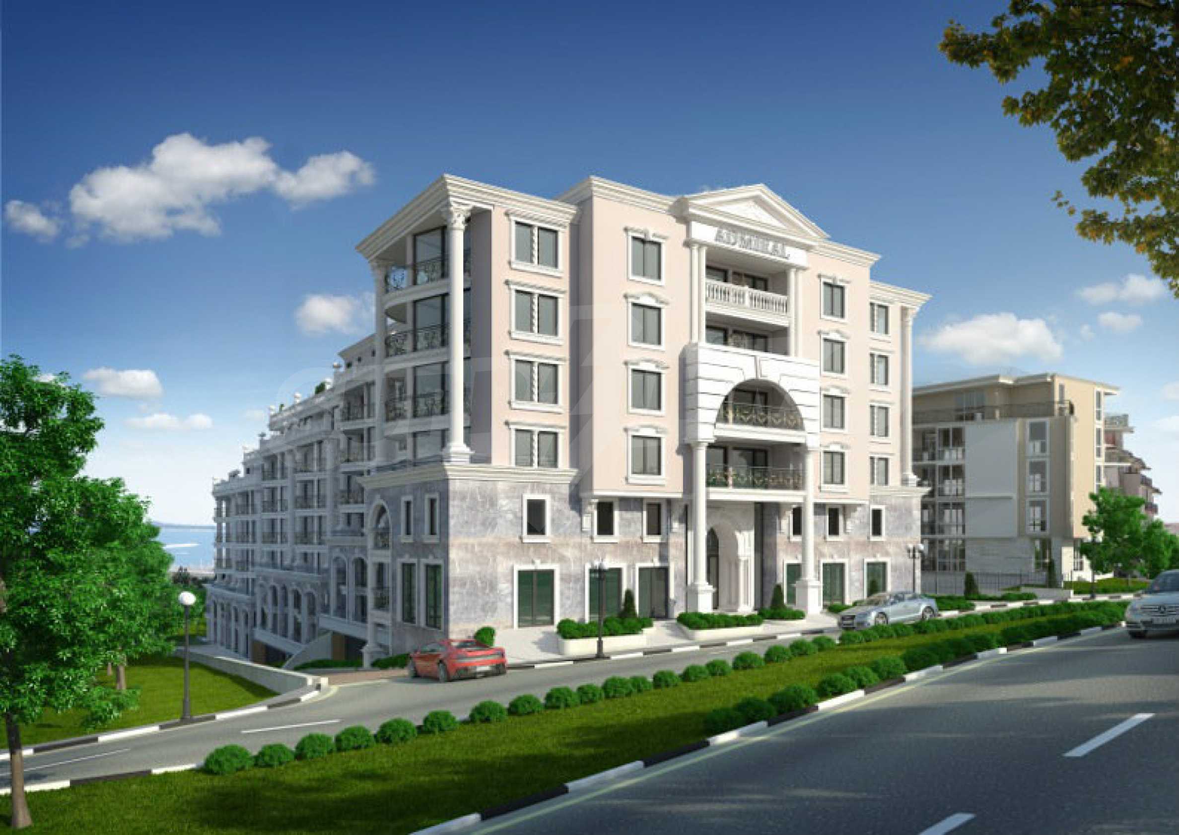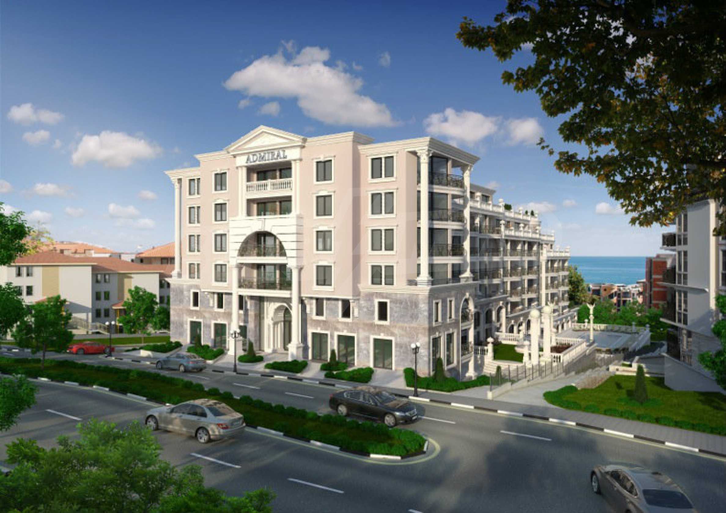 Admiral complex is located in the luxury resort Sveti Vlas. It is placed 200 meters from the beach, the sea and "Marina Dinevi" yacht port, which has a capacity for over 300 yachts. Furthermore, the complex is set in the lower part of the Eastern Balkan Mountains, the "Monastery Sveti Vlas", as well as the Church "Saint Basil".