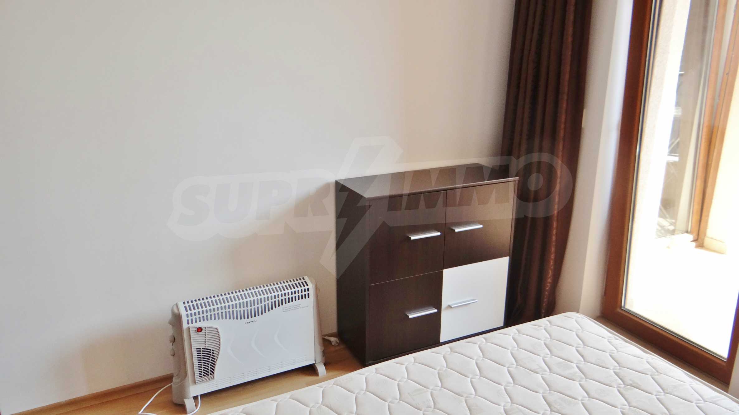 The apartment is situated on the seventh floor of a twelve storey building. The property’s built up area is 74 sq. m, distributed as follows: an entrance, a living room with an open plan kitchen, a bedroom, a bathroom/WC and a balcony. The apartment is fully furnished, there are all the necessary home appliances, air-conditioner and electrical radiators.