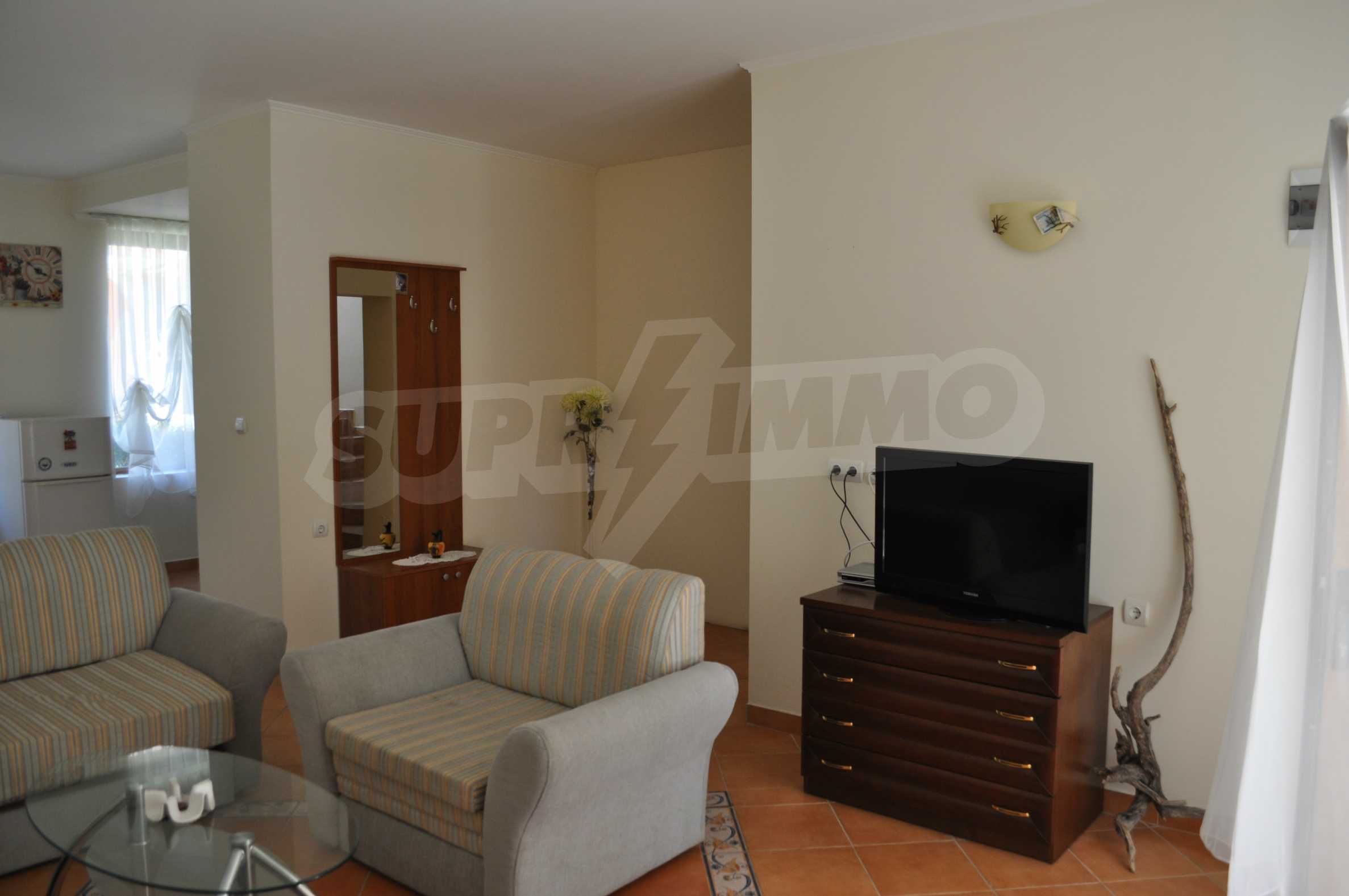 Modern 2-storey house (216 sq.m.) with everything necessary for your comfortable lifestyle in Villas Romana, part of the well-developed gated complex Royal Club Victoria, located in the picturesque holiday village Elenite, just 5 km from the popular resort of Sunny Beach and 35 km from the airport in Bourgas. The beach is only 400 m away and there is a bus stop at a distance of 200 m for easy access to Sunny Beach and Nessebar.