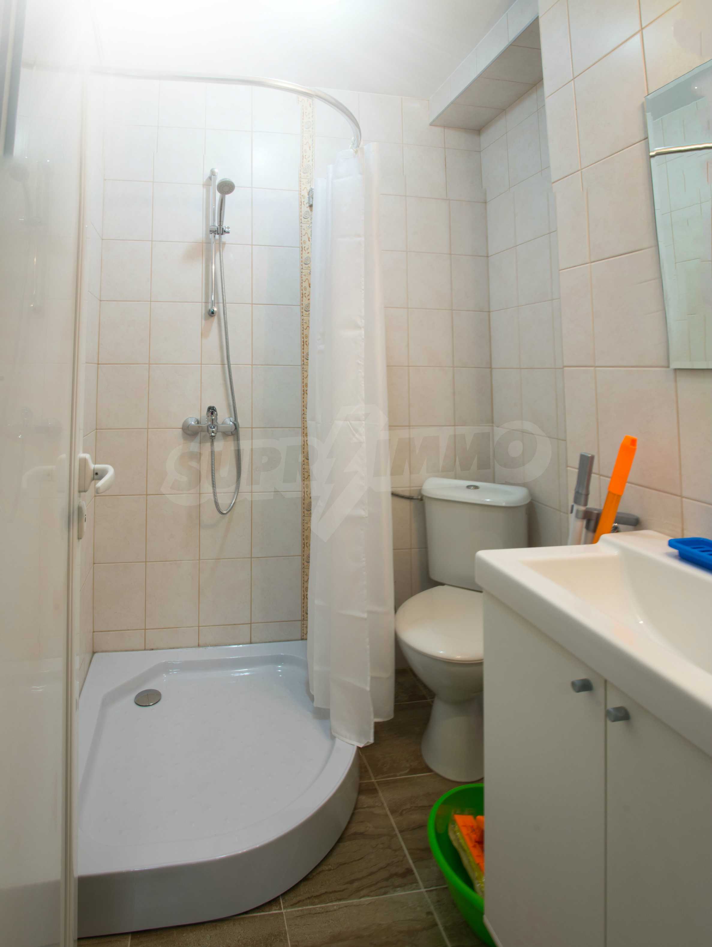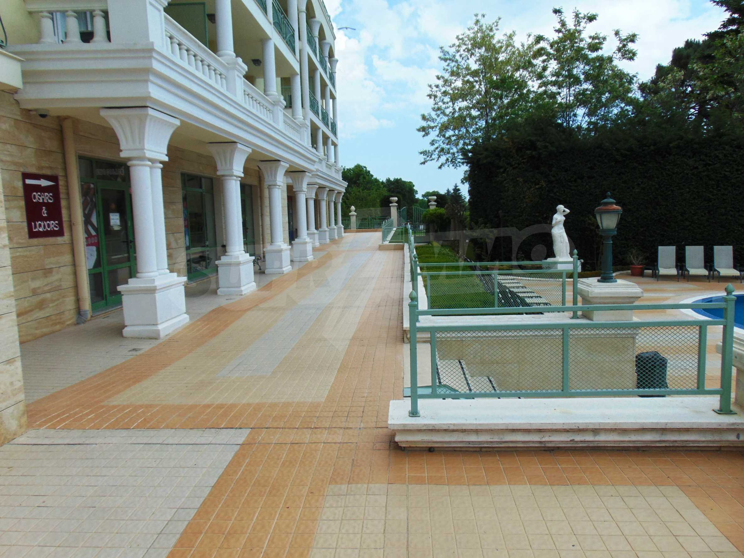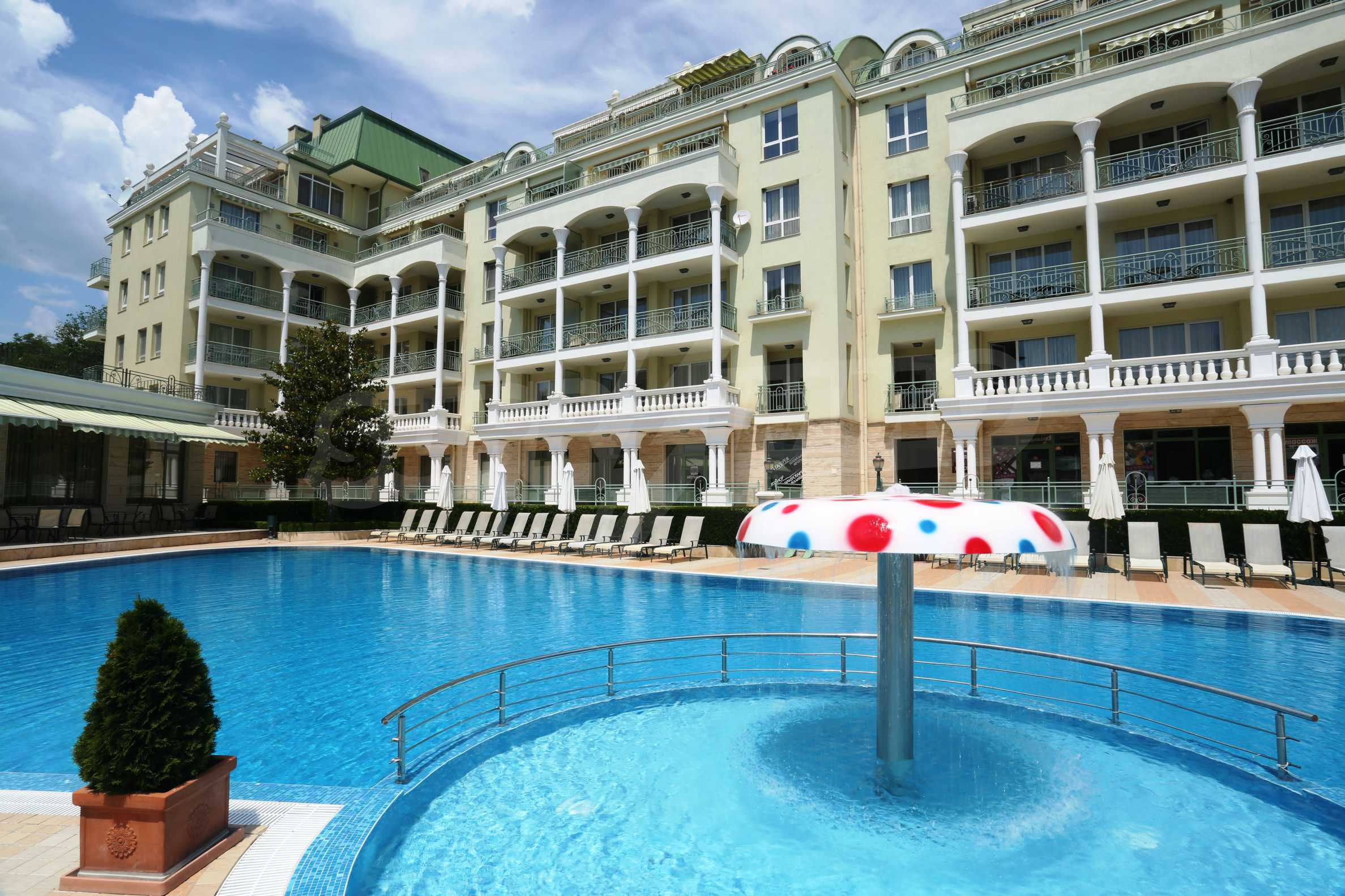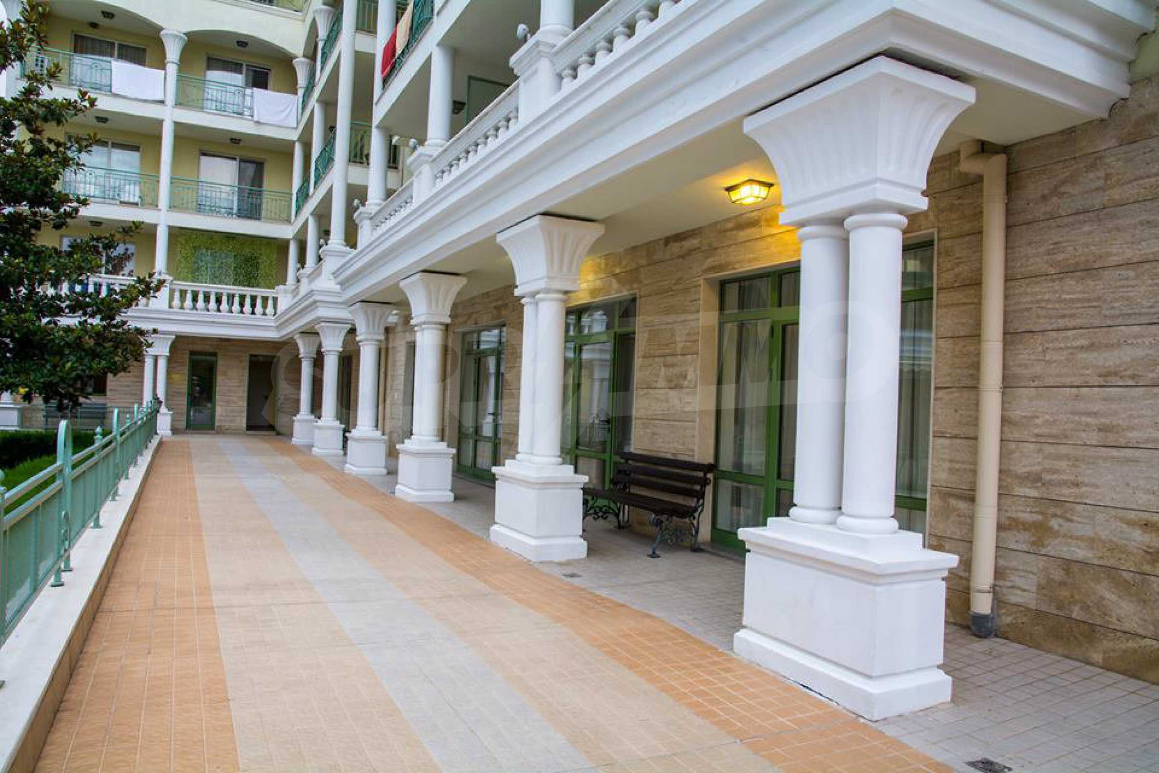 An attractive offer for a ready to move studios in SPA Hotel Romance Splendid, 300 m from the beach. The apartments overlook the swimming pool. St. St. Constantine and Helena is the oldest Bulgarian Black Sea resort. It is located 8 km north of the city center of Varna. Here you will find many places for entertainment - clubs, restaurants, bars, souvenir and clothing shops, race track, water sports, jet skis, surfing and more. The resort has police station, post office, pharmacy, gas station and health center, as well as regular bus lines for connection with the train station and the city center of Varna.