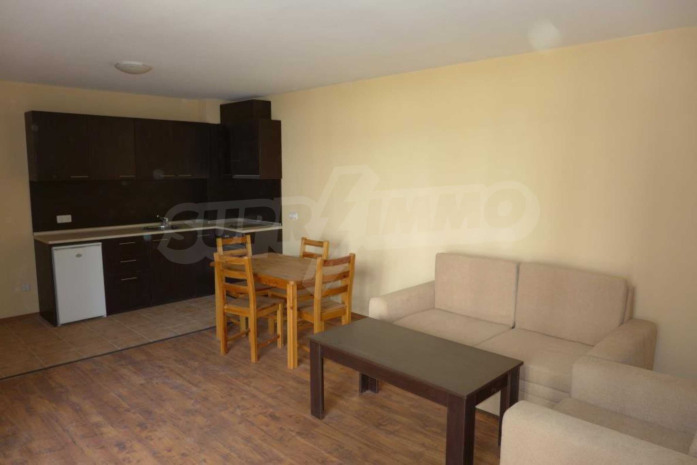 We offer to your attention a fully furnished one-bedroom apartment located in a modern 4-star complex in a quiet part of Bansko. An impressive spa centre, free parking, a lobby bar and a restaurant are available on site.