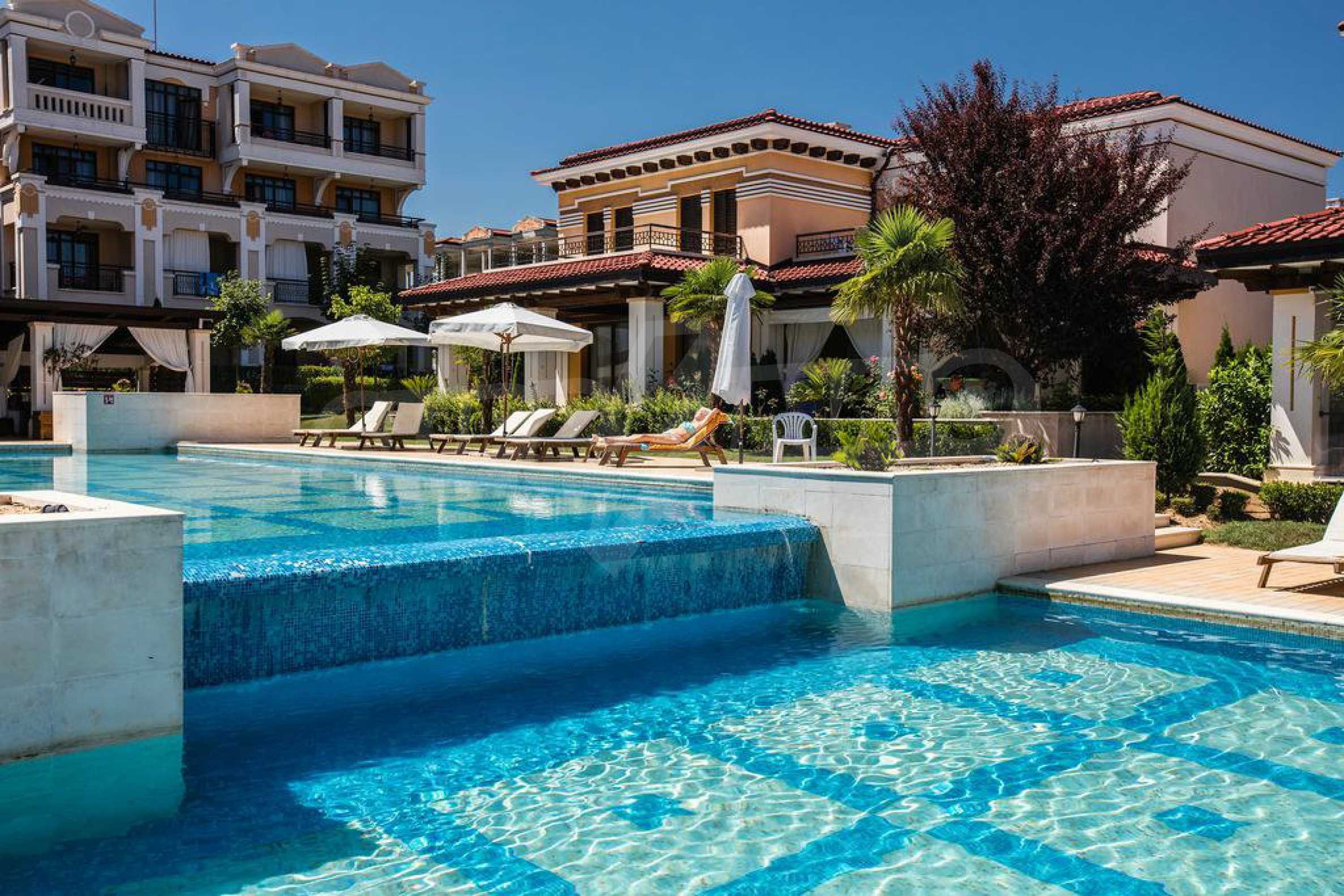 The mini resort combines several groups of apartment buildings, related through alleys, rich landscaping, pools and other areas of entertainment and recreation. The apartments are completely ready for furniture and equipment.