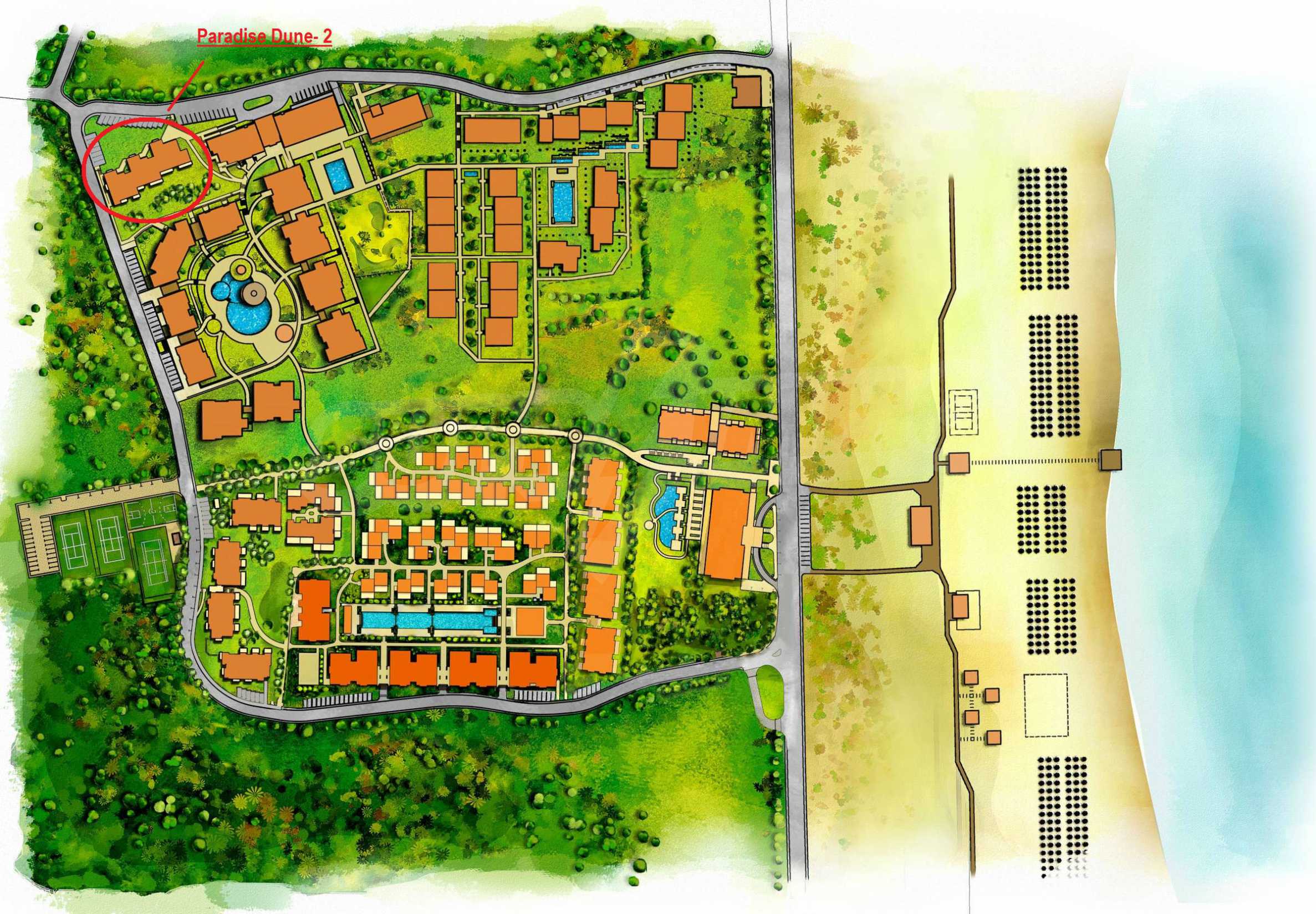 Green Life Beach Resort Sozopol- Paradise Dune 2 is part of the mini-resort Green Life Beach Resort, winner of the prestigious "Best holiday complex in 2011." It is located on the beach "Kavatsite" which has a private area. The quiet streets, ancient buildings and churches of Sozopol are nearby and on every 30 minutes there is an attraction train from Green Life Beach Resort to Sozopol.