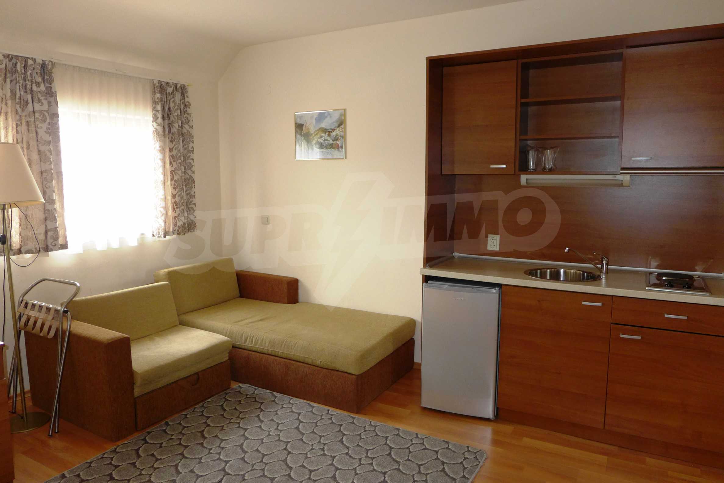 Excellent offer for a holiday apartment with top location in Bansko - only 400m away from the ski lift and 200m away from the shopping centre Mall Bansko. The apartment is fully furnished and is located in a year-round complex with modern facilities, allowing for a pleasant and comfortable holiday.