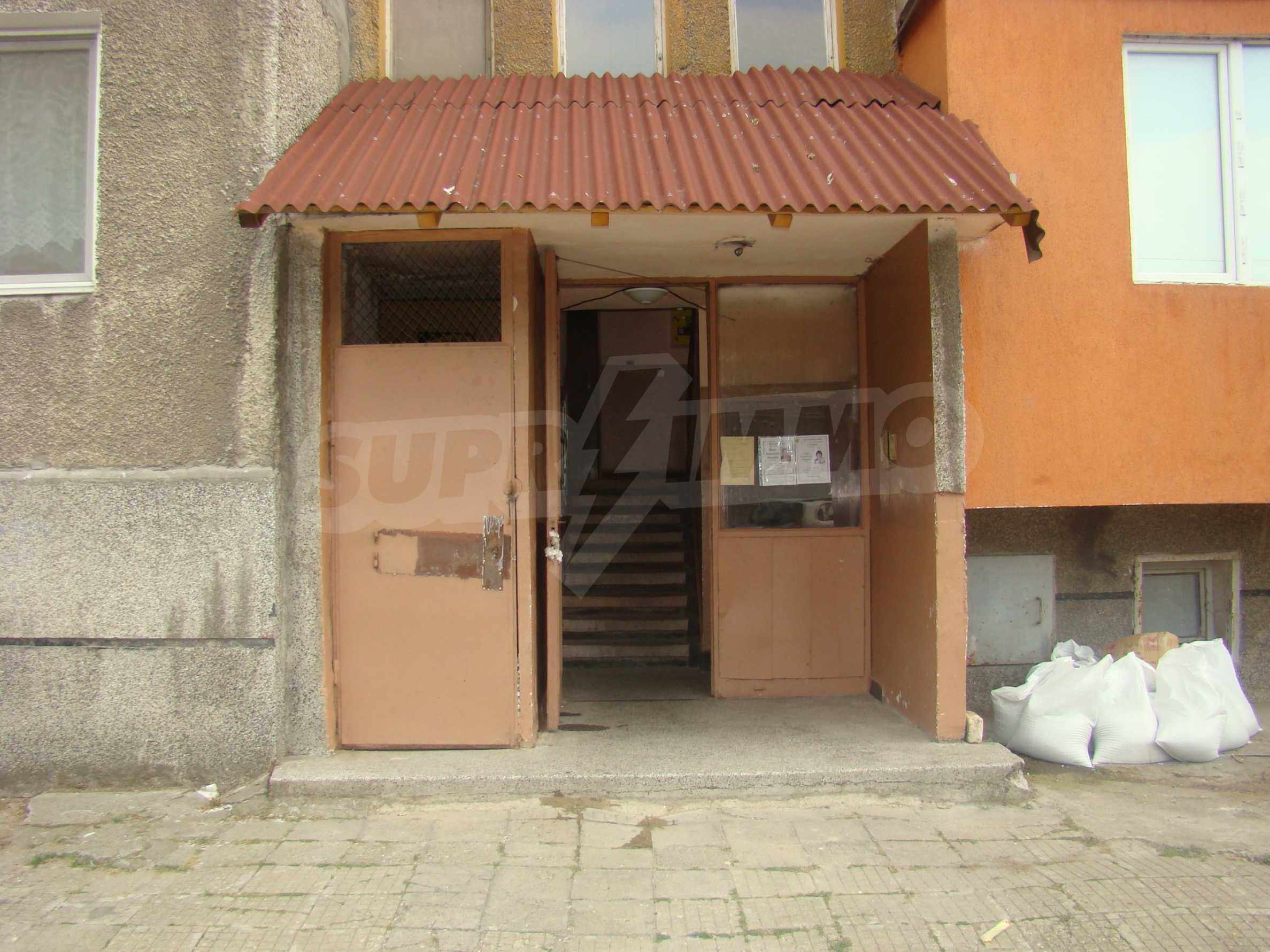 The apartment is situated on the 2nd floor of the 8-storey panel building close to the Vidin Downtown. This warm and South facing flat comprises a kitchen, one room, bathroom/WC, and a big terrace with access from both the kitchen and the room. There are the internet, telephone, and cable TV in the property. There is a laminate flooring in the room and a linoleum flooring in the kitchen. The walls are covered with wallpapers. The bathroom and the kitchen need renovation.
