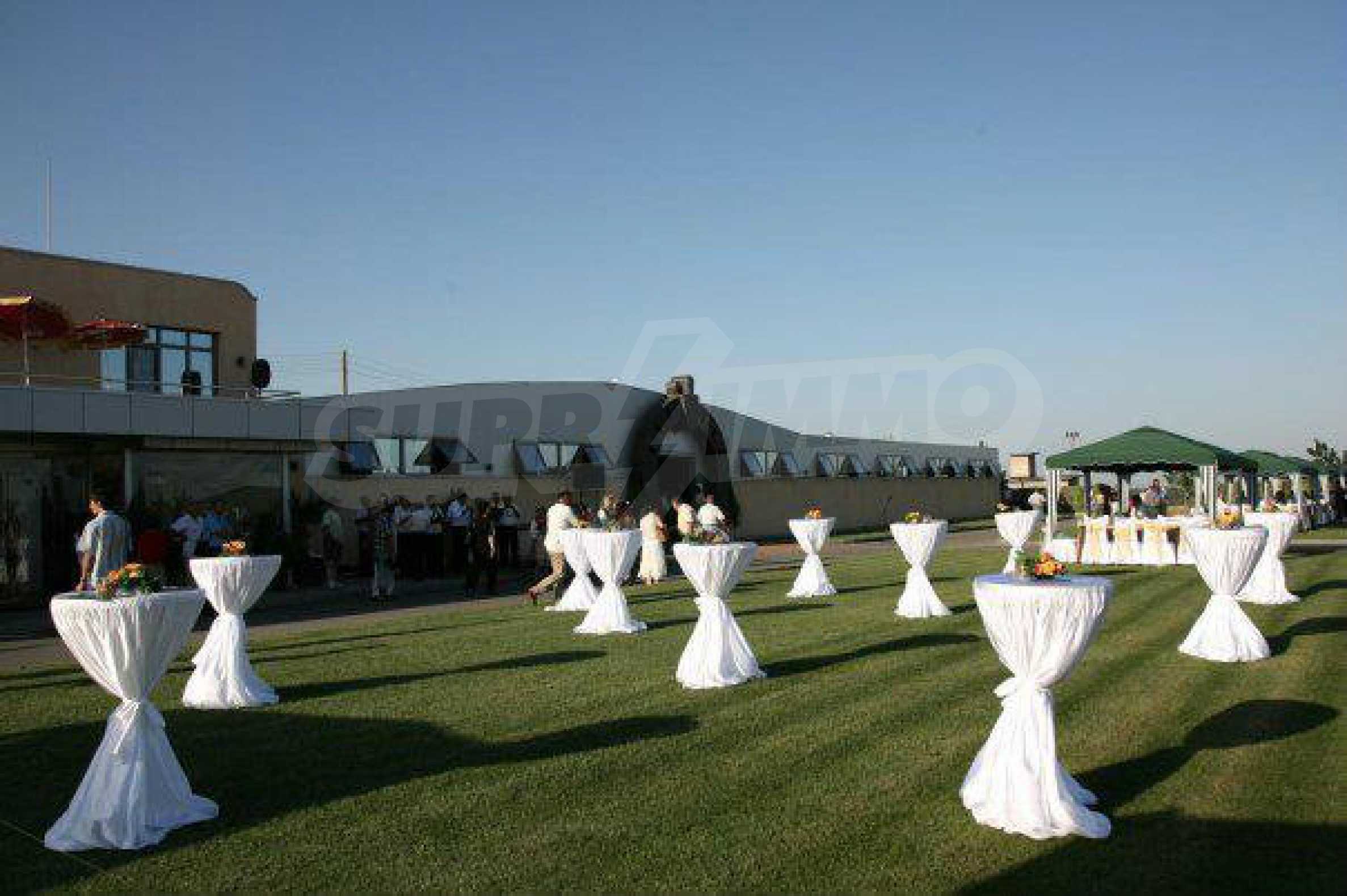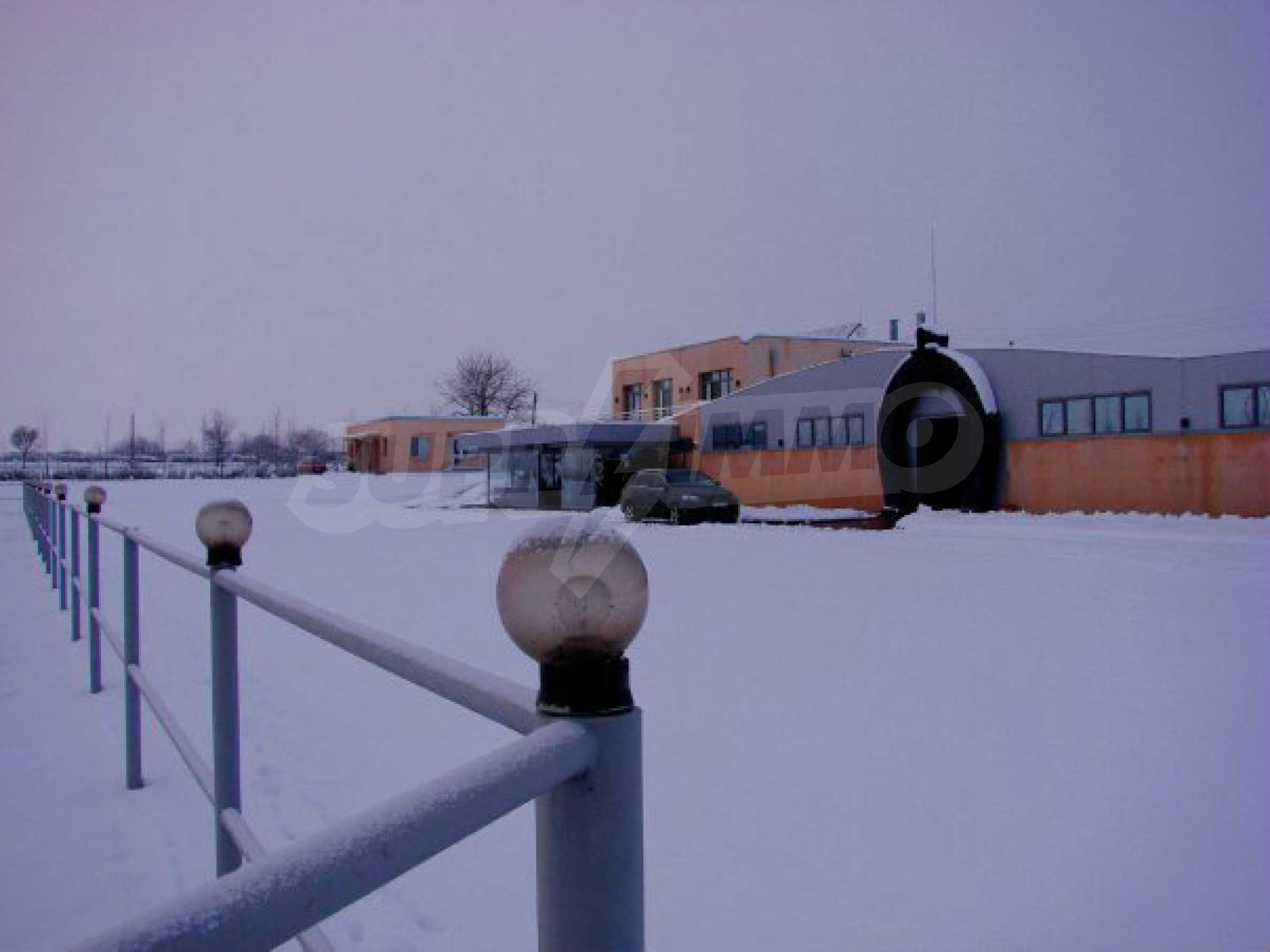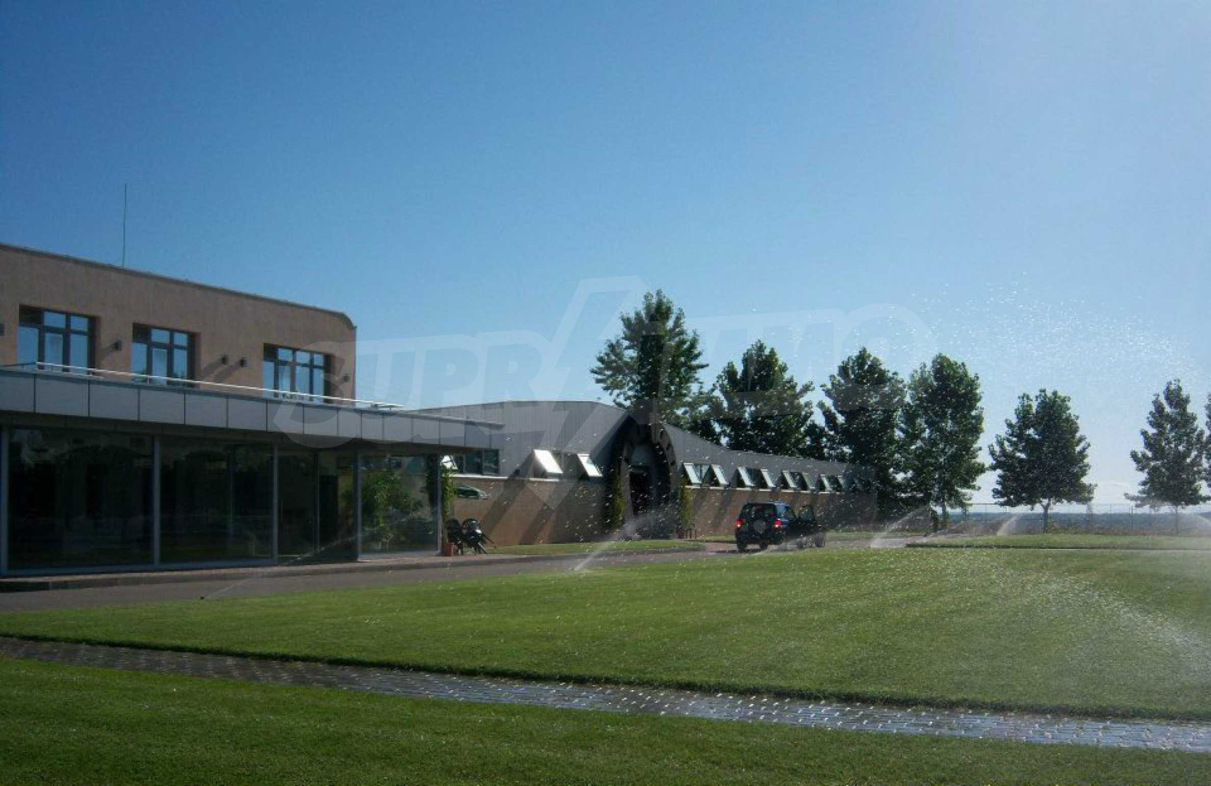 The building also has a restaurant with fully equipped professional kitchen and a space for 40 seats (unfurnished), as well as an office area with three offices and a meeting room. There are two apartments for the staff, each consisting of a living room, a separate kitchen, a bedroom, a bathroom with a toilet and a veranda. The property has electricity and water.