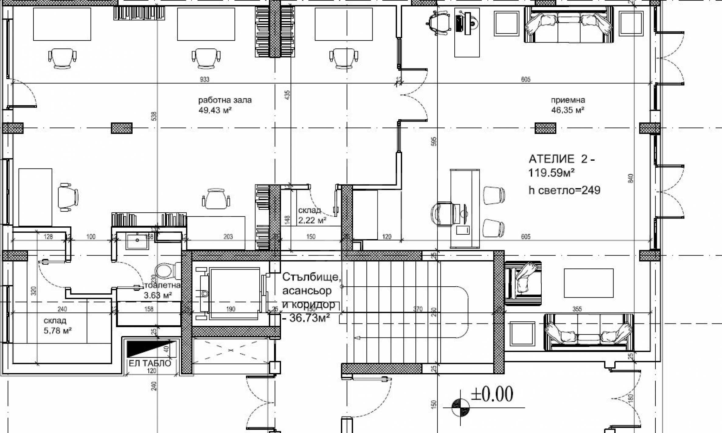The property has an area of 136.75 sq.m. with very convenient and functional layout of bright and spacious premises: spacious reception room, workroom, 2 warehouses and a bathroom.