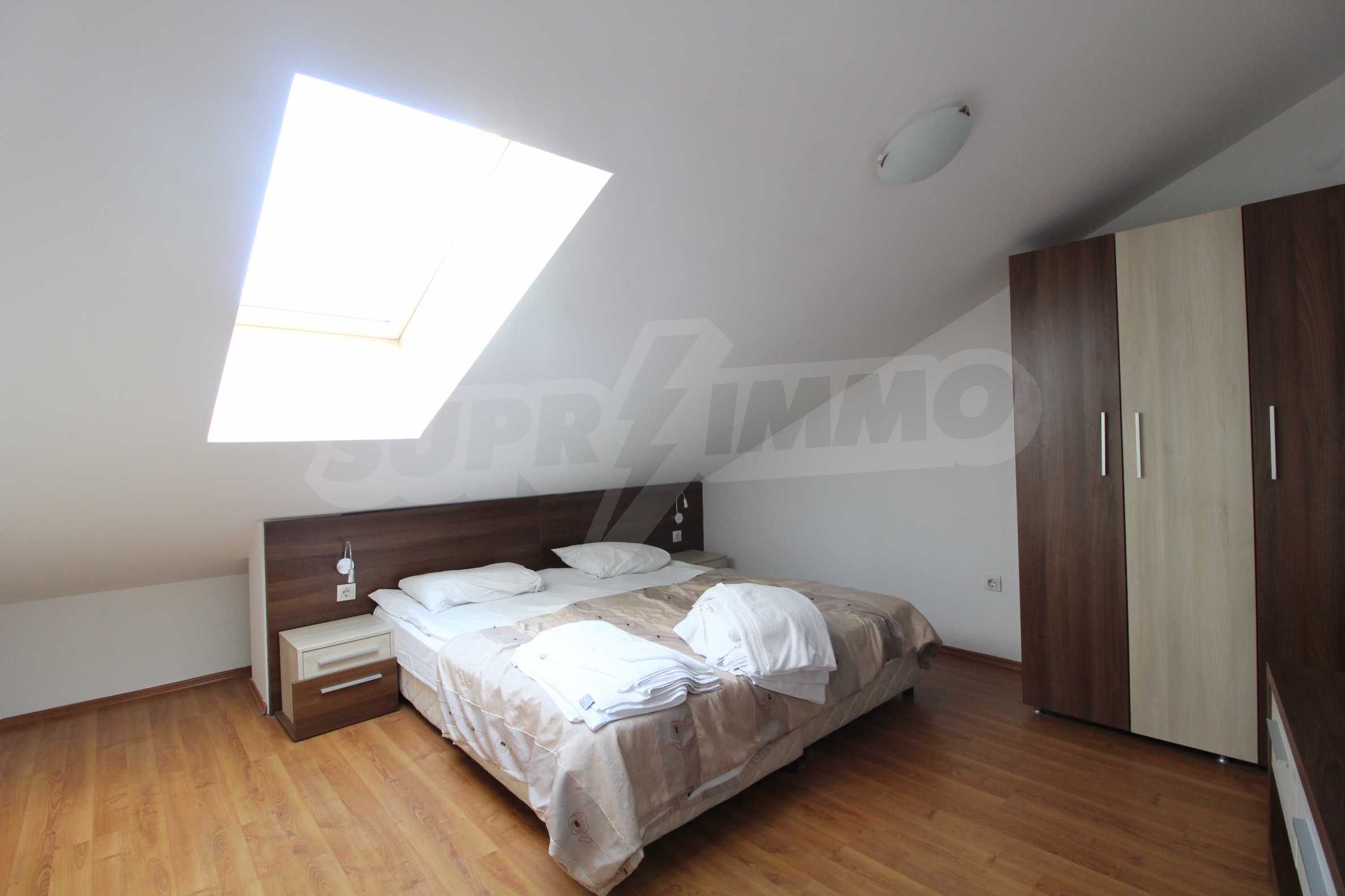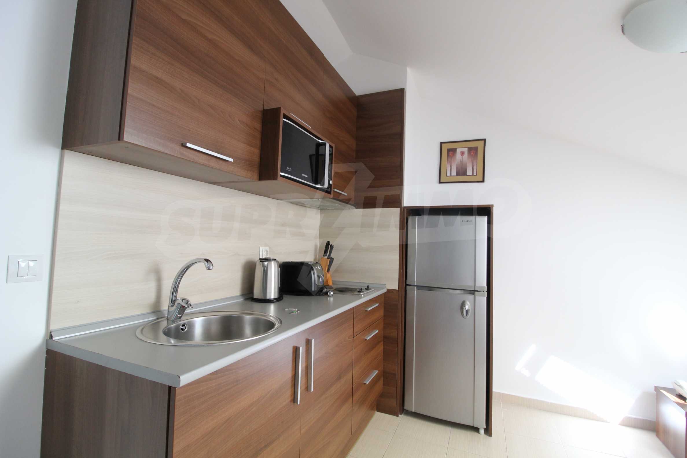 We offer you furnished one-bedroom apartment with an area of 41.25 sq.m. The property is located on the fifth floor in a luxurious Belvedere Holiday Club complex. The apartment consists of: corridor, kitchen with living room, one-bedroom, bathroom with toilet, additional attic space with height of 1.50 m and an area of 6.79 sq.m. The bedroom is furnished with double bed, bedside tables, triple wardrobe. The kitchen offers: kitchen cabinets, fridge, microwave, toaster, cooking hobs.