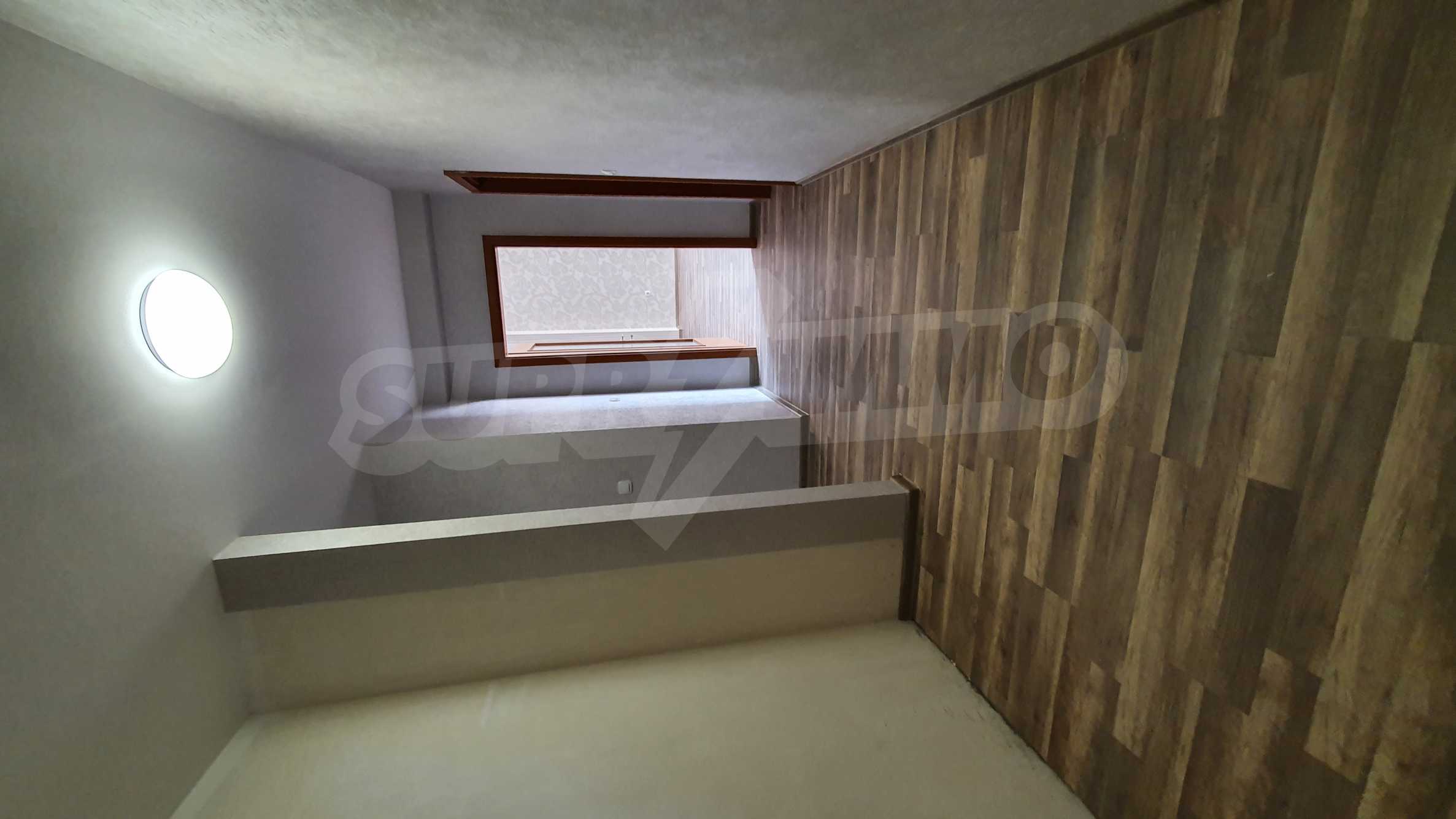 The floorings are with laminate, walls - latex and decorative stone. The property is for sale, wired for telephone, cable TV, internet. The exposure is west / north.