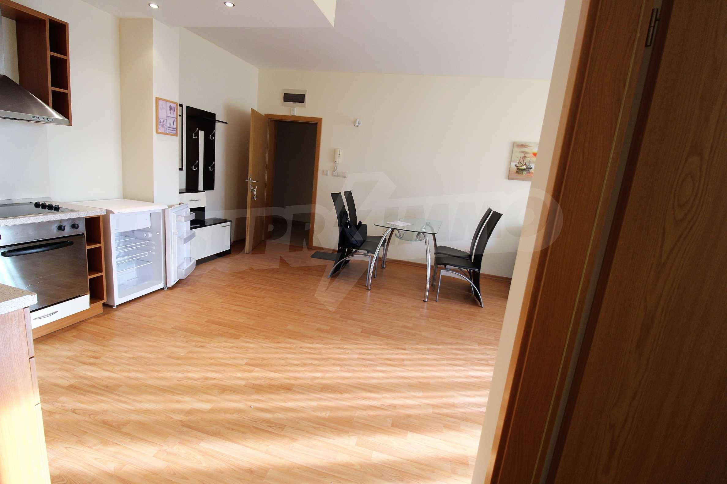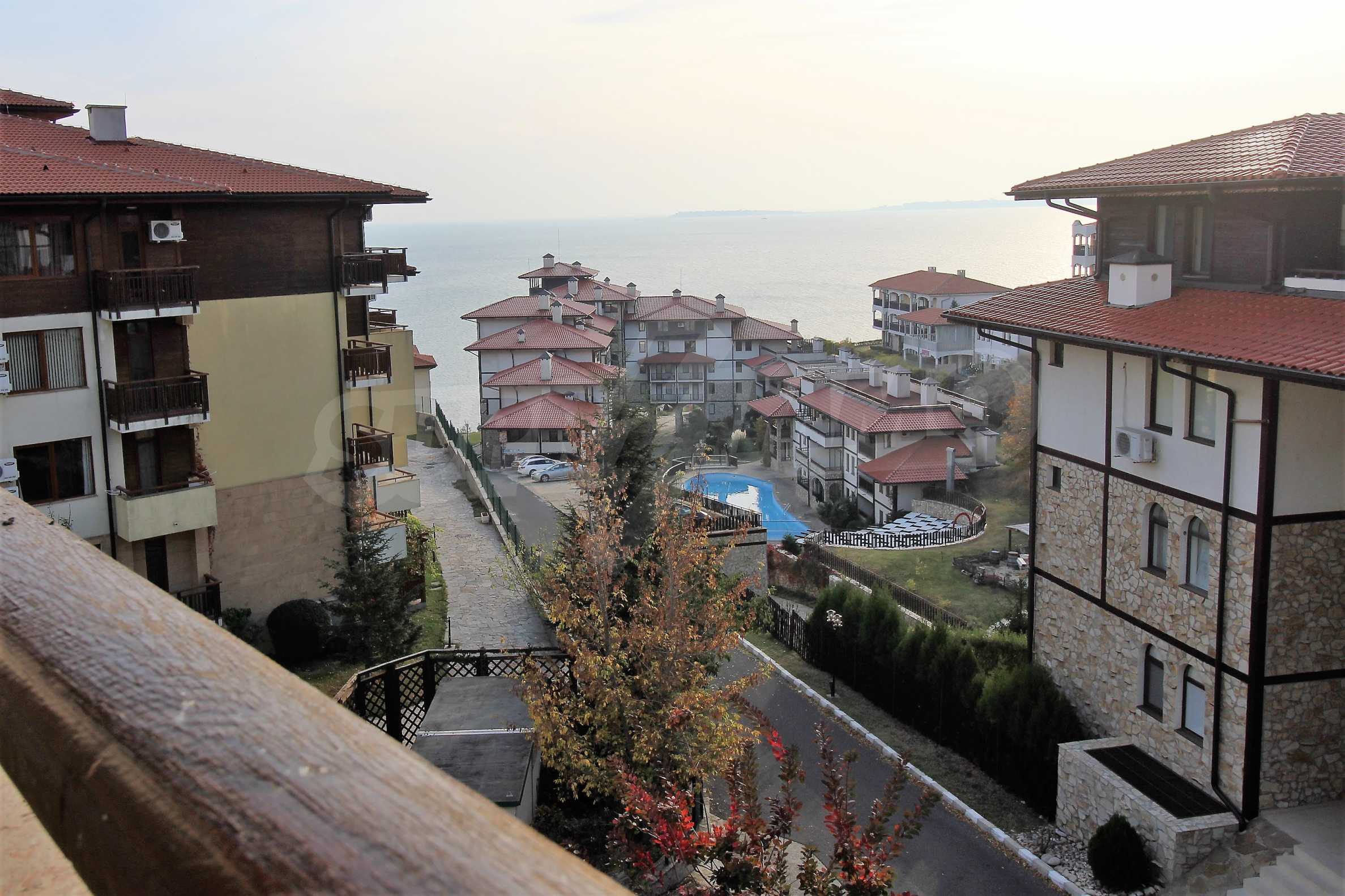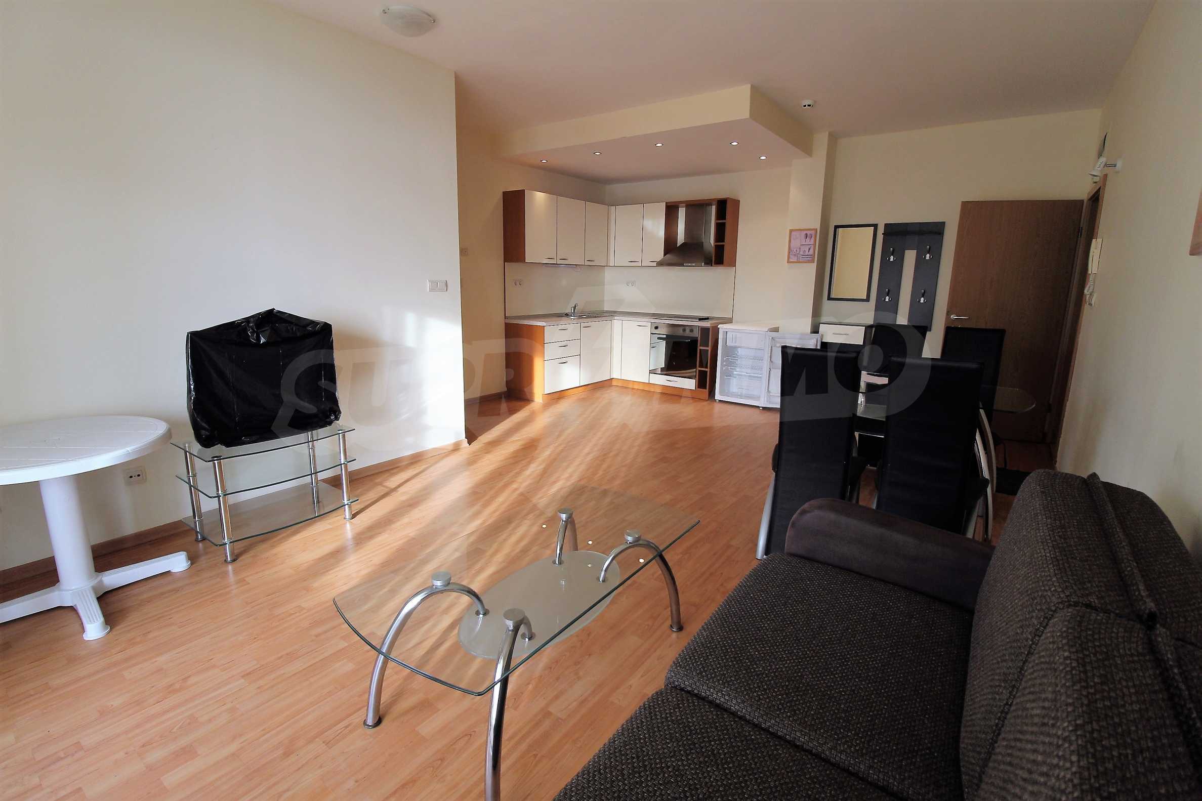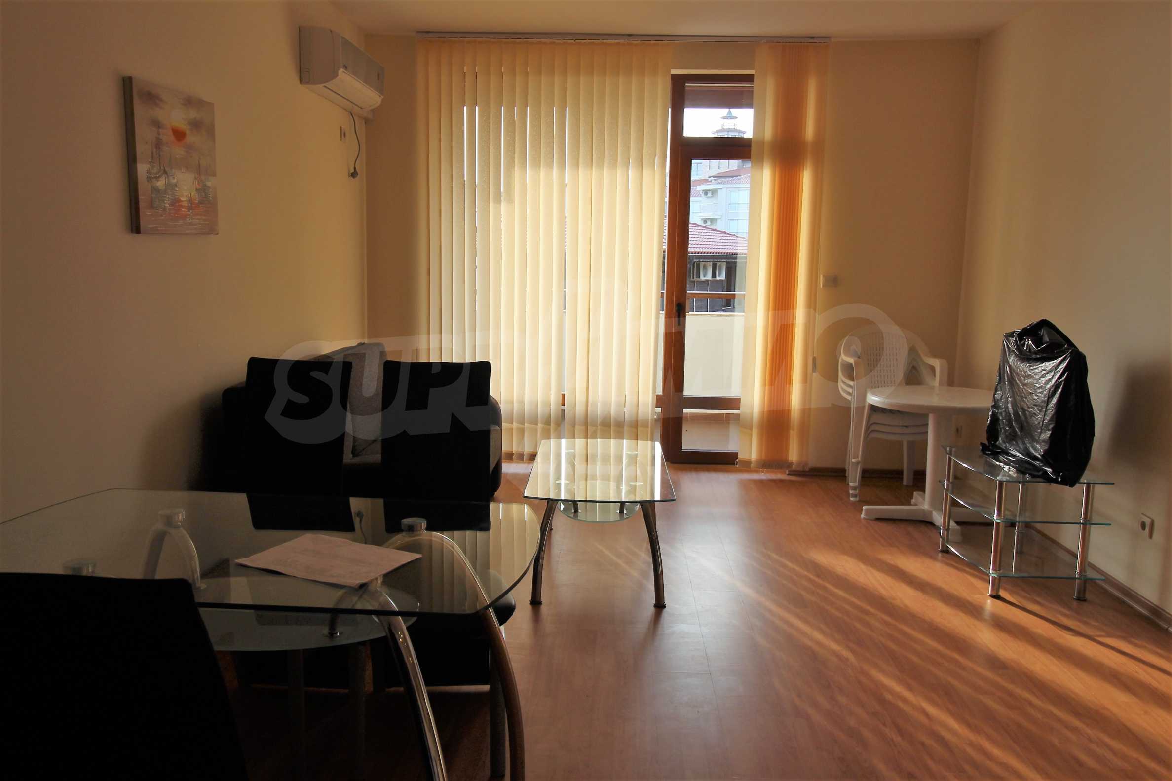 The apartment consists of a spacious living room with equipped kitchen, cozy bedroom, bathroom/WC and a balcony with a panorama of the sea and the hills of the Balkan Mountains. Comes with furniture and quality finishing works. The property is suitable for both private use and investment.