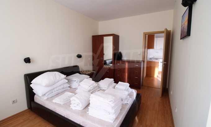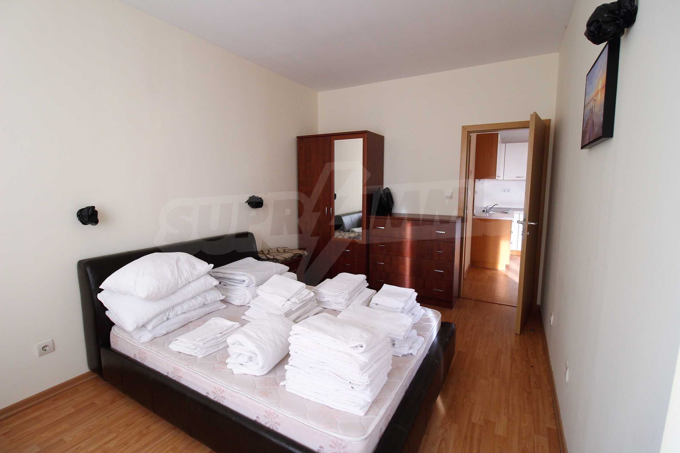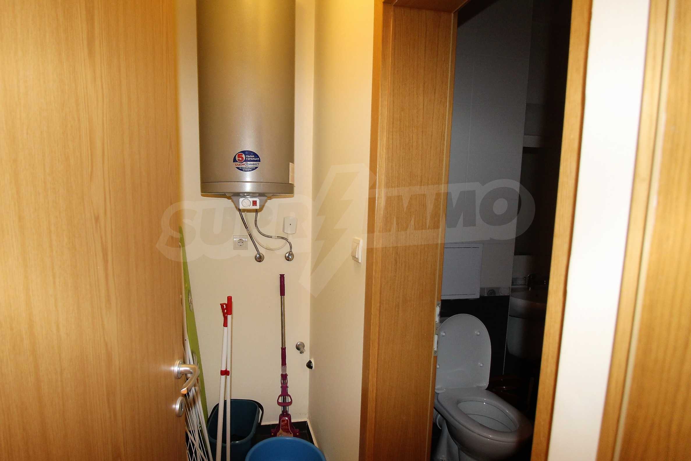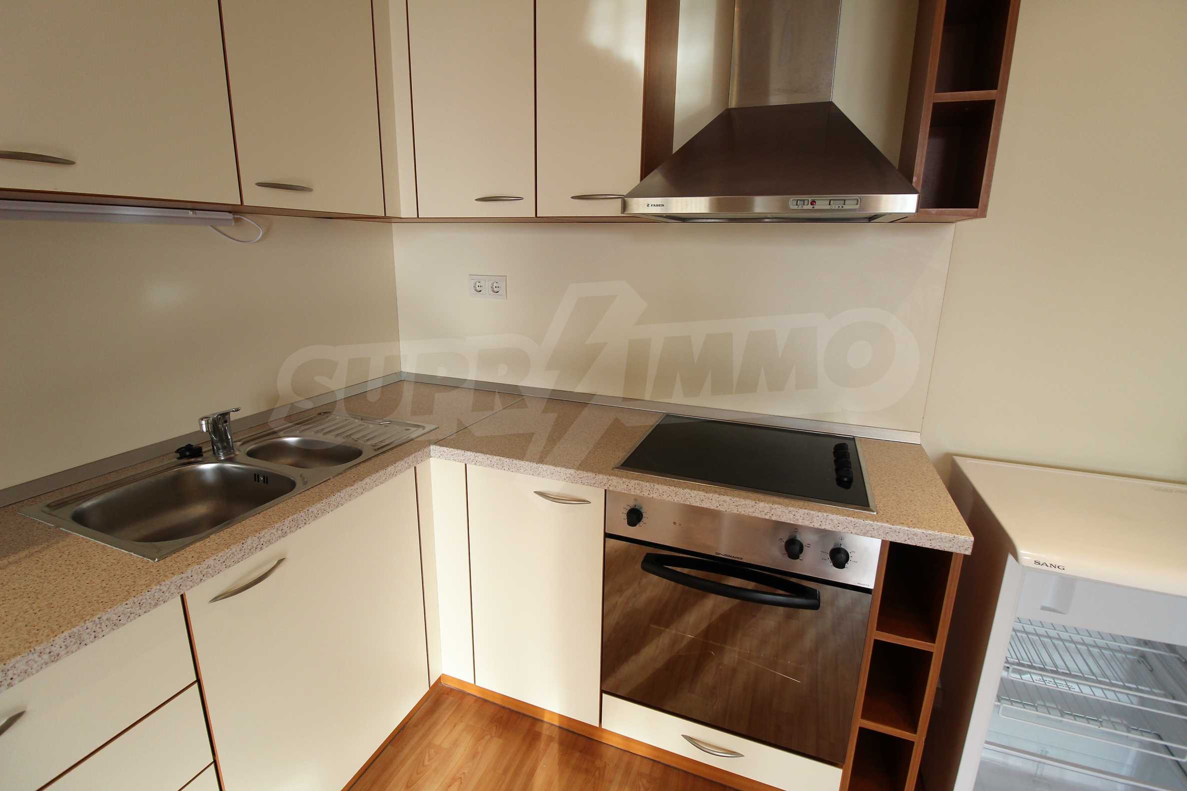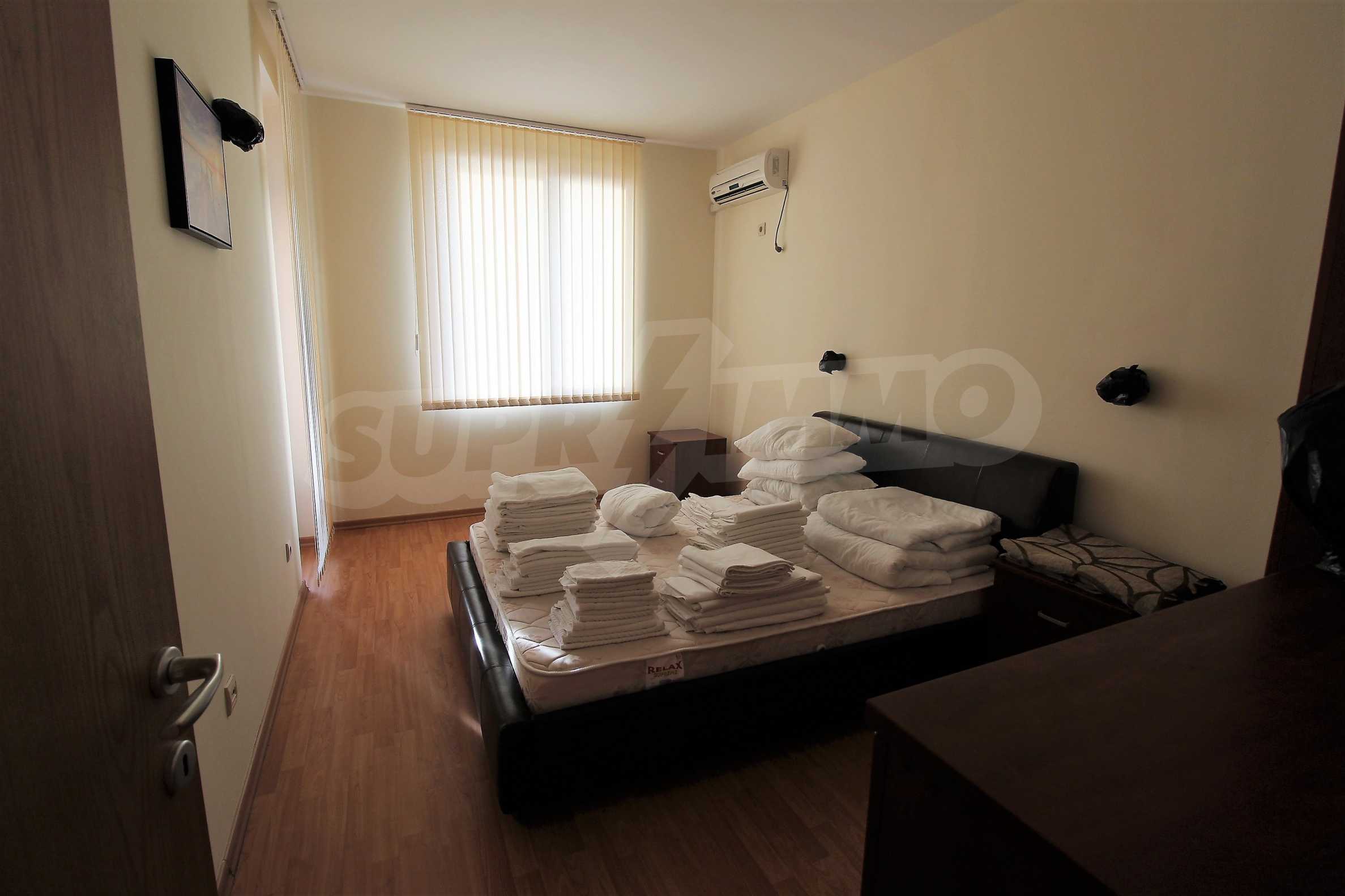 The apartment consists of a spacious living room with equipped kitchen, cozy bedroom, bathroom/WC and a balcony with a panorama of the sea and the hills of the Balkan Mountains. Comes with furniture and quality finishing works. The property is suitable for both private use and investment.