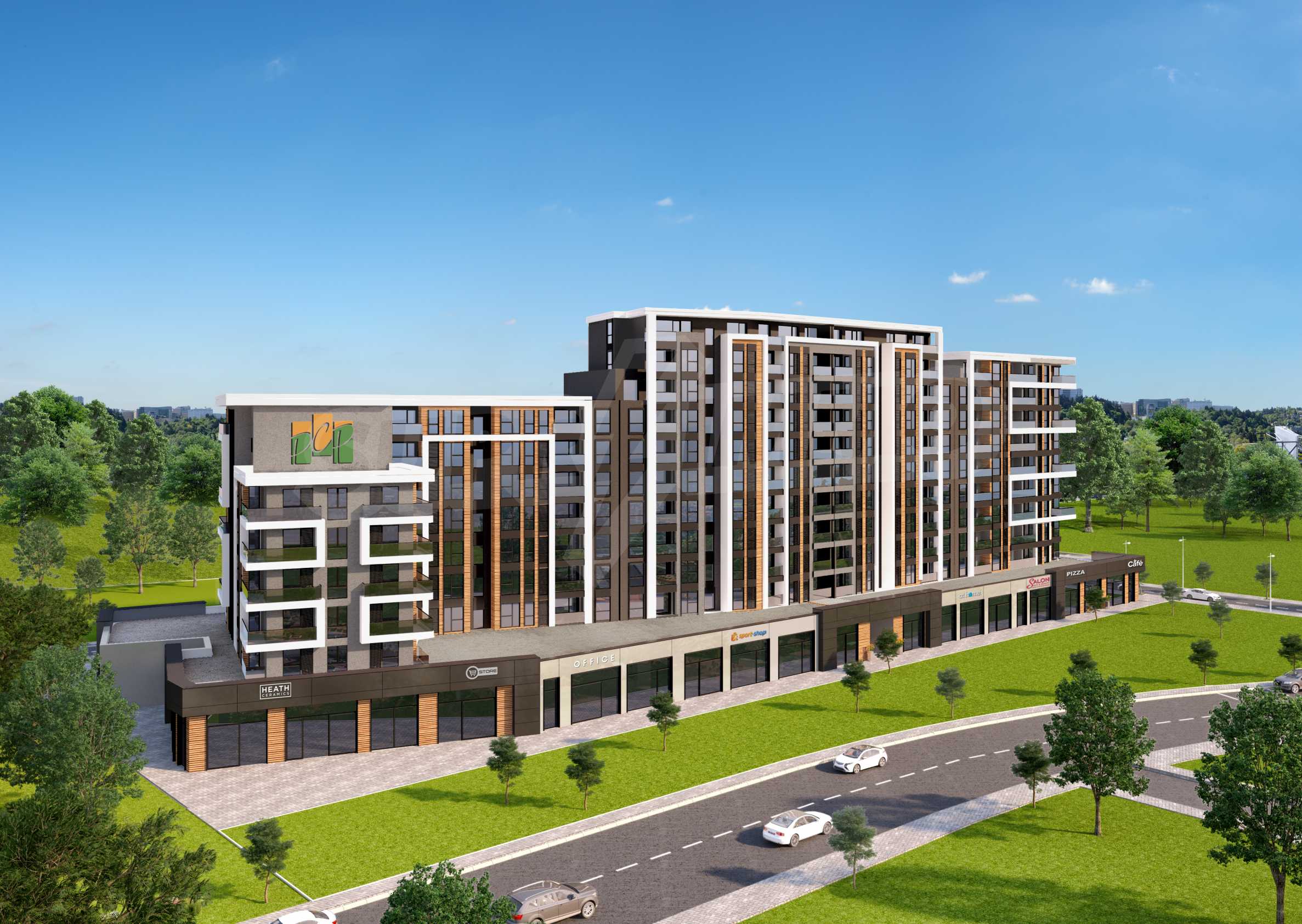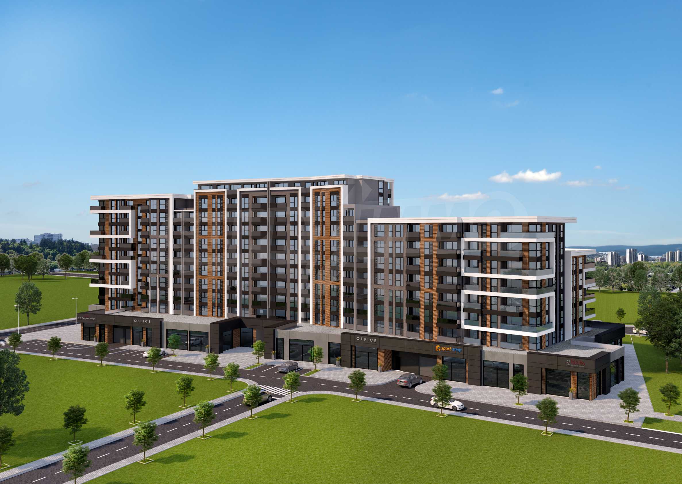 The complex is situated in the greenest, the most prestigious and preferred for living area of Plovdiv - "Recreation and Culture" Park, in close proximity to the center of the town and the park of the Rowing Base, Plovdiv Mall, the Lidl and Kaufland chains, schools, kindergartens and medical centers.