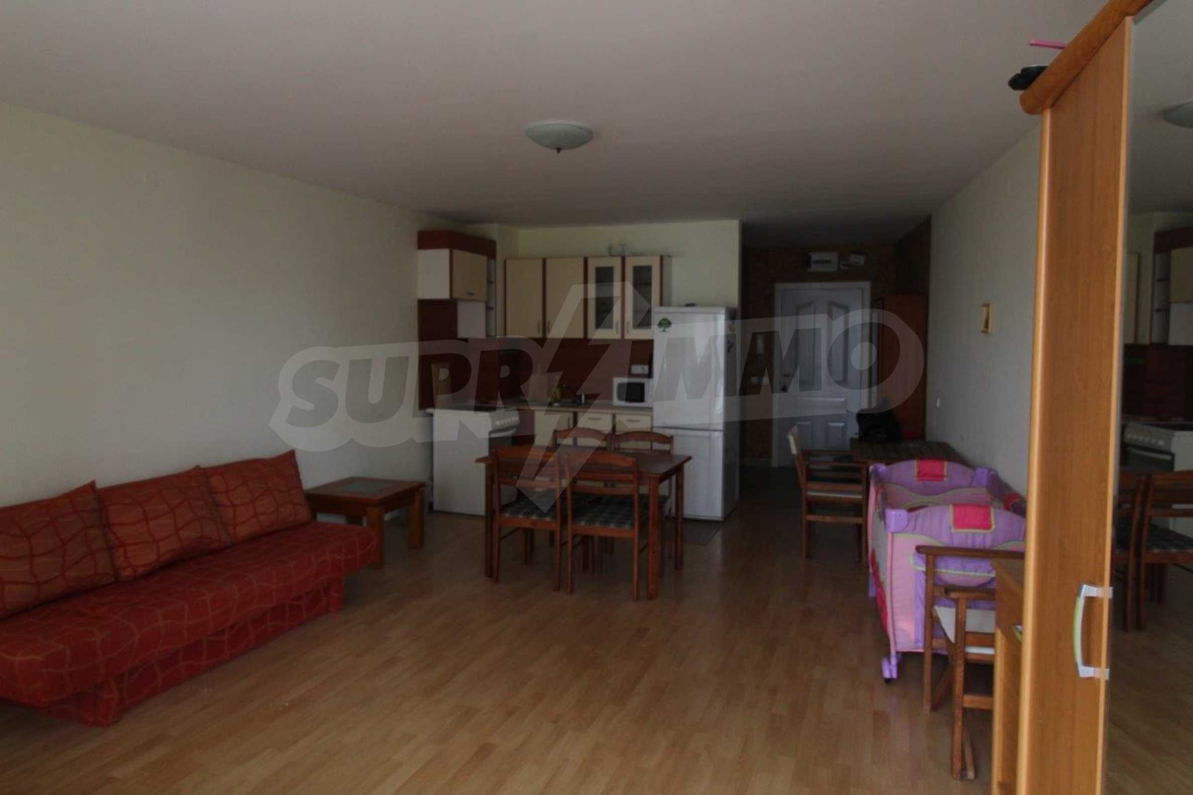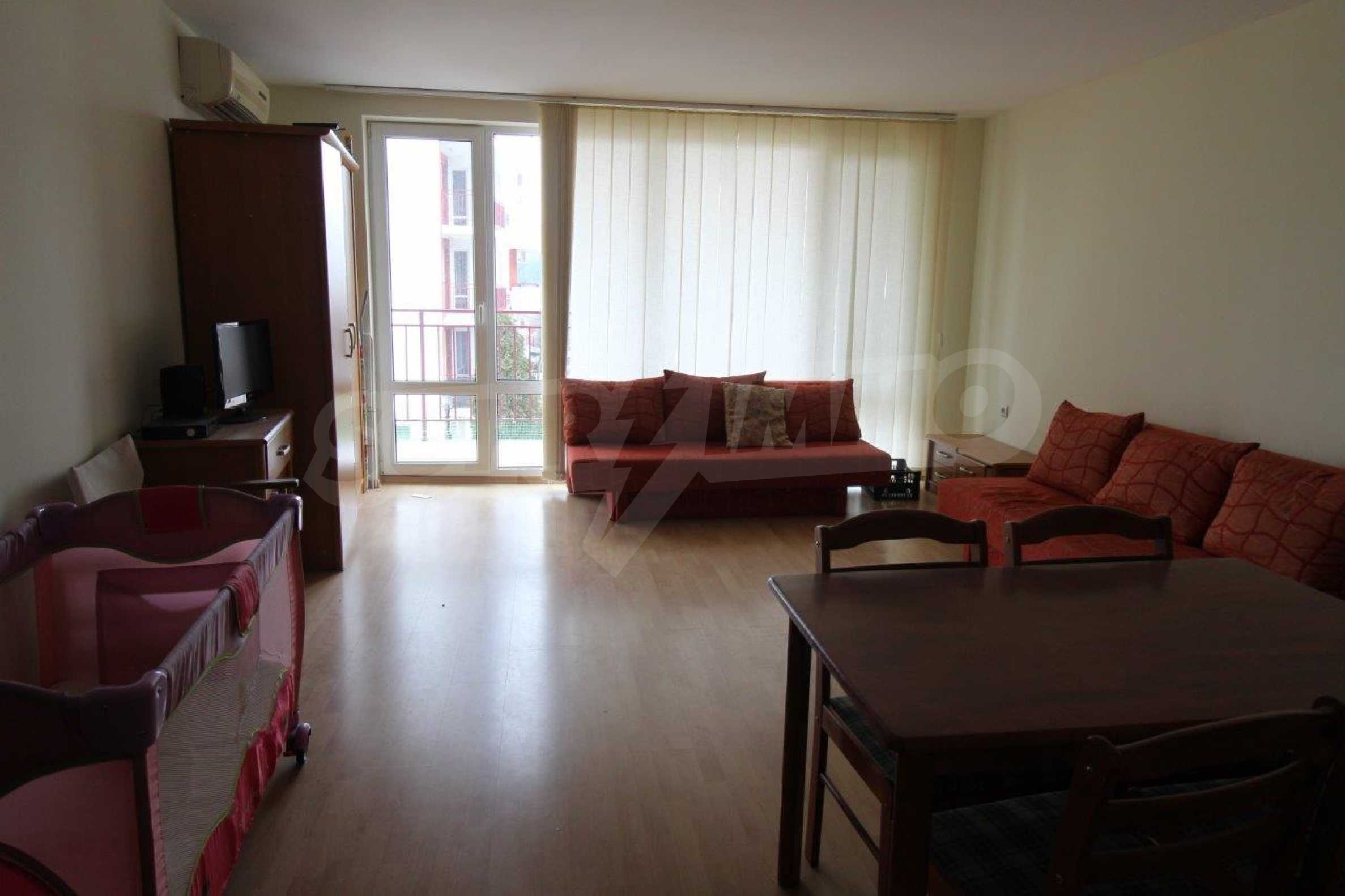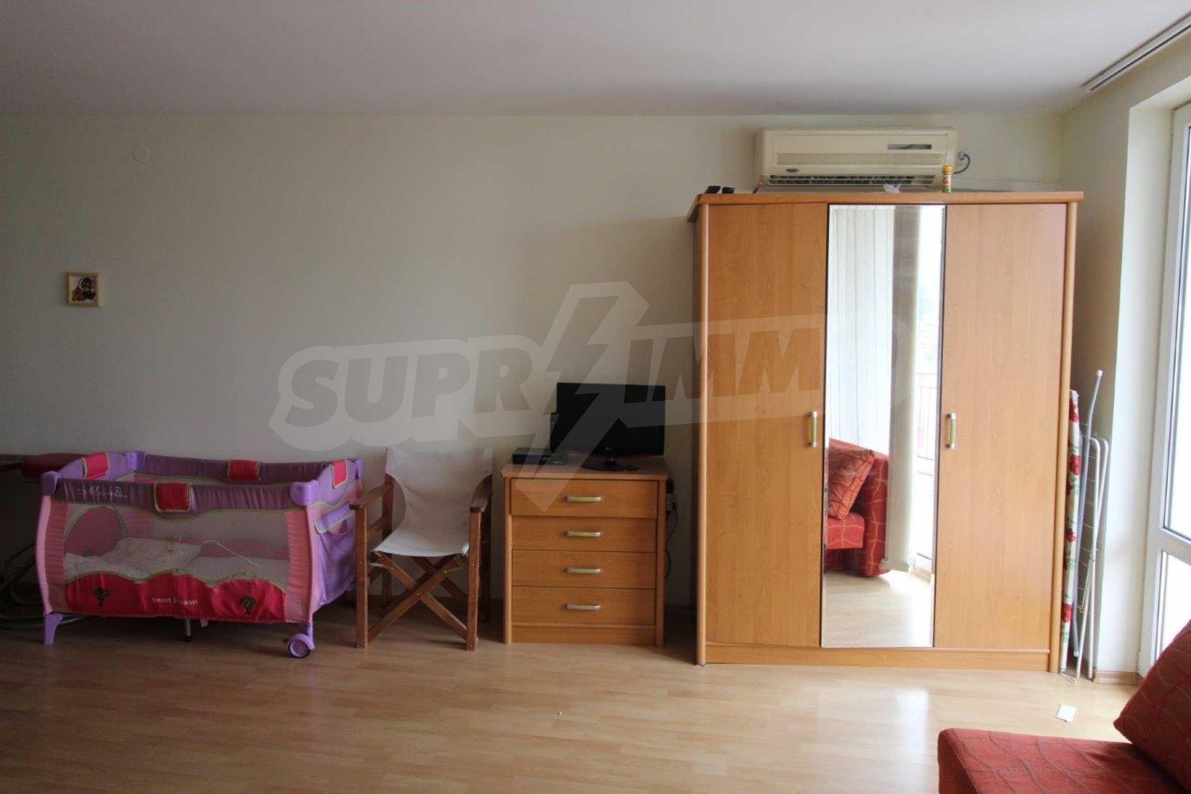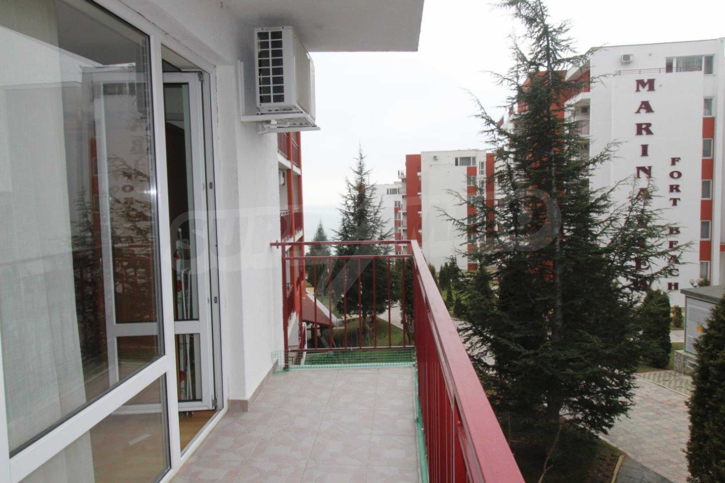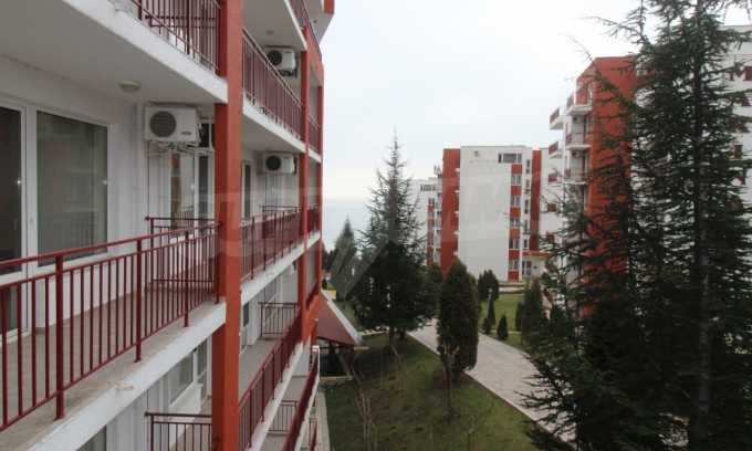 Fully furnished studio area of 50 m2 with spacious terrace for sale in the popular beachline complex in Sveti Vlas resort - "Panorama Fort Beach".