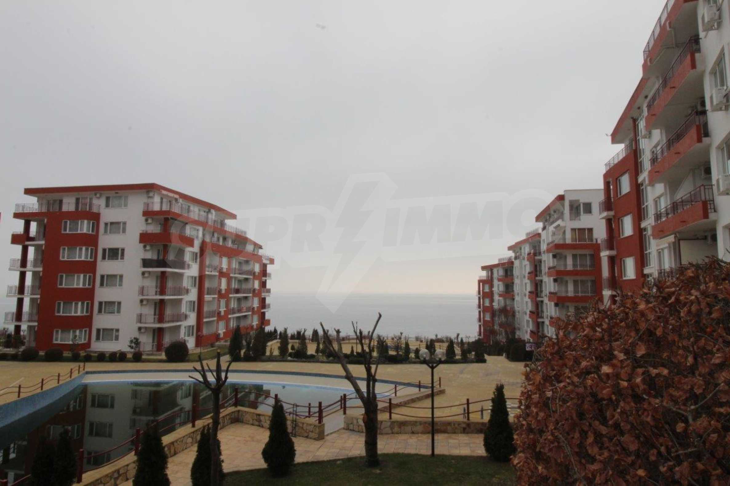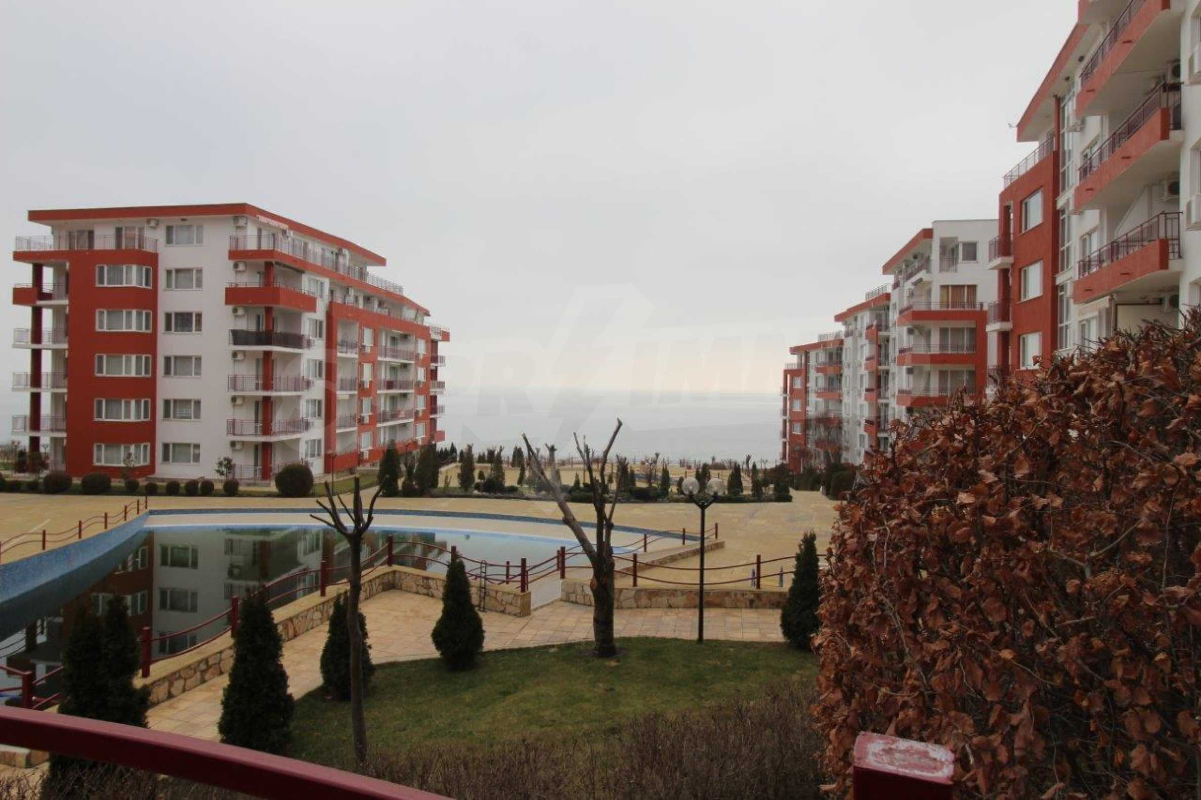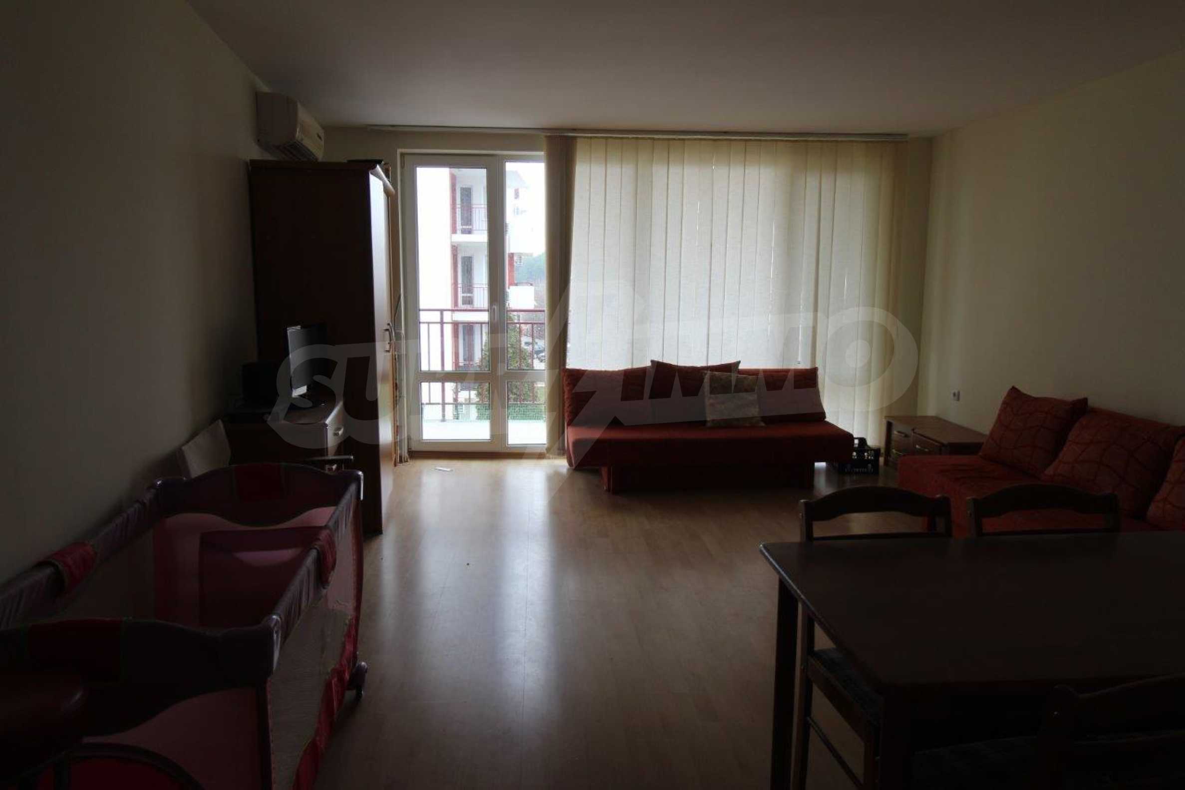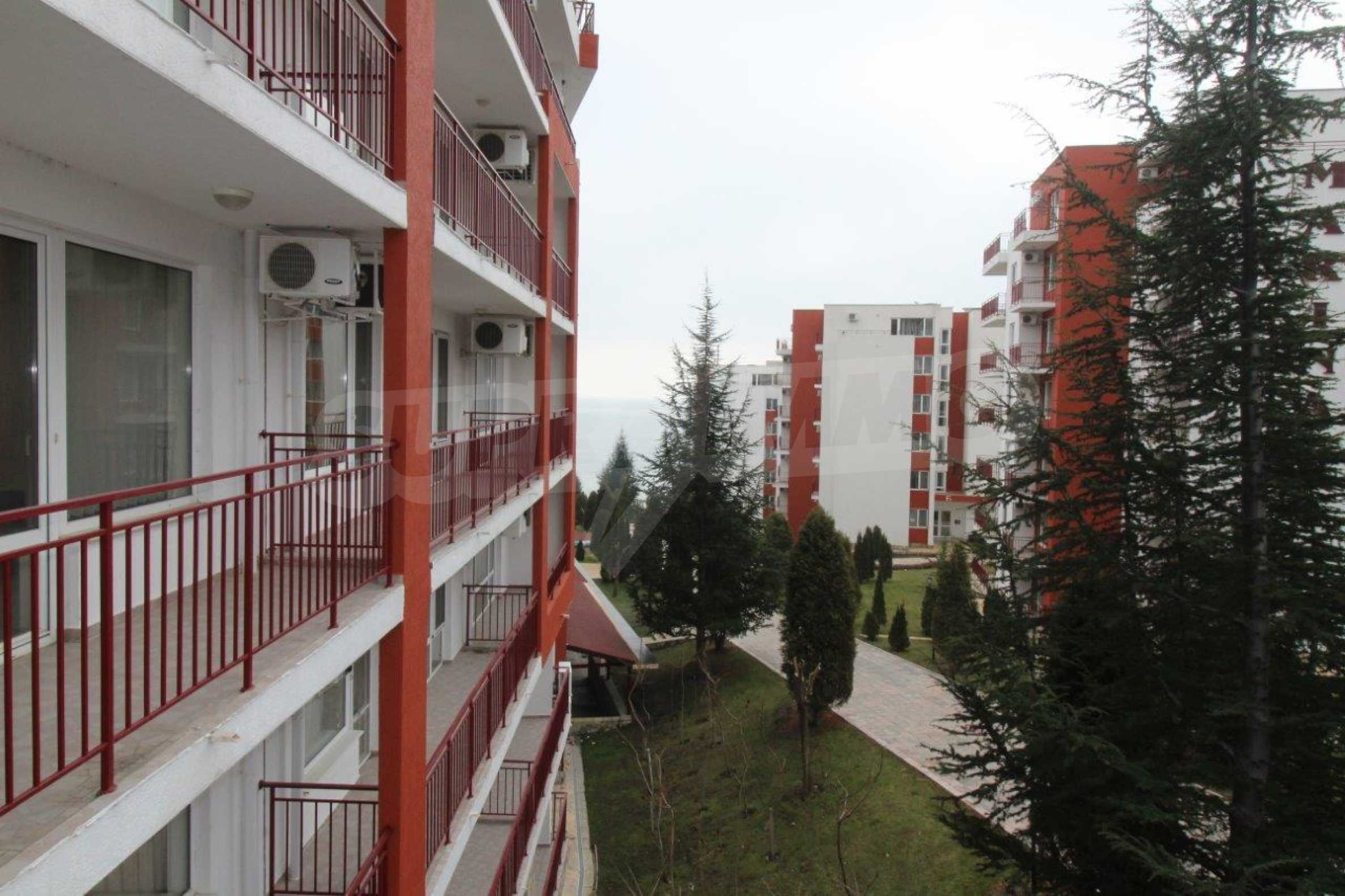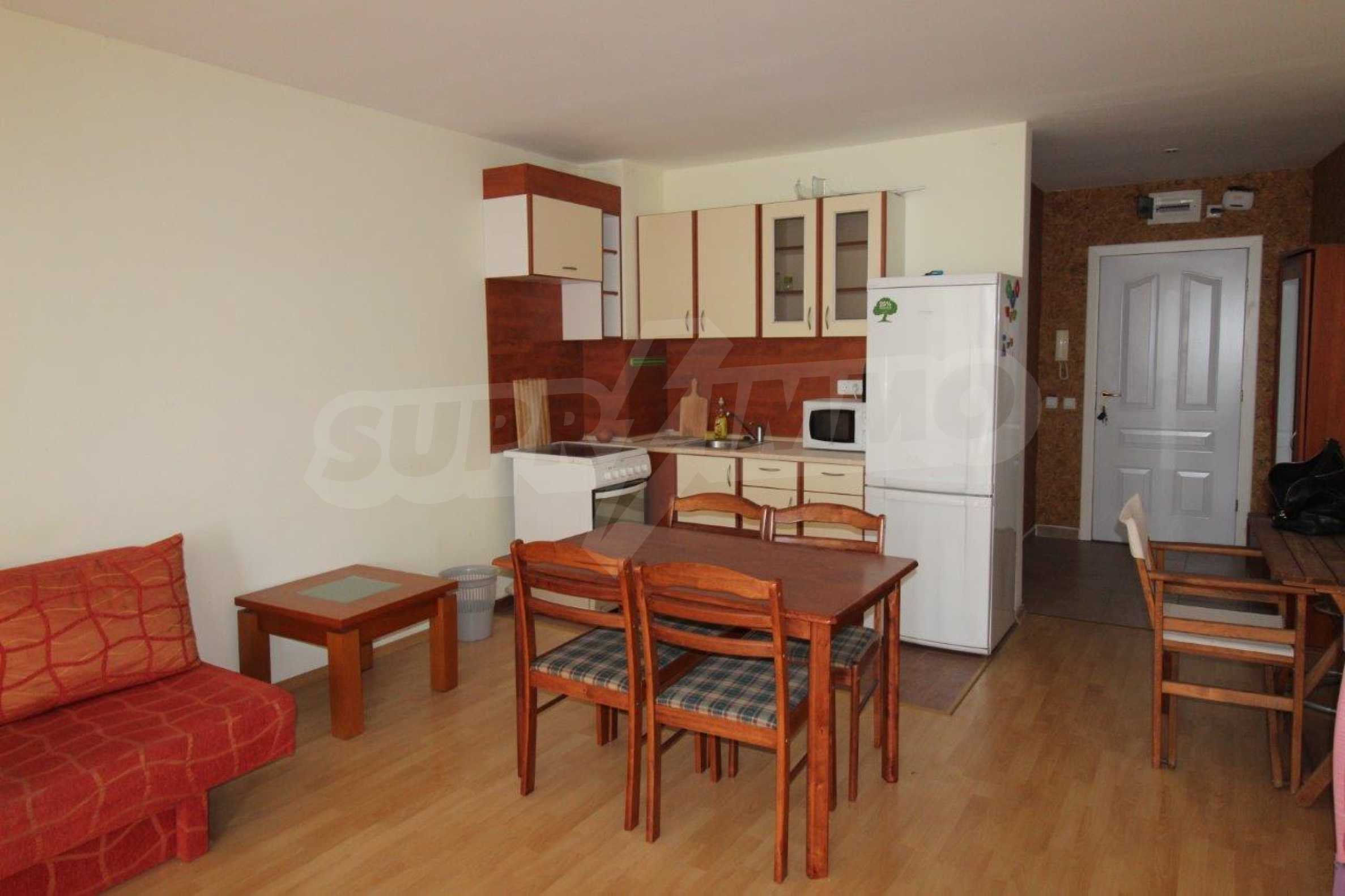 Fully furnished studio area of 50 m2 with spacious terrace for sale in the popular beachline complex in Sveti Vlas resort - "Panorama Fort Beach".