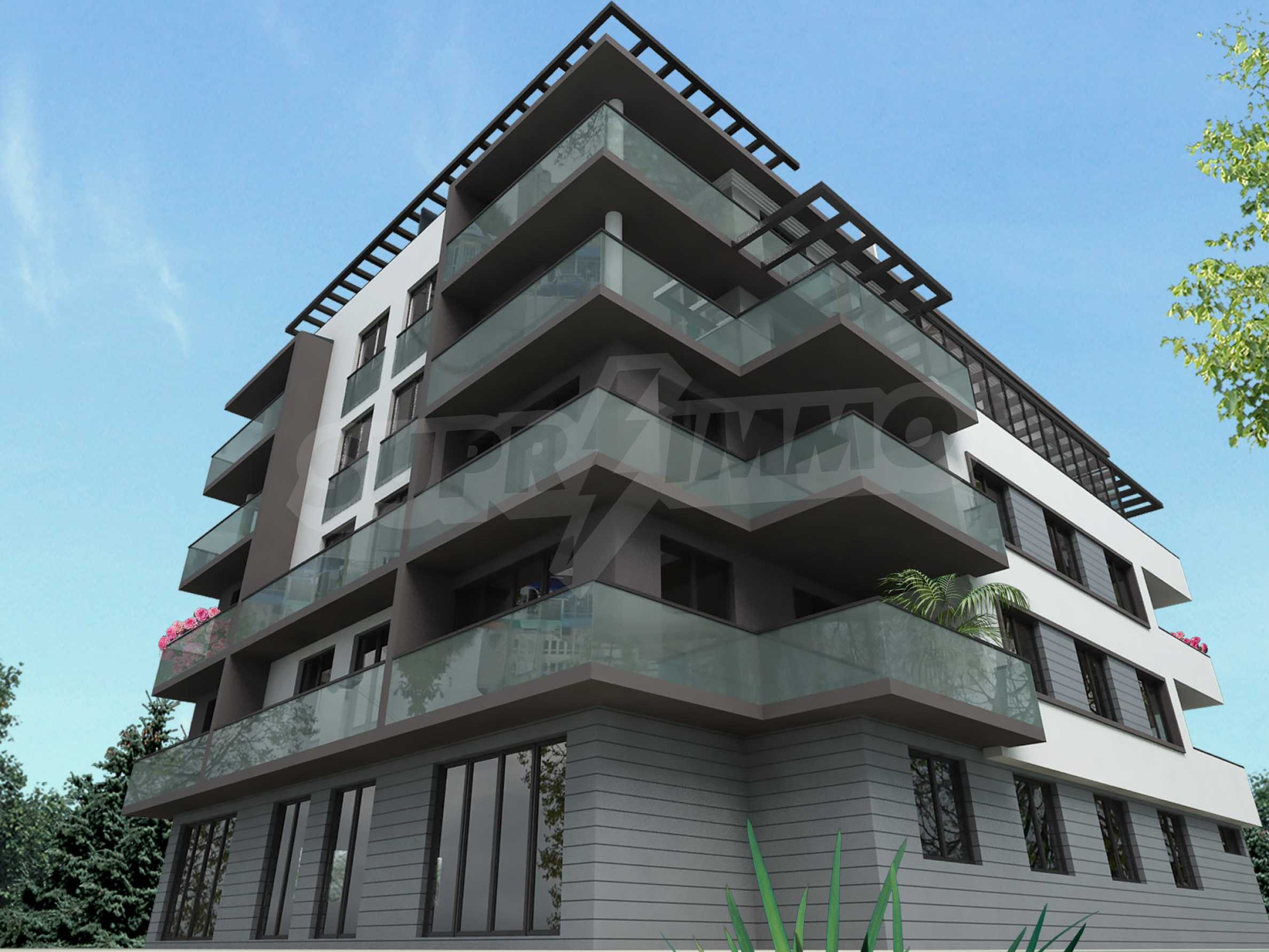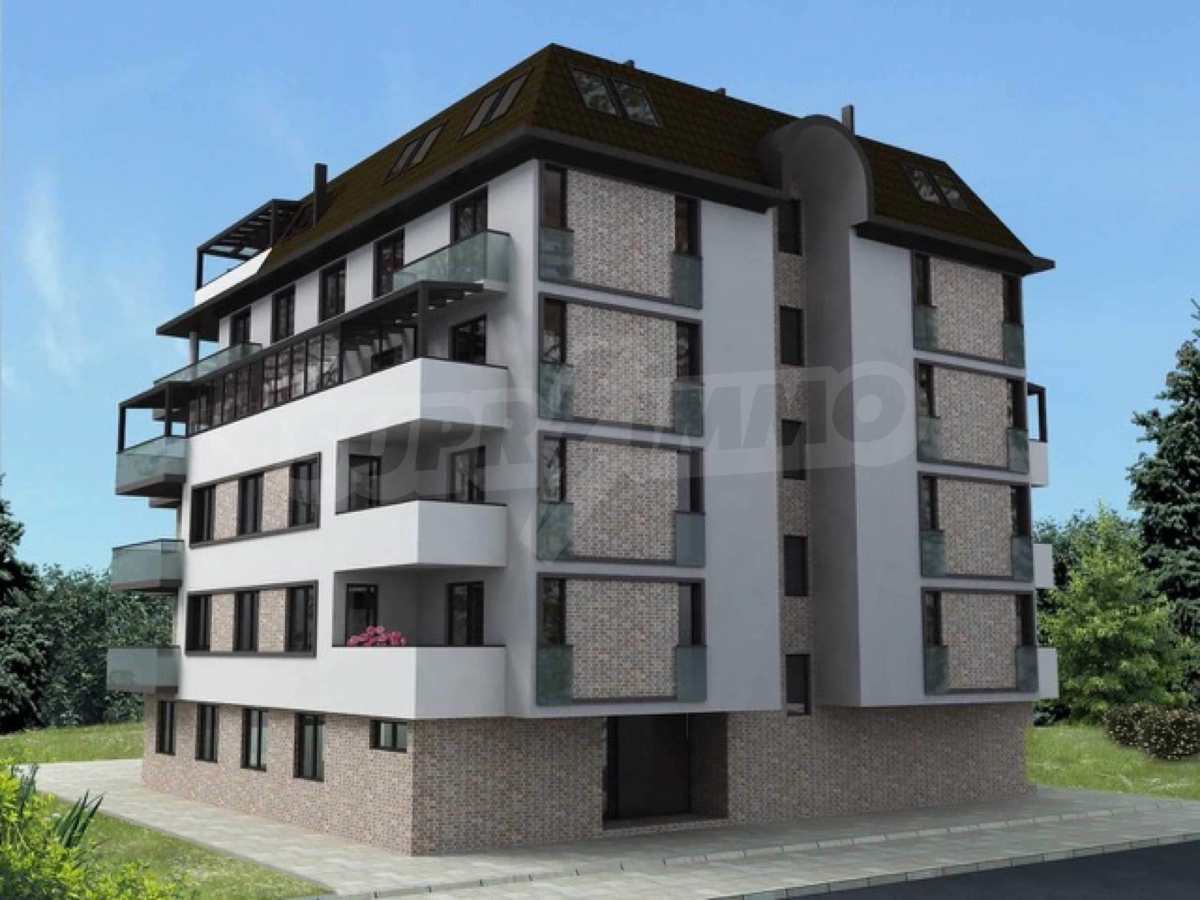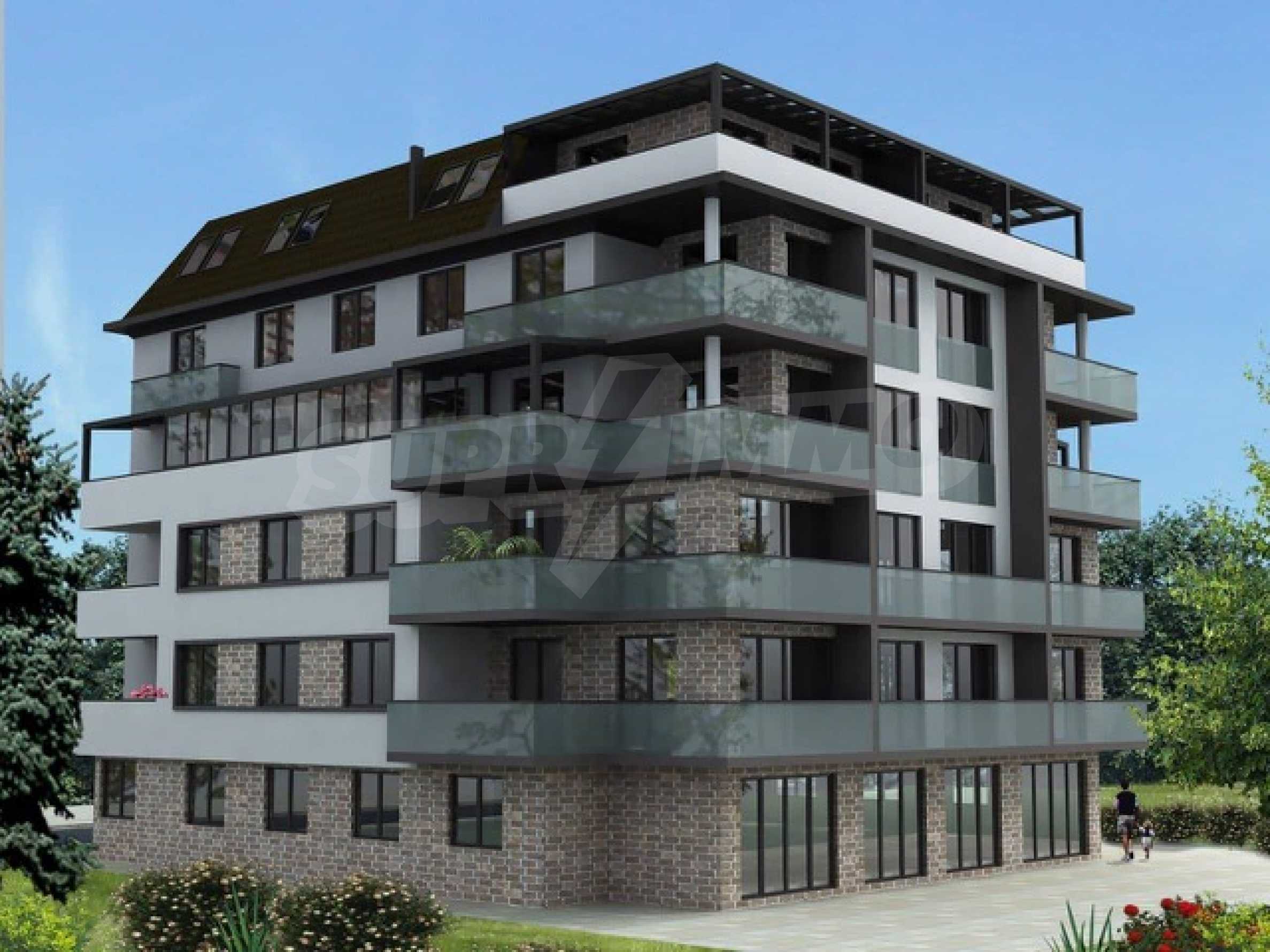 The property is located on a plot of 686 m2. and on it are designed 15 spacious apartments of 80 m2. up to 196 square meters, with only three of them one-bedroom, one-bedroom, and all the others with three bedrooms and lovely living-rooms combined with a kitchenette. The building is six-storey and has a porter's storage room for strollers and bicycles and an underground level with garages and storage rooms. On the ground there are parking spaces for the convenience of the residents.