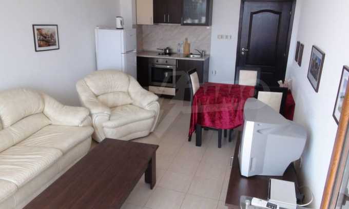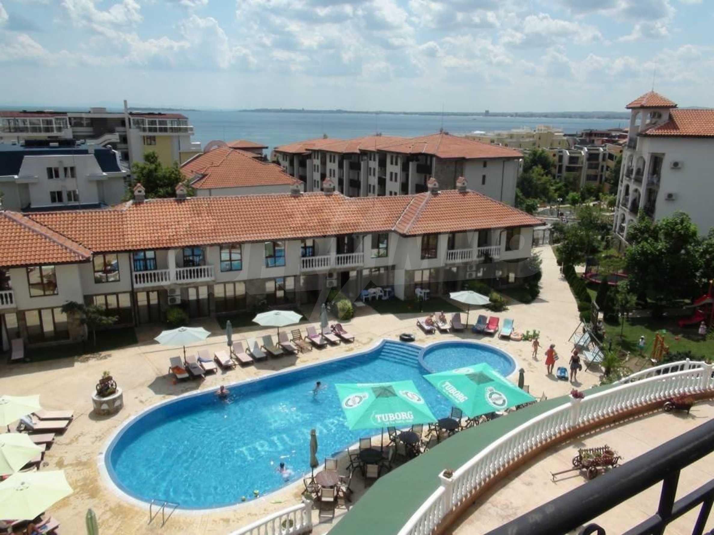Fully furnished one-bedroom apartment in an attractive complex with facilities near the beach and Marina Dinevi in Saint Vlas - "Triumph Holiday Village". The apartment is located on the 5th (last) floor of the complex building with a lift. The spacious apartment of 68 m? is sold with furniture and equipment in very good condition.
