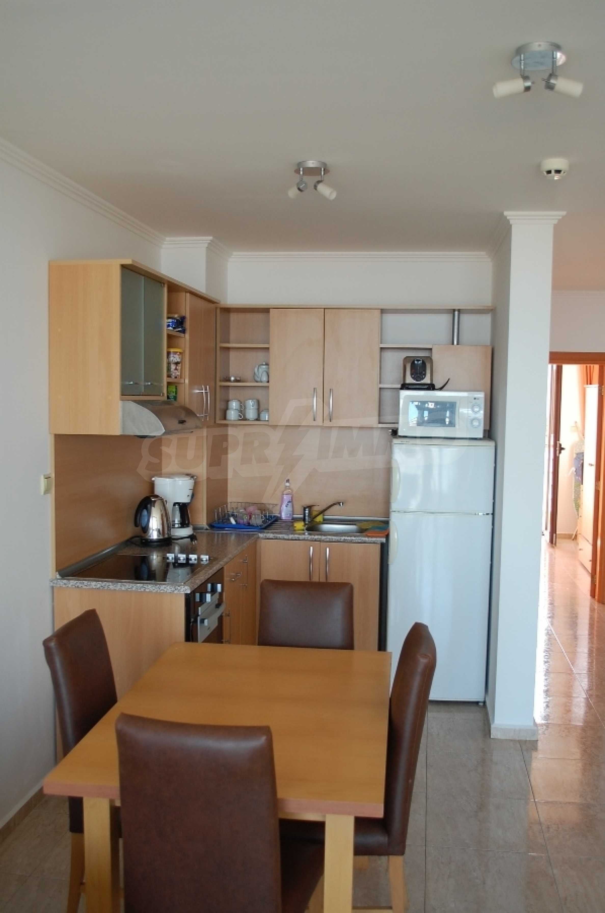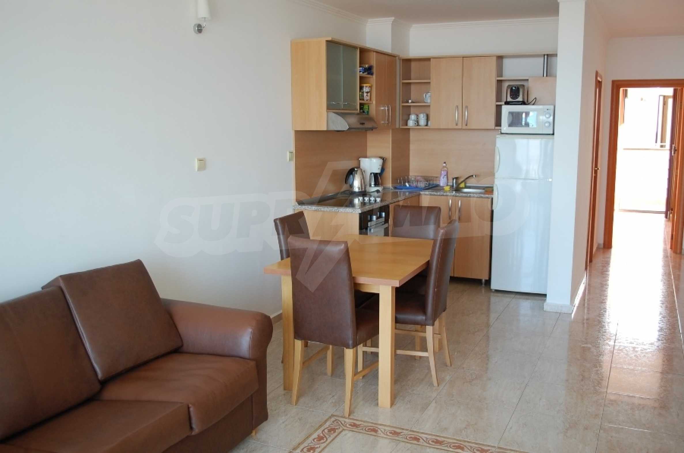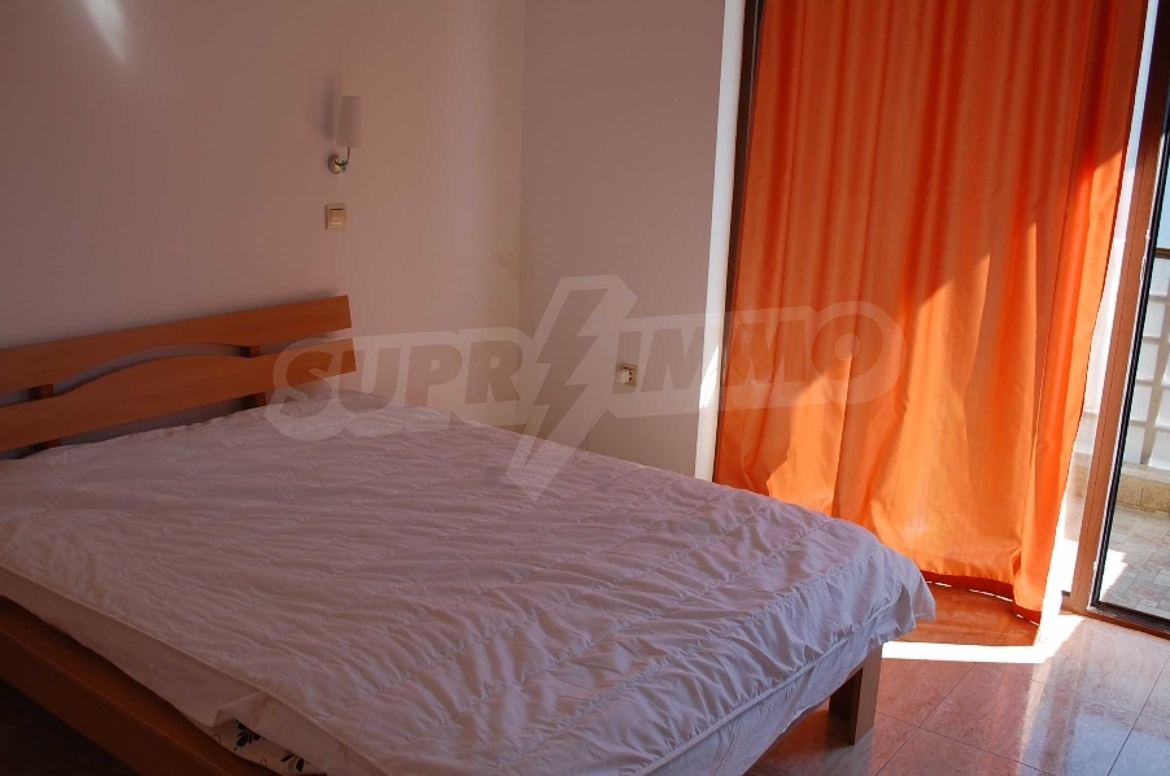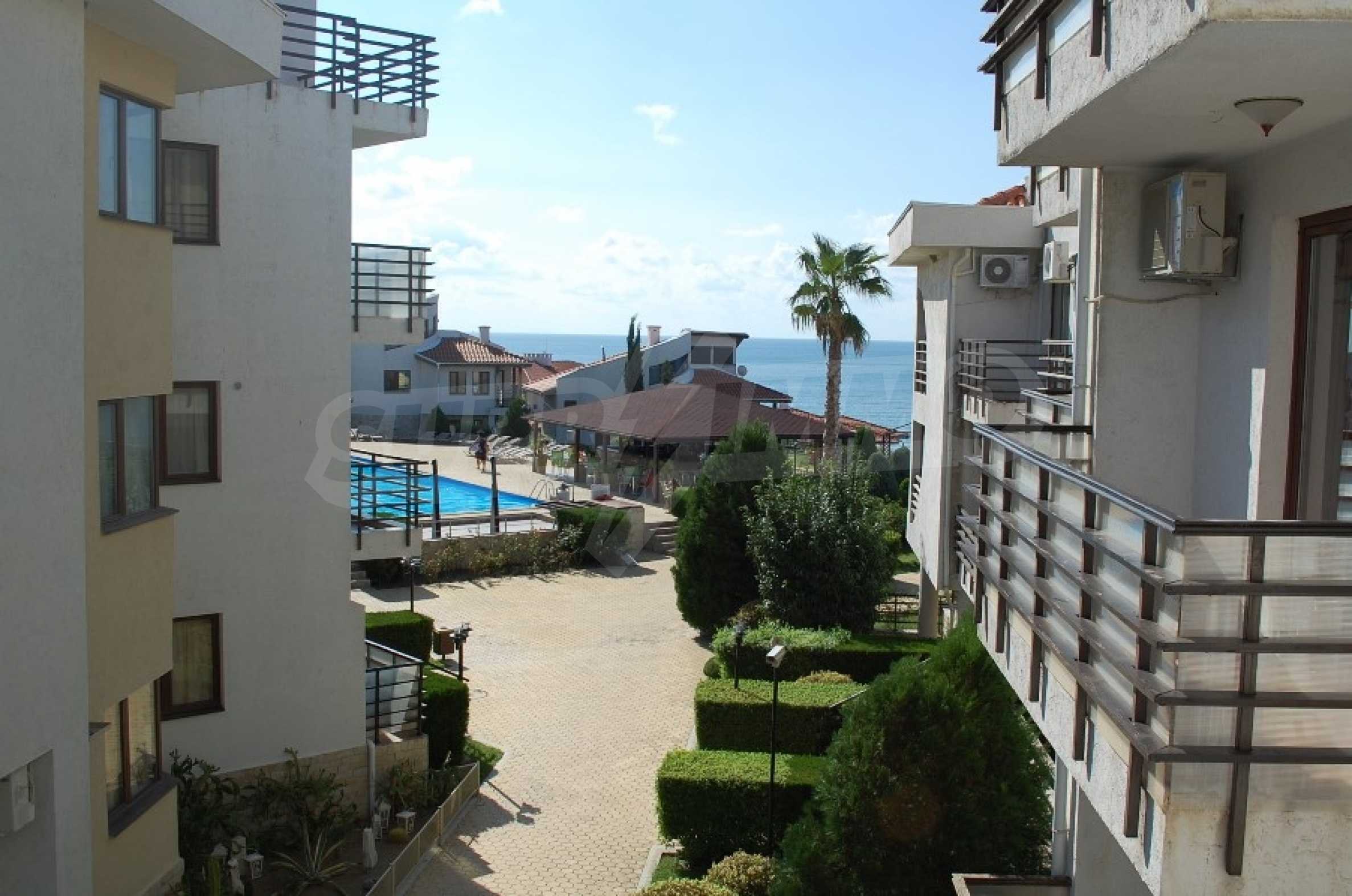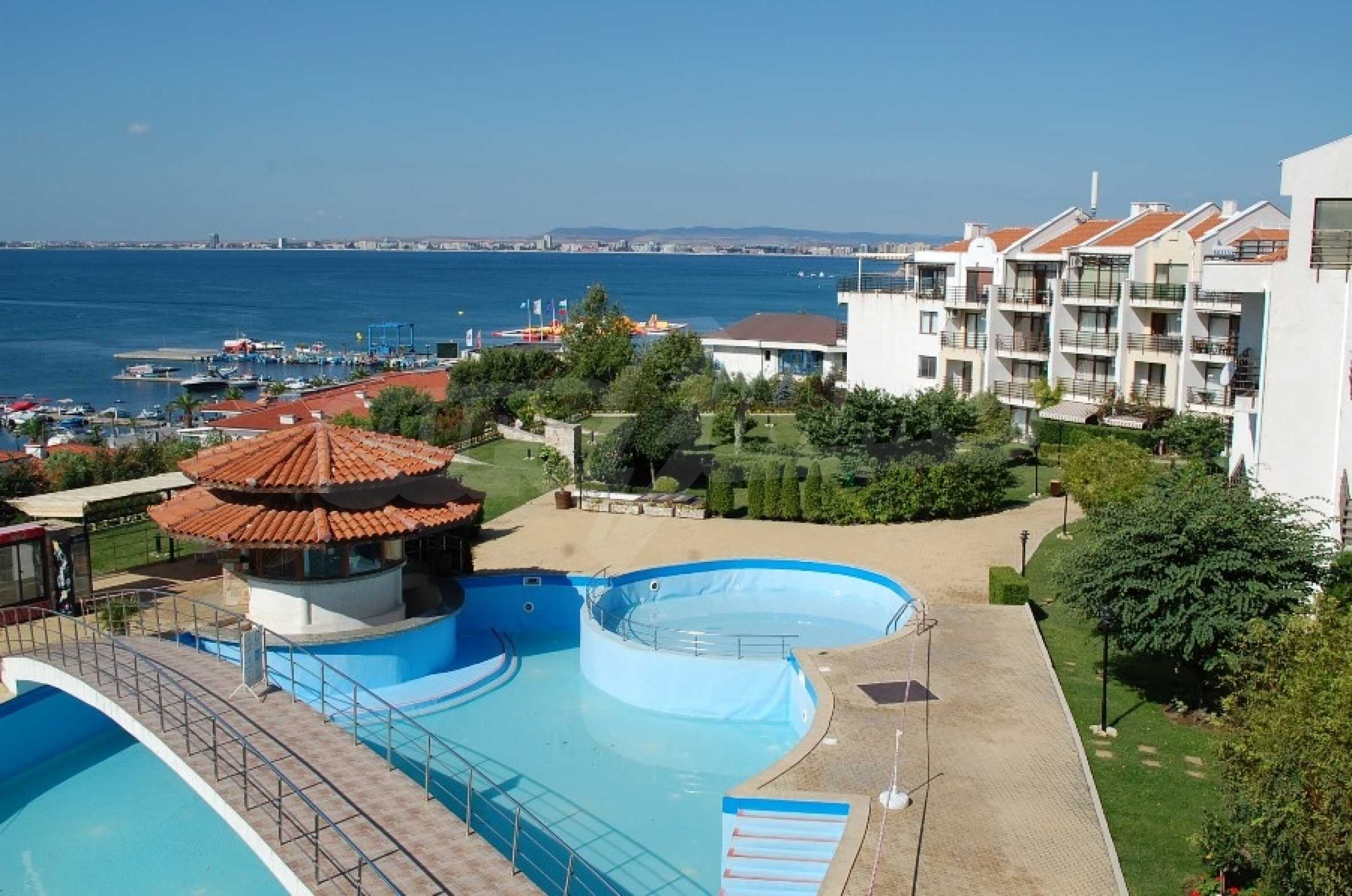 We offer for sale an apartment with a beautiful view of the sea, located in the complex "Diamond", the first line of St. Vlas. It has one bedroom. Located on the 2nd floor; 64sq.m net area., The complex is located 30 meters from the beach resort.