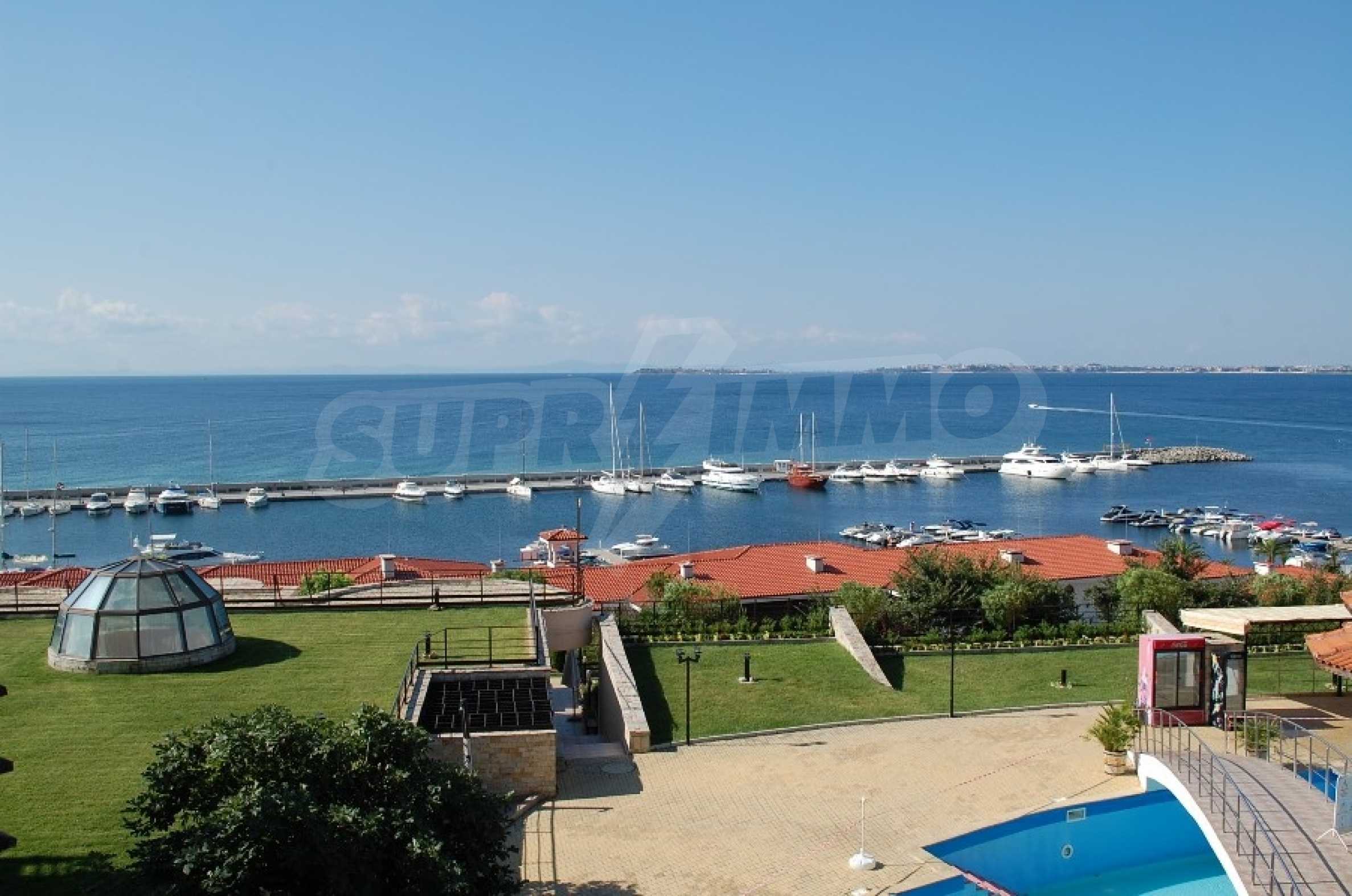 - cafe, There are Act 16., City of St. Vlas - is a prestigious resort, with a well-developed infrastructure. It is located at the foot of the Balkan Mountain, on the very sea shore, and combines sea and mountain climate, which is useful for respiratory organs., The field is great for a family holiday - there is a completely calm and cozy atmosphere of a quiet resort., The yacht club with 1,700 seats gives VIP status to the resort.
