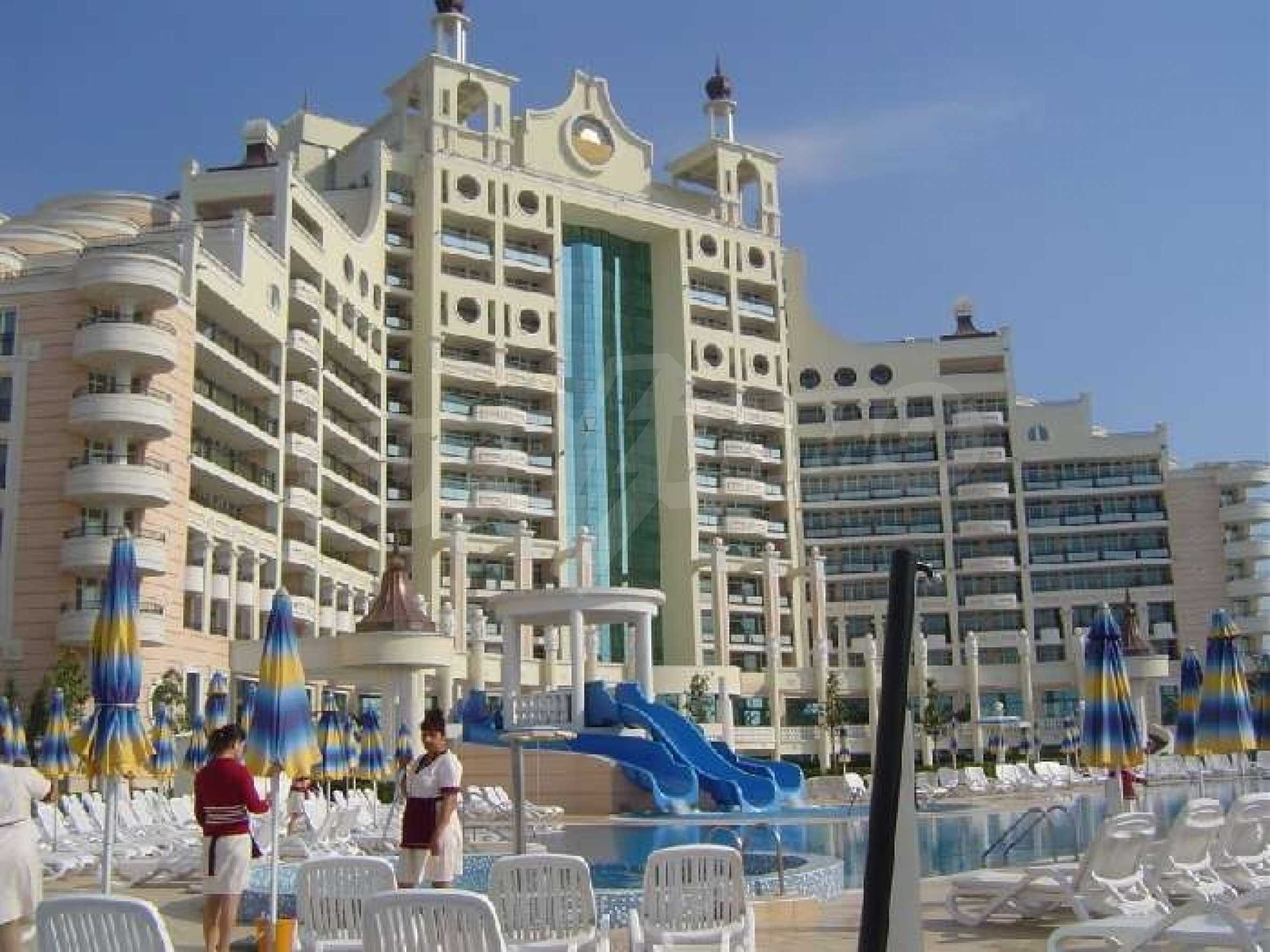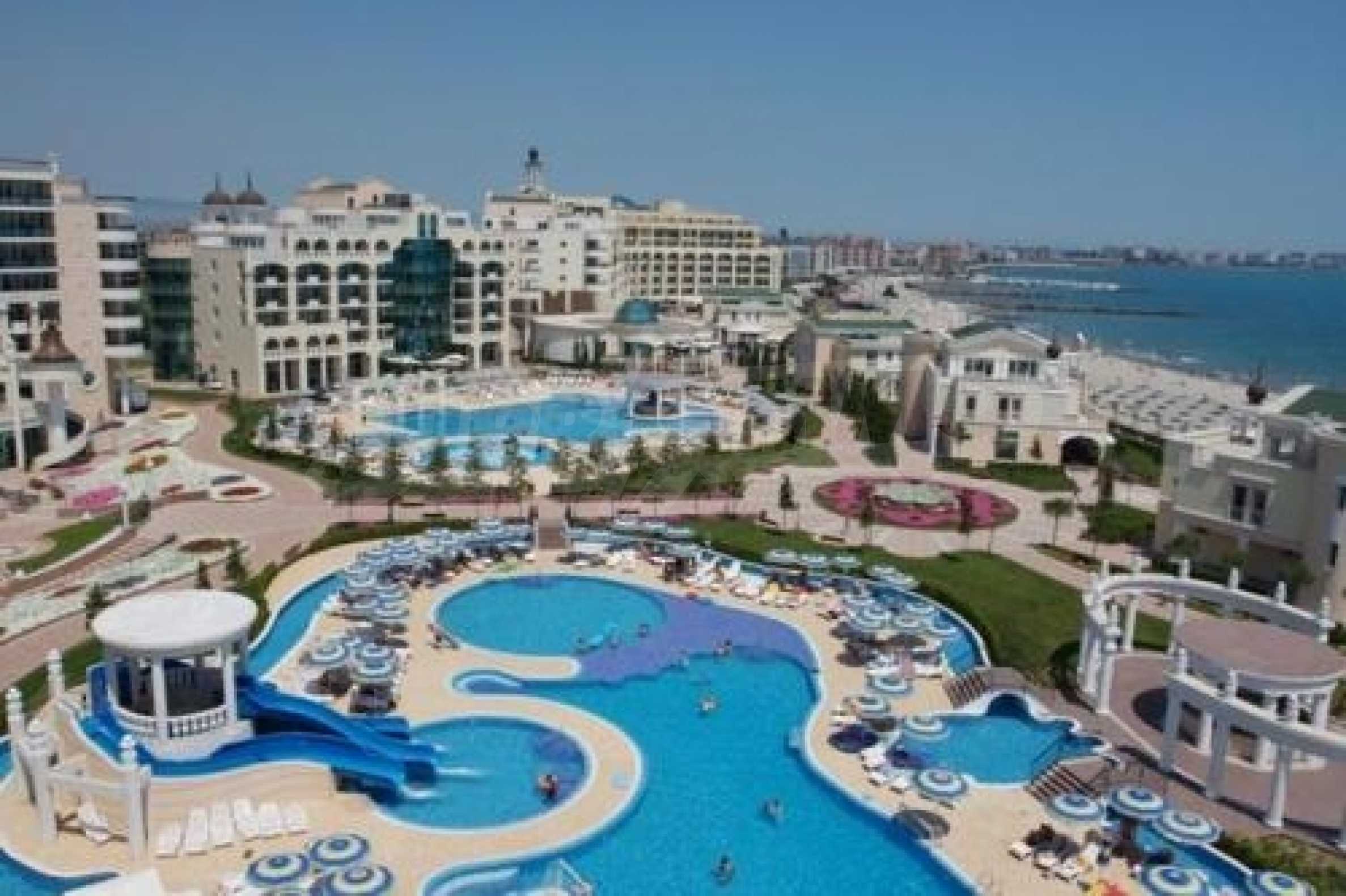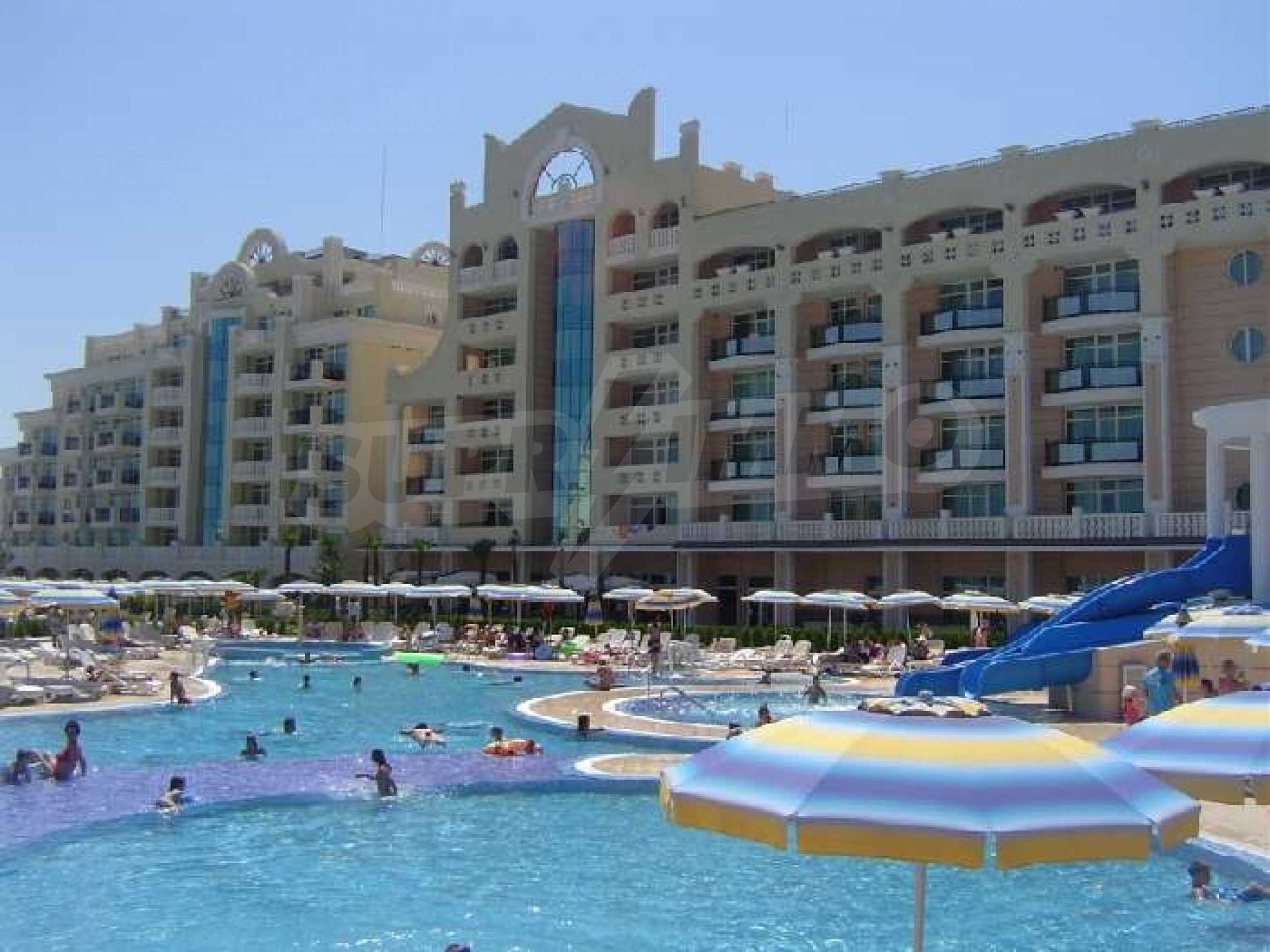 Sunset Resort is a beautiful complex located in the town of Pomorie on the Black Sea Coast.  The complex has direct access to the beach and has wonderful facilities for all the family. This 5* complex comprises of 5 apartment buildings, named Alpha, Beta, Sigma, Delta and Eta and each reception has excellent services, internet access and detailed information on all available extras.The apartment on offer is on the first floor of Sigma block and has been fitted with a Gold Furniture Package.  The property comprises a spacious lounge with dining area and a fully fitted kitchen.  There are 2 bedrooms, a family bathroom and a balcony with views of the pools and the Black Sea along the Pomorie coastline.The Sunset Resort has fantastic amenities including: Reception & 24 hr securityElevators9 cocktail & coffee bars Vienna Pastry Shop 5 a la carte restaurants and Grill HouseNumerous swimming poolsSpacious pool terracesChildren’s play area Sunset Resort's Spa & Wellness oasis is located in Sigma. It offers a great variety of massages, treatments and therapies including:SaunasVitalis sauna with hammam table SolariumSteam bathKneipp-Basin Relaxation areas with heated loungers Massage showers and ice fountain Bathtub with tangentor Beauty parlour The complex is only 15 mins drive from Bourgas International Airport and 30 mins drive from the large resort of Sunny Beach which offers fabulous shopping, a great variety of restaurants and bars and good family entertainment in the evening. An excellent destination for a holiday home on the Black Sea Coast with fabulous rental potential!!      Â