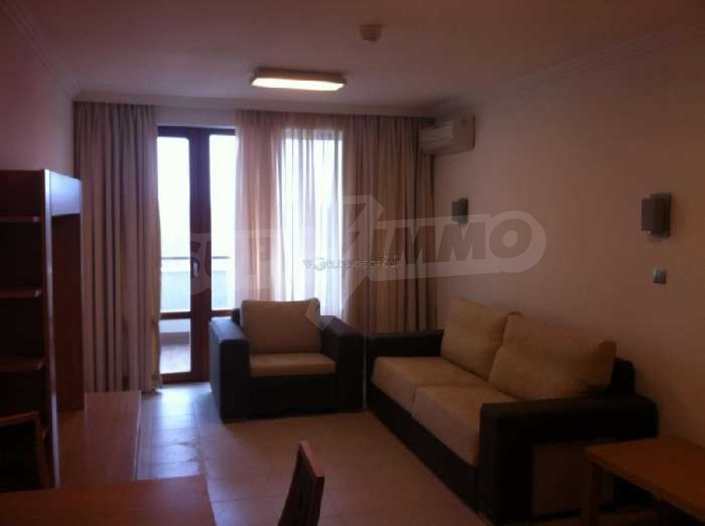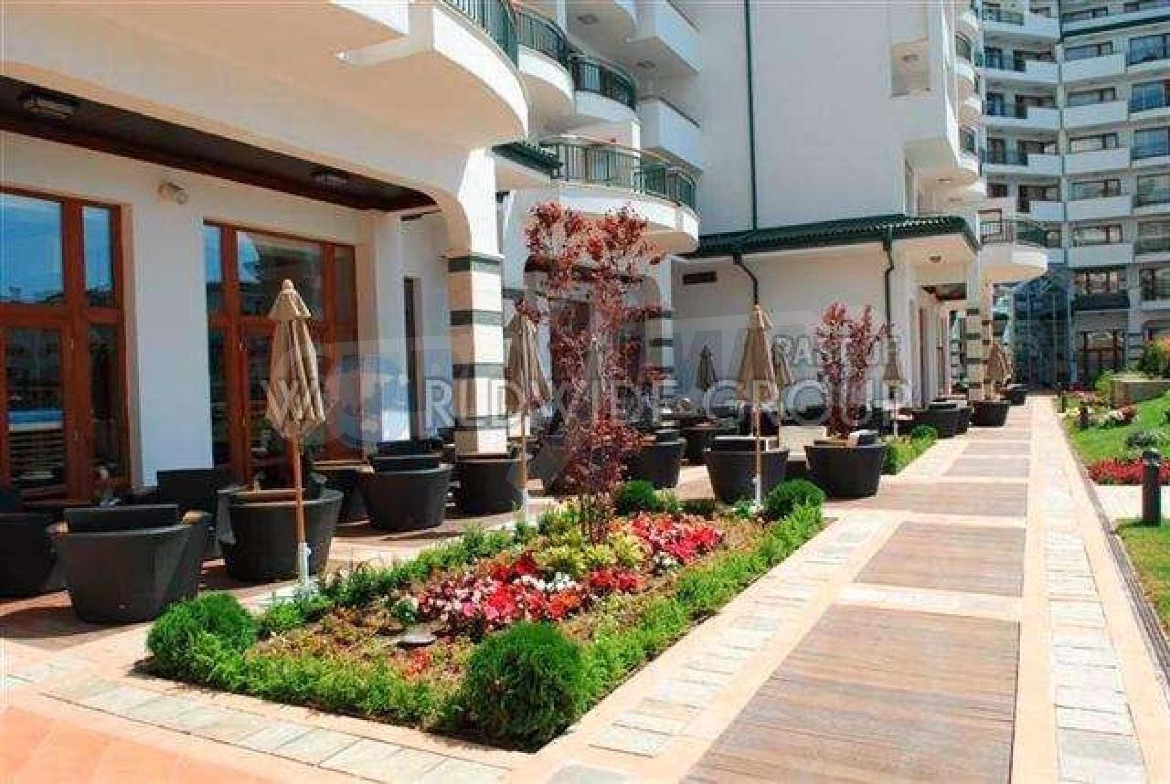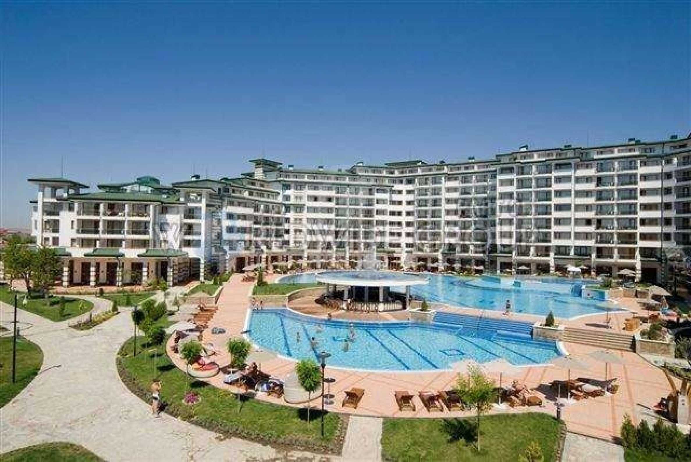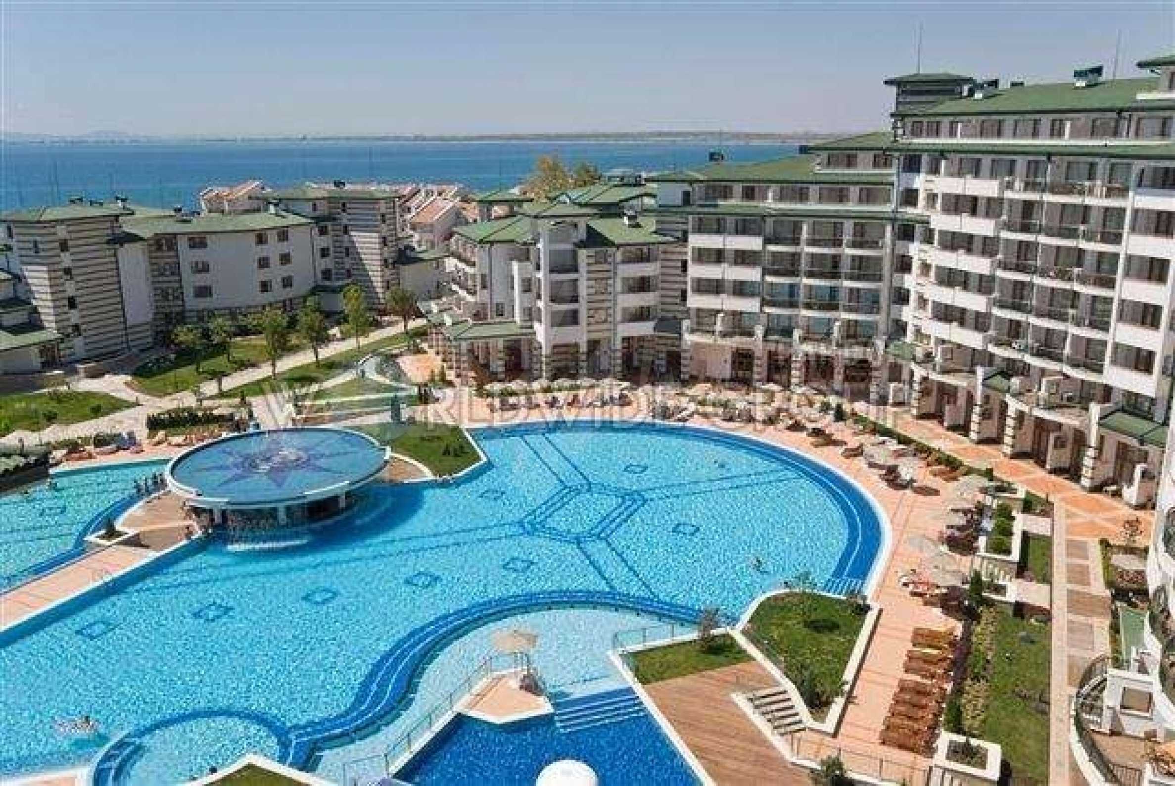 Fully furnished with fabulous views. The 5* Emerald Beach Resort and Apartments is based in one of the most exclusive areas of the Bulgarian Riviera - Ravda. It is consists of five independent buildings and is situated in a lovely park right next to a beautiful beach. It is perfect for anyone wishing to own an affordable, luxury apartment as a first or second home. Emerald Resort's numerous amenities and location on a broad white sandy shore, make it an ideal investment for everyone. The apartment on offer is a studio apartment located on the fifth floor. It includes an open plan lounge with sofa and bed, a dining area and a kitchen fitted with everything you could require for self catering cooking.  There is a fitted bathroom and a balcony where you can relax and enjoy the views. The apartment is in great condition and is fully furnished, including an integrated air-conditioner and efficient heating system. Built to high UK quality and safety standards, it is set on 30 acres in a natural park with rare plants. The complex provides its owners and guests with well maintained beach and several indoor and outdoor water attractions bringing together natural beauty, quiet seclusion, effortless luxury and of course, all the amenities you would expect in a luxury holiday property. Restaurants & BarsThe Queen of Asia Restaurant is the main restaurant of the complex and serves a variety of cuisines in separate dining rooms and is adjoined by a Coffee Bar.Drake's Grill Bar is based in the garden of the complex and offers you a large selection of tasty food, drinks and cocktails.Magellan's Grill Bar has a lovely sea view, next to a swimming pool. The bar serves fresh fish or meat dishes for lunch or dinner, and a variety of small snack between meals.Nemo's Pool Bar is by the Blue Lagoon swimming pool. This swim-in and dry-seat bar offers cool drinks and exotic refreshments.Raffles Bar has a rich wine selection, the best beers from the world's most famous breweries, infinite choice of spirits, rare cocktails, and exclusive refreshments in an exotic South-eastern atmosphere. Open Sea Piano Bar boasts marvellous views of the Black Sea and of the Old city of Nessebar.This is the largest water facility of its kind in Bulgaria totalling 2500 square metres featuring a unique design and the latest technology. The complex consists of three independent heated swimming pools.The Blue Lagoon - with water cascades, rocks and shelves, emerald sparkling water. A place for sunbathing in the shallow water and a challenge for swim and sport.Kid’s pool - a place for our youngest guests, situated in the Mowgli's Corner. A fun spot for an endless game.Horizon - a family swimming pool facing the sea and the beautiful beach.Indoor Swimming Pool - a 22 metre long heated swimming pool for year-round enjoyment.Mowgli's Corner - a playground with a swimming pool of its own, providing entertainment and animation for children - perfect for families, who like to enjoy their holiday, without having to worry about their children's fun and safety.Garden of Youth Wellness Centre - providing relaxing and recreating facilities - infrared sauna, massage, solarium, therapeutic massage, and more. Modern gym and fitness facilities, tennis room and billiard tables, with a Fresh Bar on its territoryOther FacilitiesBowling alley - a full size professional BowlingTennis Courts24/7 Medical Service24/7 SecurityShops and BoutiquesUnderground parking for 80 carsConvenient outdoor parking.Ravda is less than 25 km from Bourgas Airport and only 5 km from Sunny Beach. It is known as a family resort due to its relaxing atmosphere, healthy climate, fine golden sand, and clean water.  It is the ideal place for those who seek a perfect vacation. One of the most attractive features of Ravda is its recreation opportunities. Sunbathing, for those who love to relax and for the more active there are countless facilities from diving in crystal-clear water, windsurfing in the light breeze, and sailing along the rugged coastline. The view of Sunny Beach and the ancient city of Nessebar is breathtaking at dawn and sparkling by night and if crowded bars, throbbing discotheques, or wild beach parties are more to your heart’s desire, they are only a few kilometres away. Sell Property in Ravda Bulgaria , Fully furnished with fabulous views.