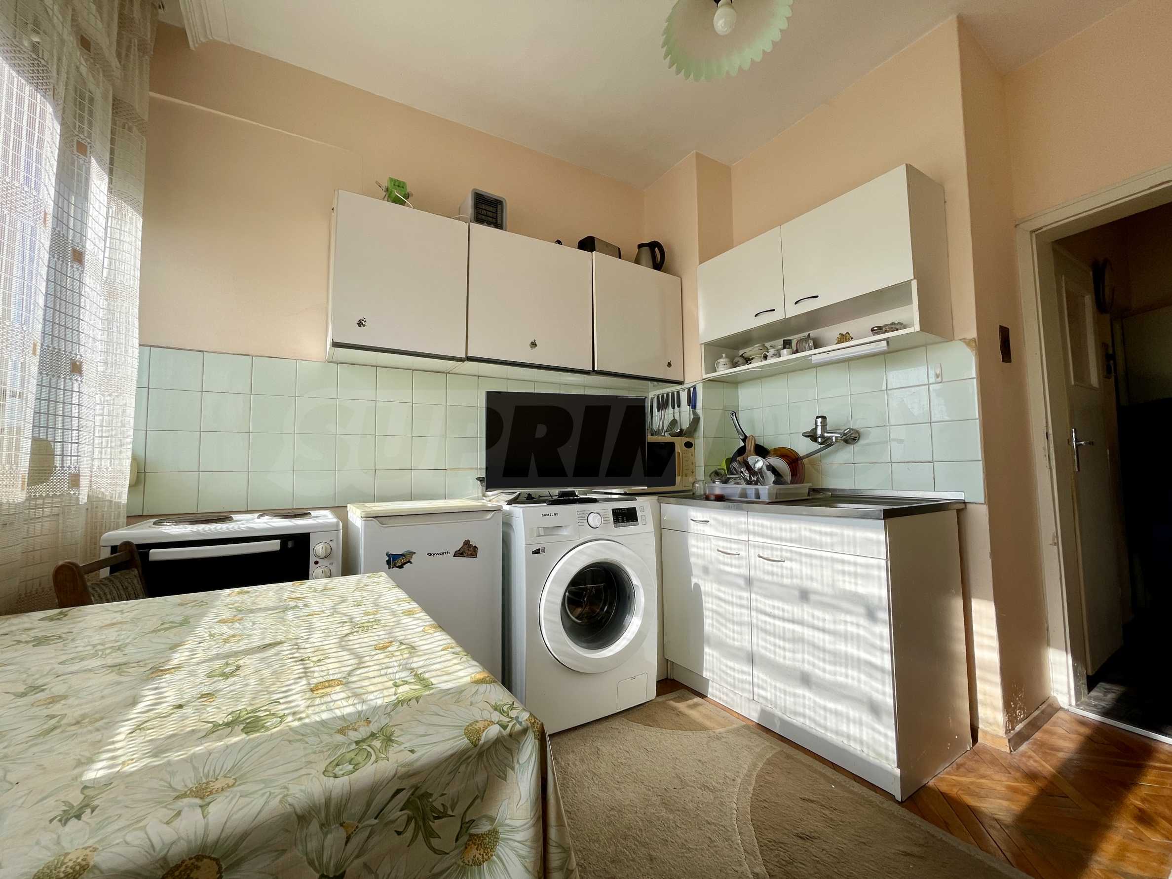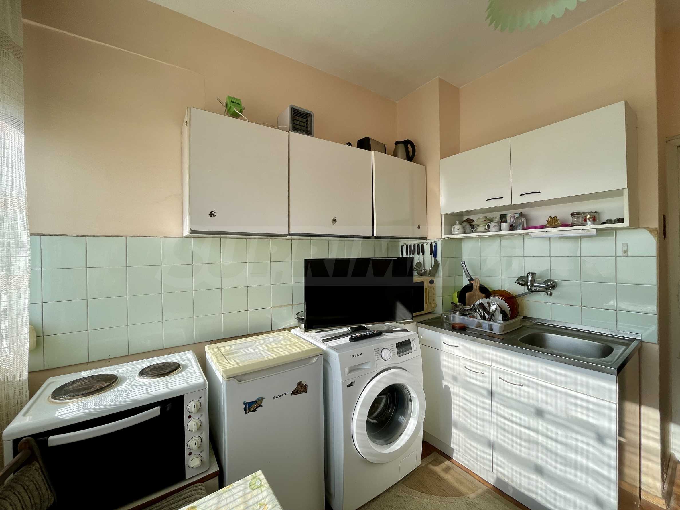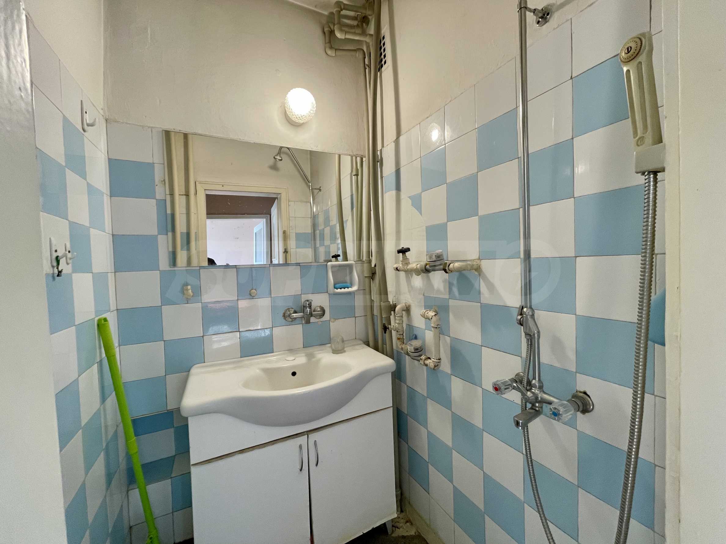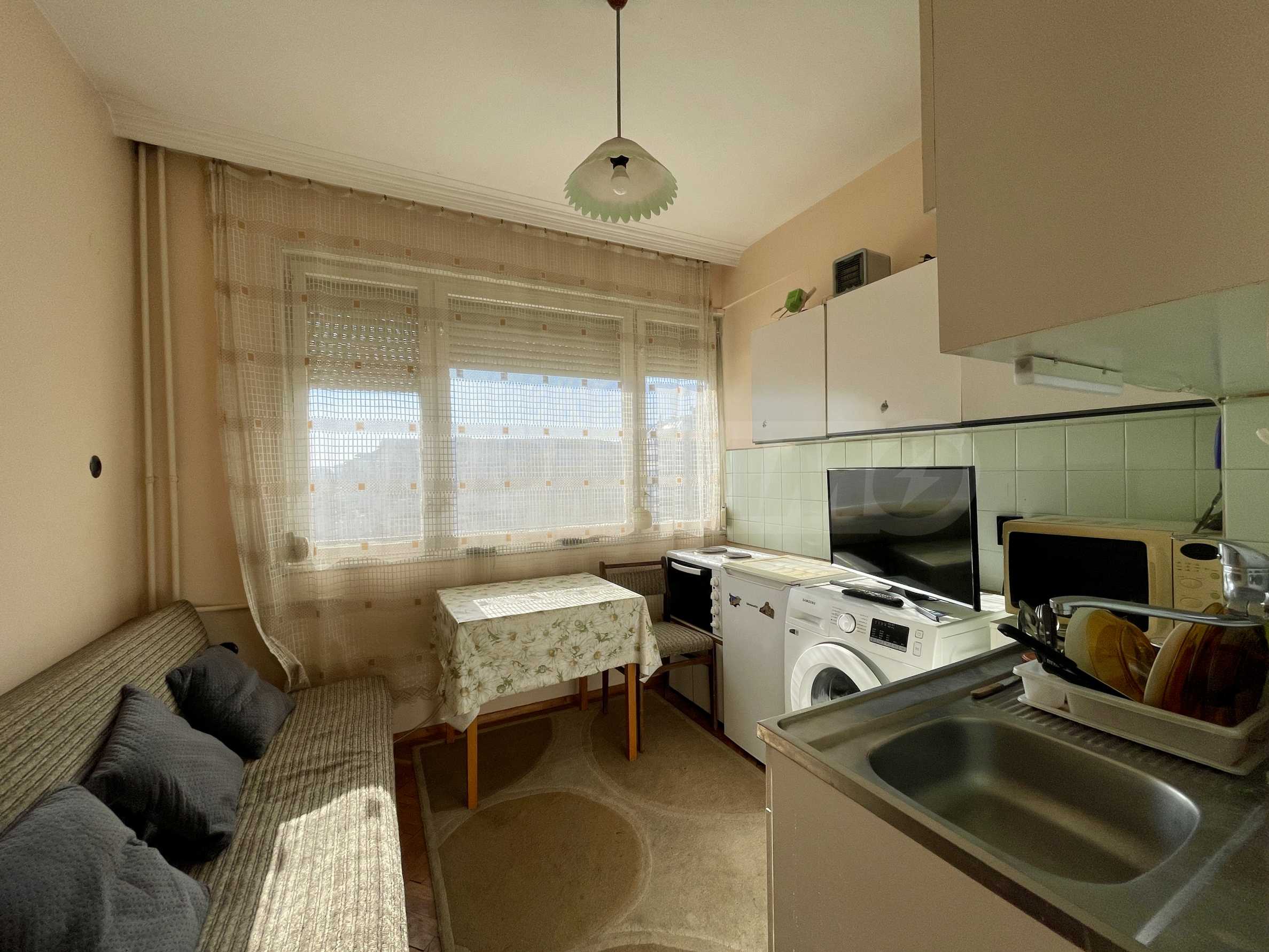 We offer to your attention a furnished apartment in a quiet place in Borovo district. The apartment consists of an entrance hall, a room with a balcony, a kitchen, a bathroom with a toilet and a storage room. The apartment is furnished and is suitable for renting. It is located on the seventh floor in a building with an elevator, and there is free parking in front of the block. The heating is by central heating. The block is close to Solun Street and Bulgaria Blvd., and the center can be reached in less than 10 minutes.