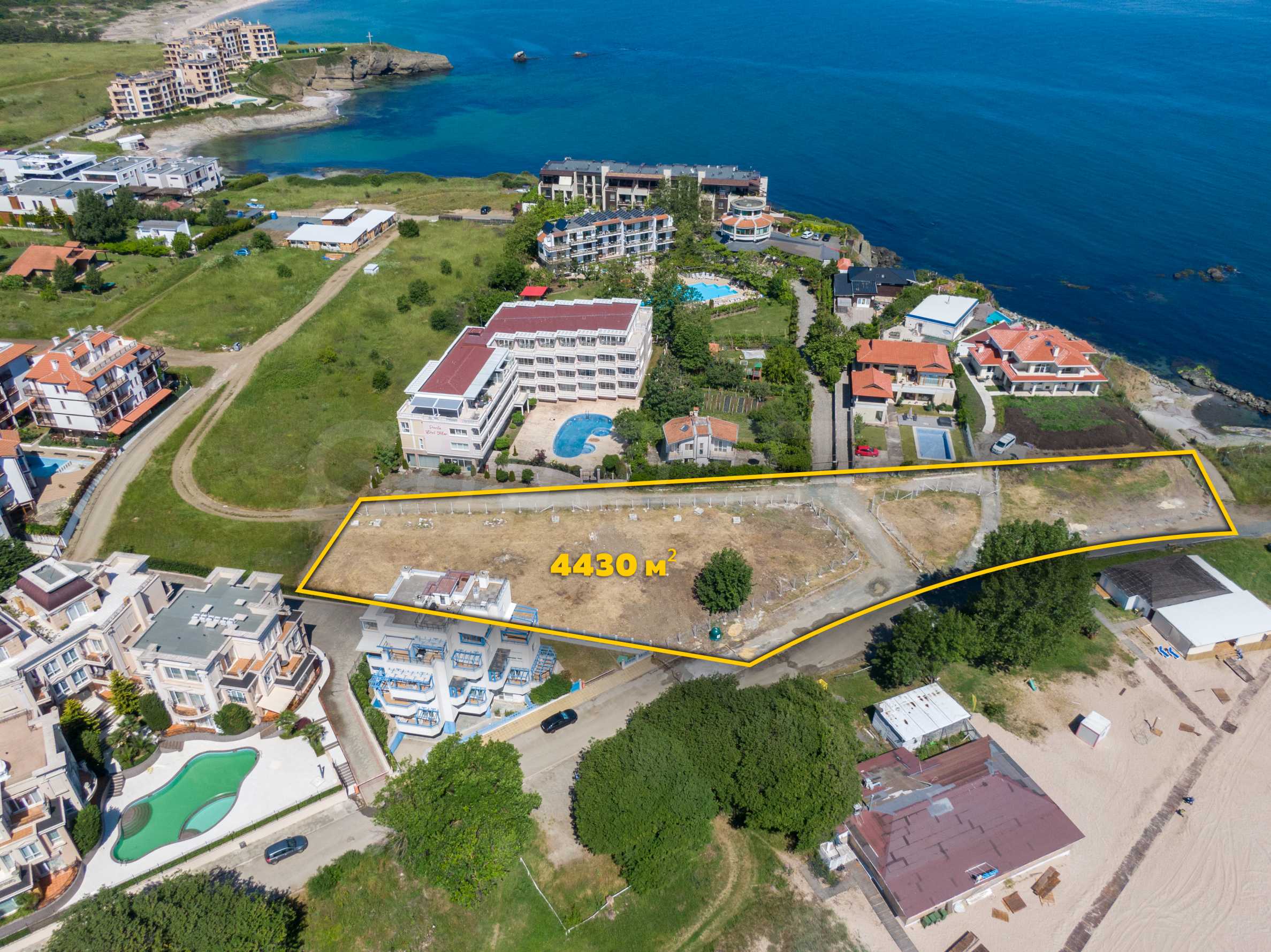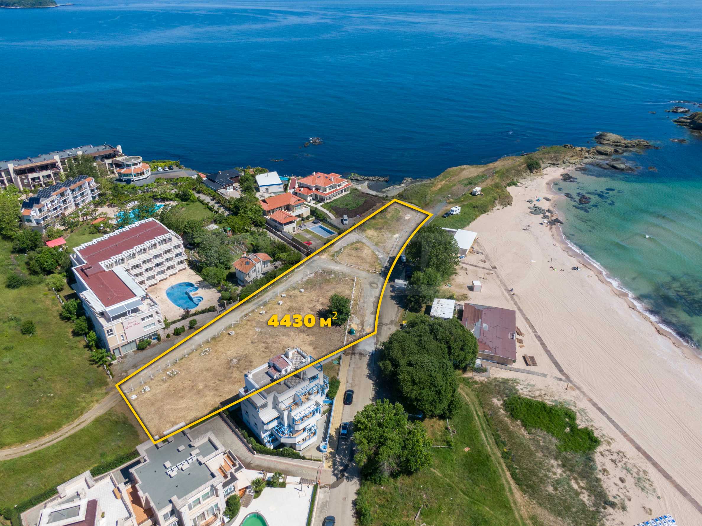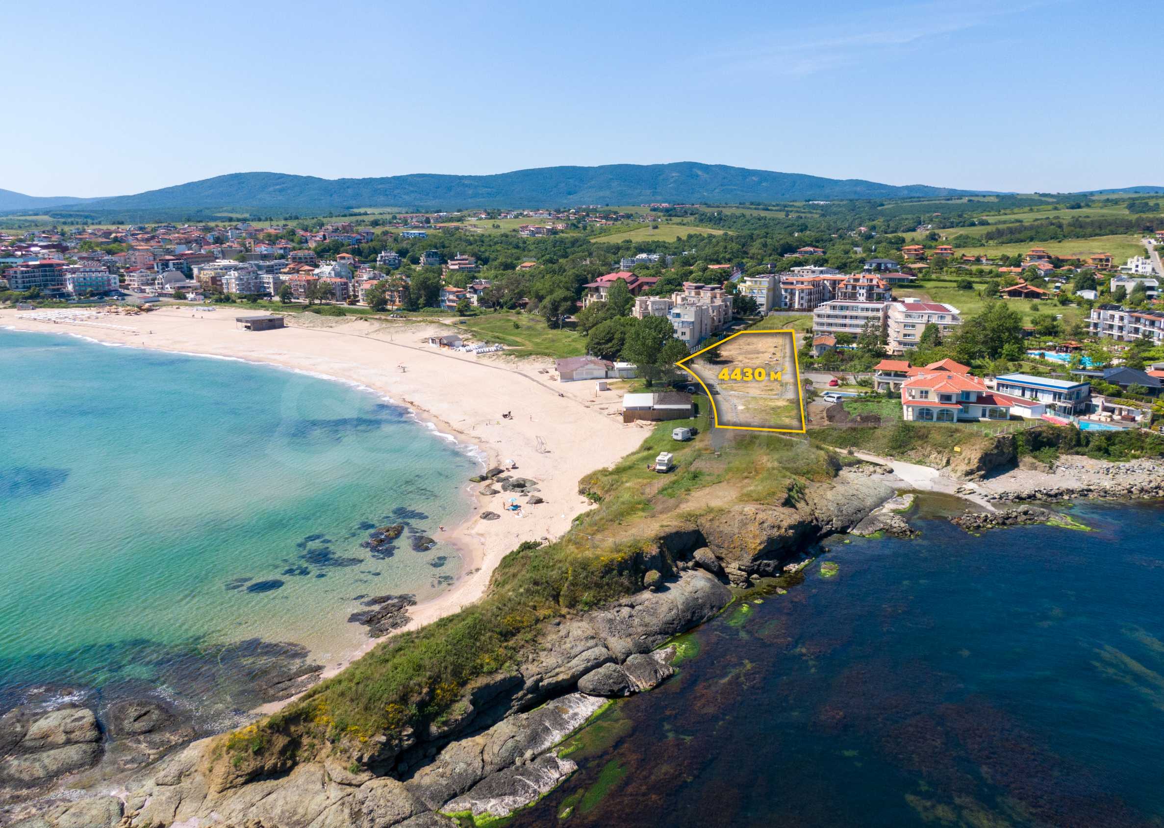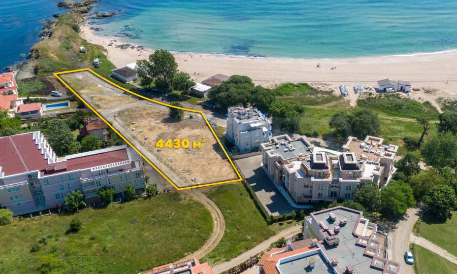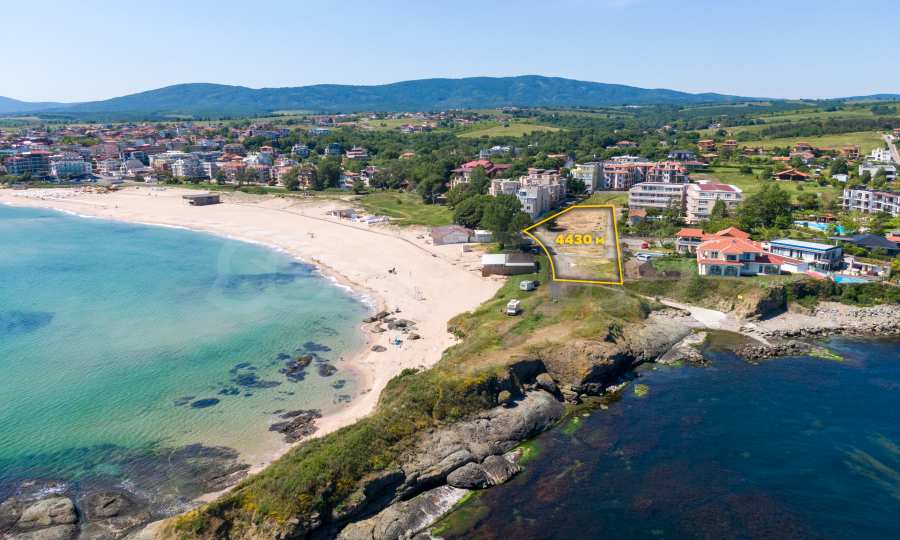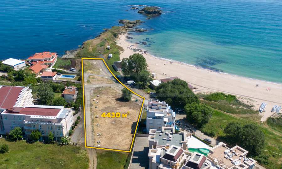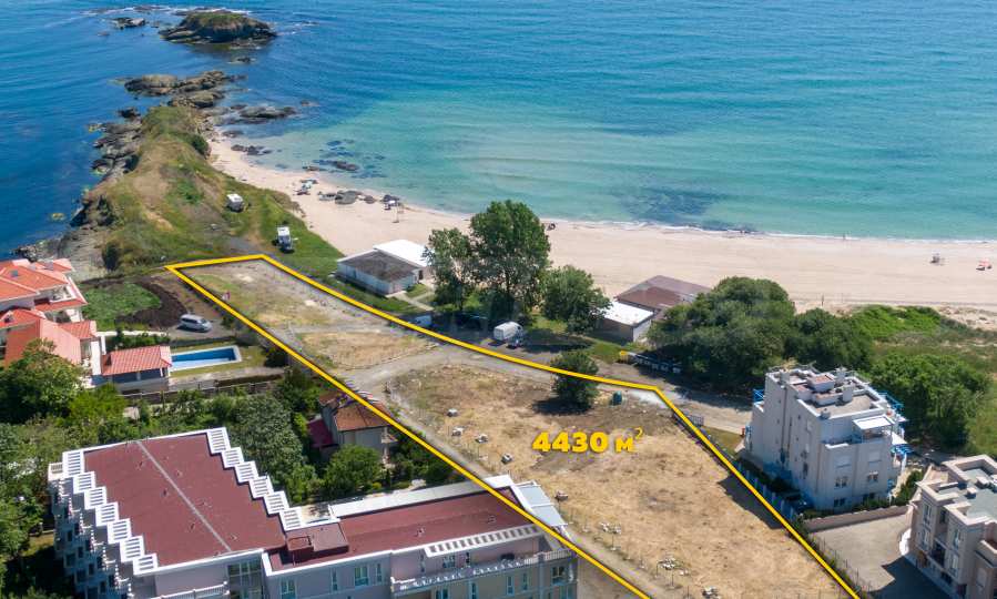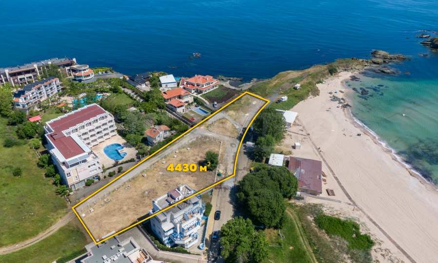 The plot has an area of 4431 sq.m. and occupies a strip with frontage on the beachfront, with a length of about 70 meters, with the last 1/3 of the plot passing on the second line behind the existing residential building. The property has frontal sea views over the beautiful bay of Lozenets and the picturesque rocky Ambelits Cape.