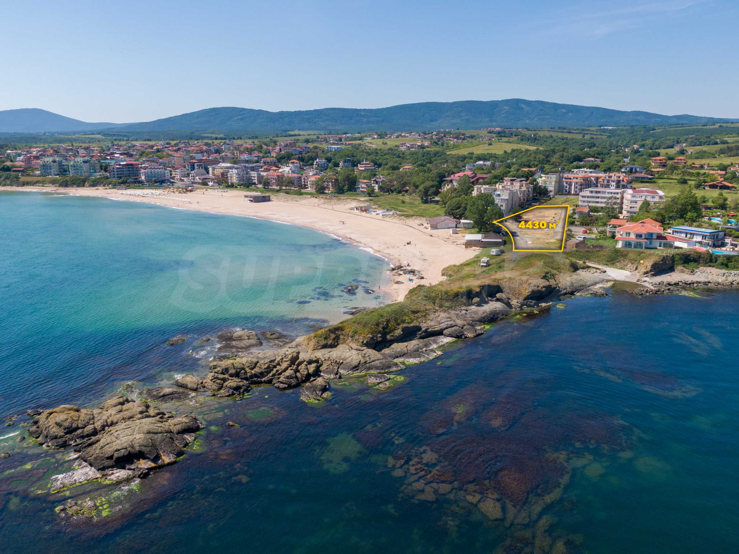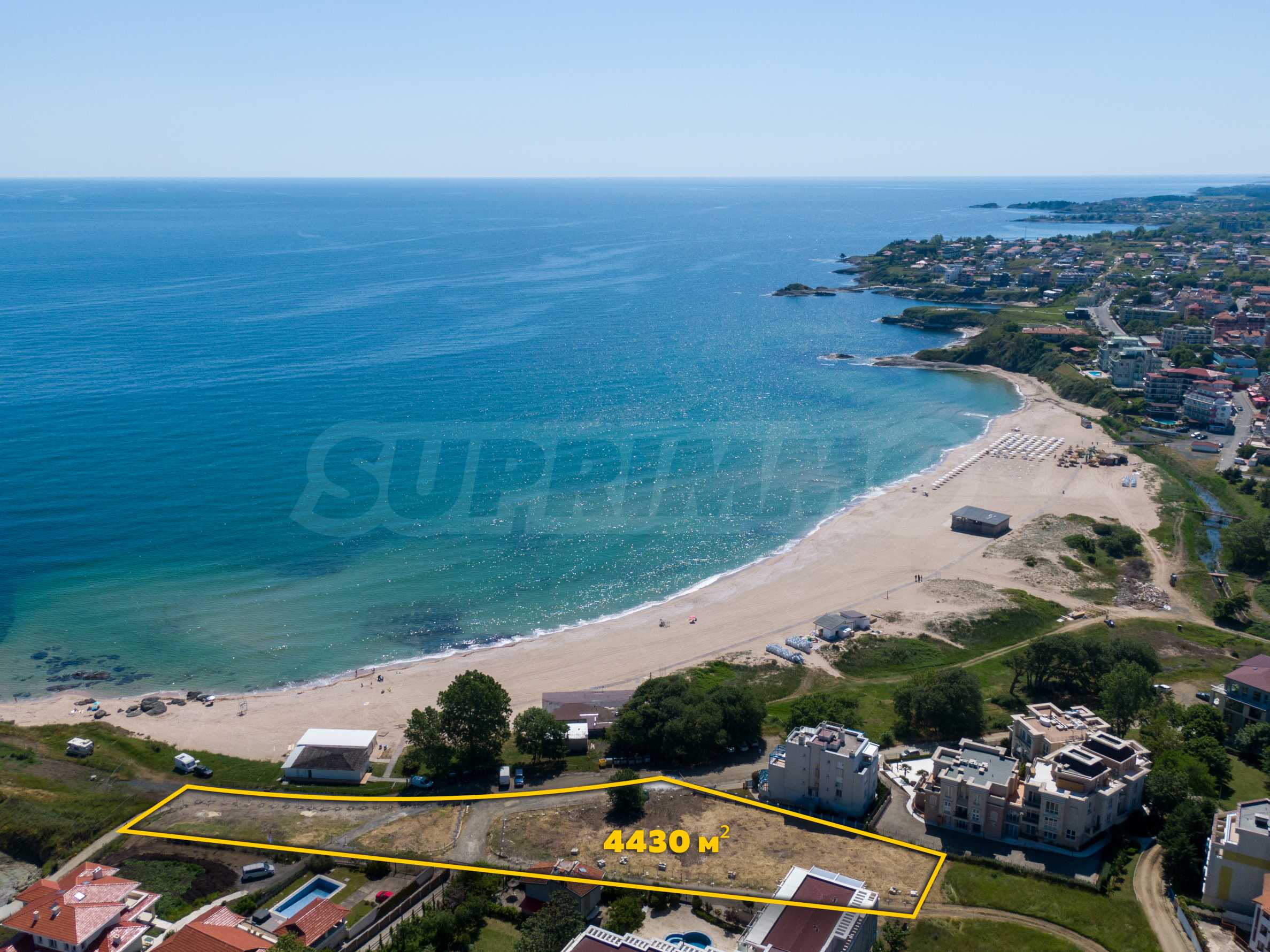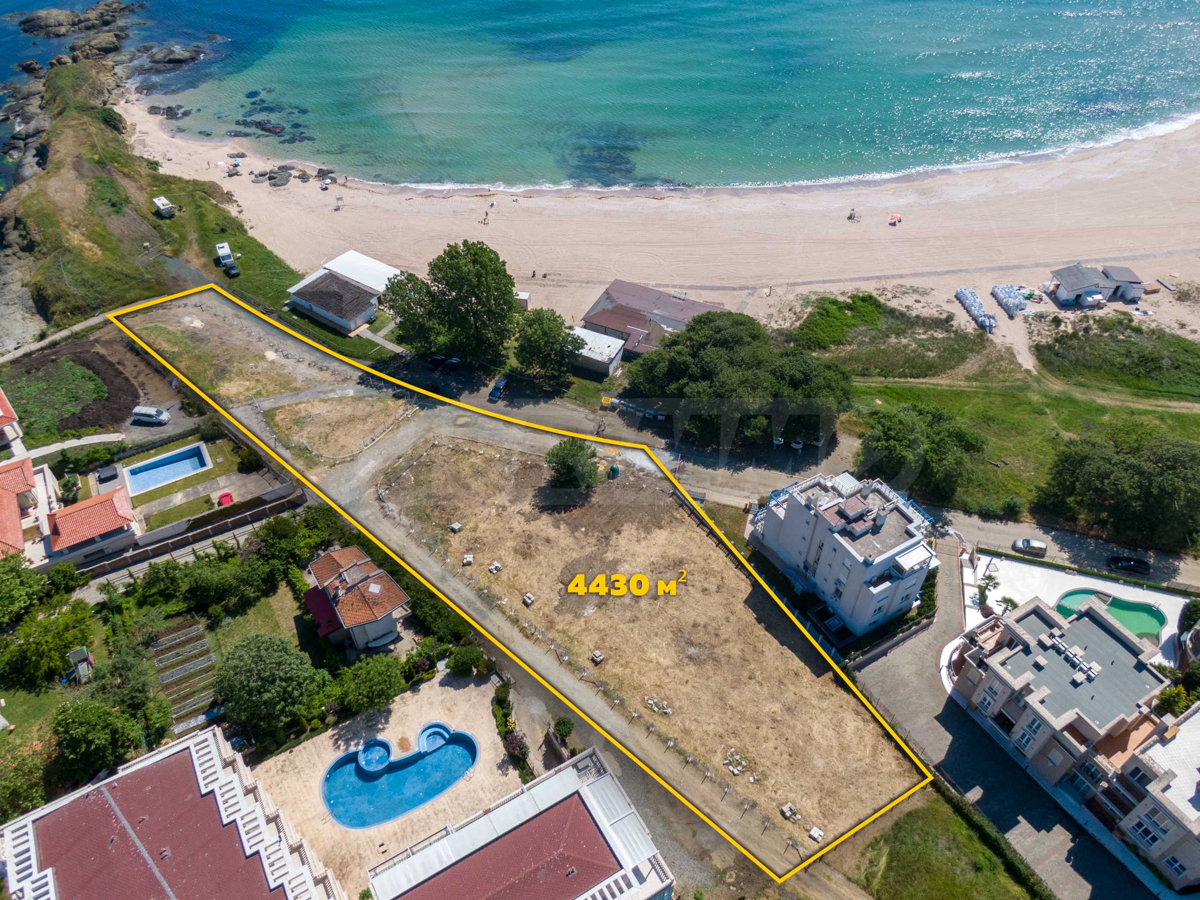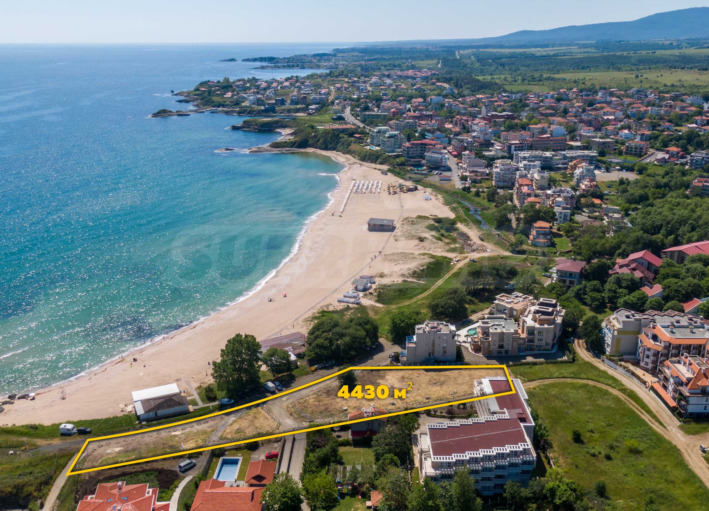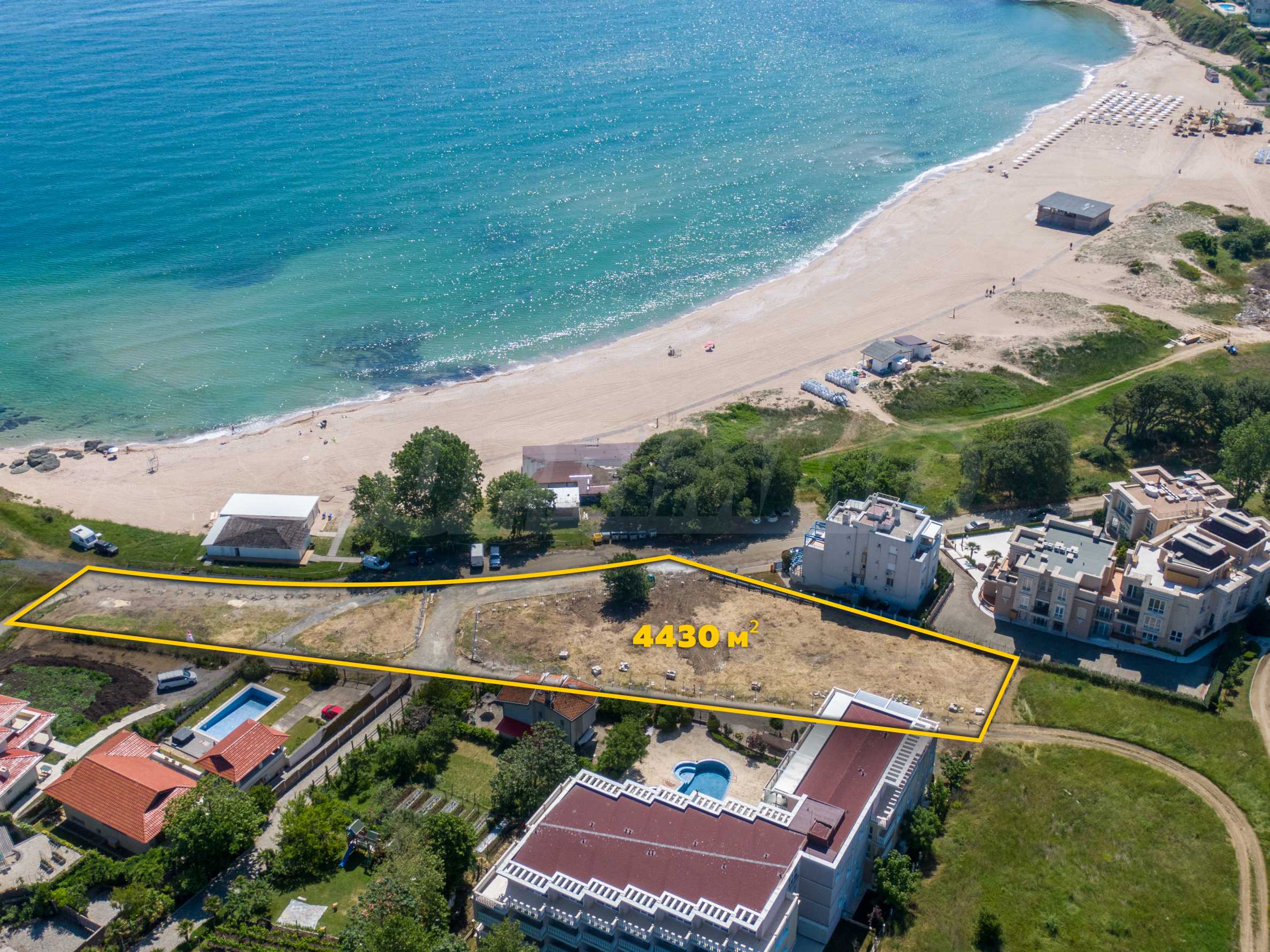 The plot has an area of 4431 sq.m. and occupies a strip with frontage on the beachfront, with a length of about 70 meters, with the last 1/3 of the plot passing on the second line behind the existing residential building. The property has frontal sea views over the beautiful bay of Lozenets and the picturesque rocky Ambelits Cape.