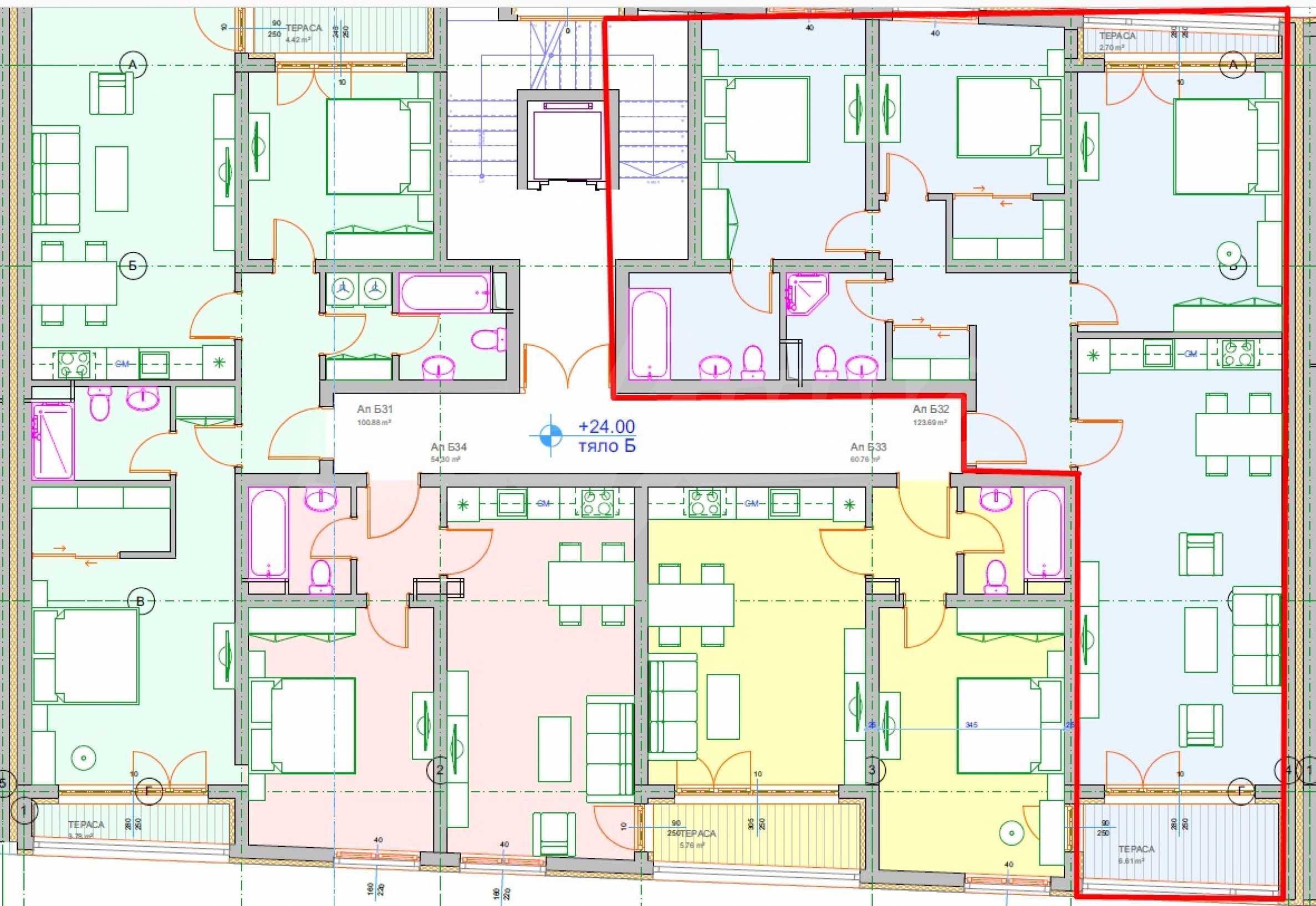 - Body D with 14 residential floors and 66 apartments.