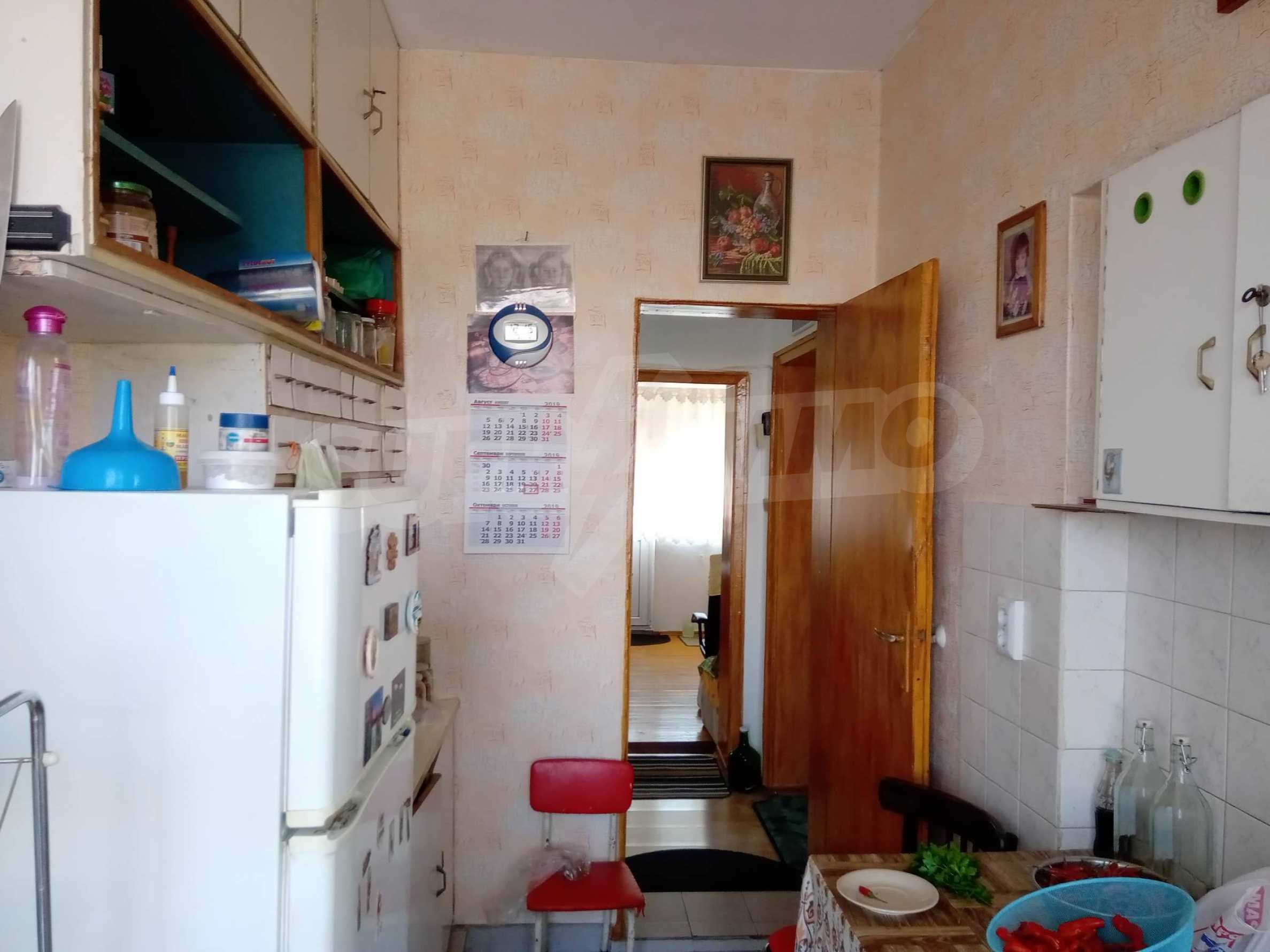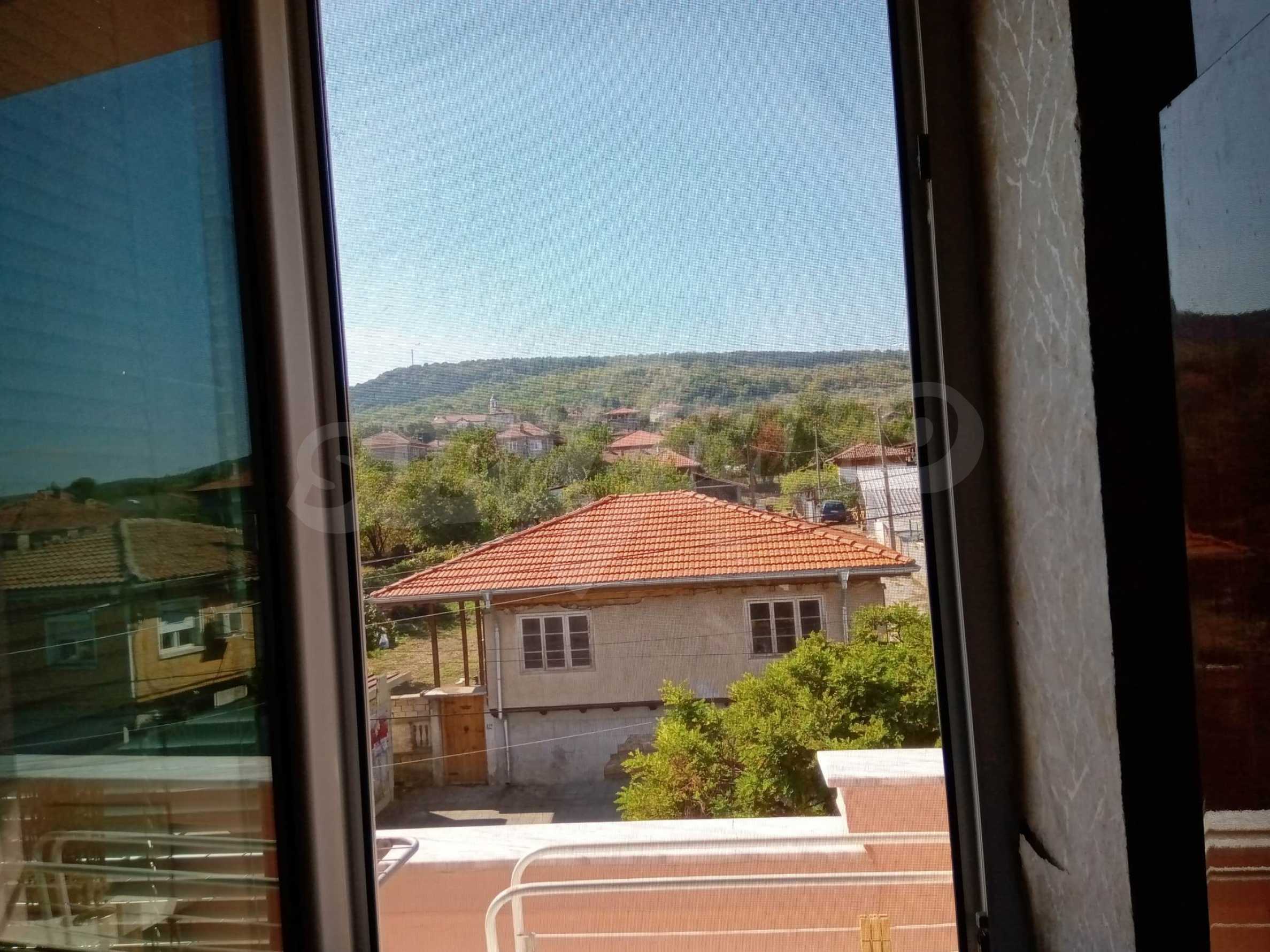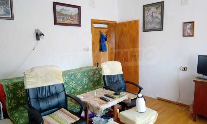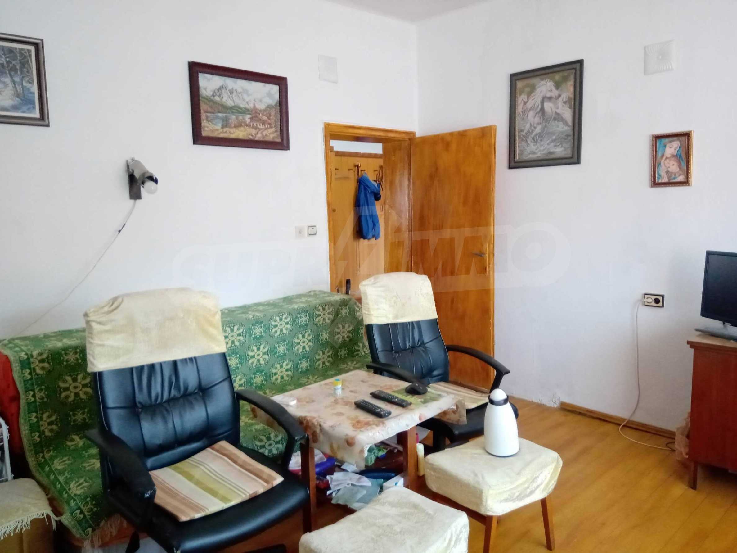 We present for sale a two-bedroom apartment located on the second floor in a private building with four apartments, massive construction. The property is in a very good location with a beautiful panoramic view of the Petropalovo Monastery. The apartment has a living area of 96 m2. It consists of a kitchen with an exit to the terrace, two bedrooms, a living room, a bathroom and a toilet, a corridor, a large terrace south and an attic. The terrace to the kitchen is with tiles, PVC windows, concrete countertop. with electricity, water and a basement. The apartment faces north-east-south. The windows in the property have been replaced with new PVC. External and internal insulation is made. Three-phase current available.
