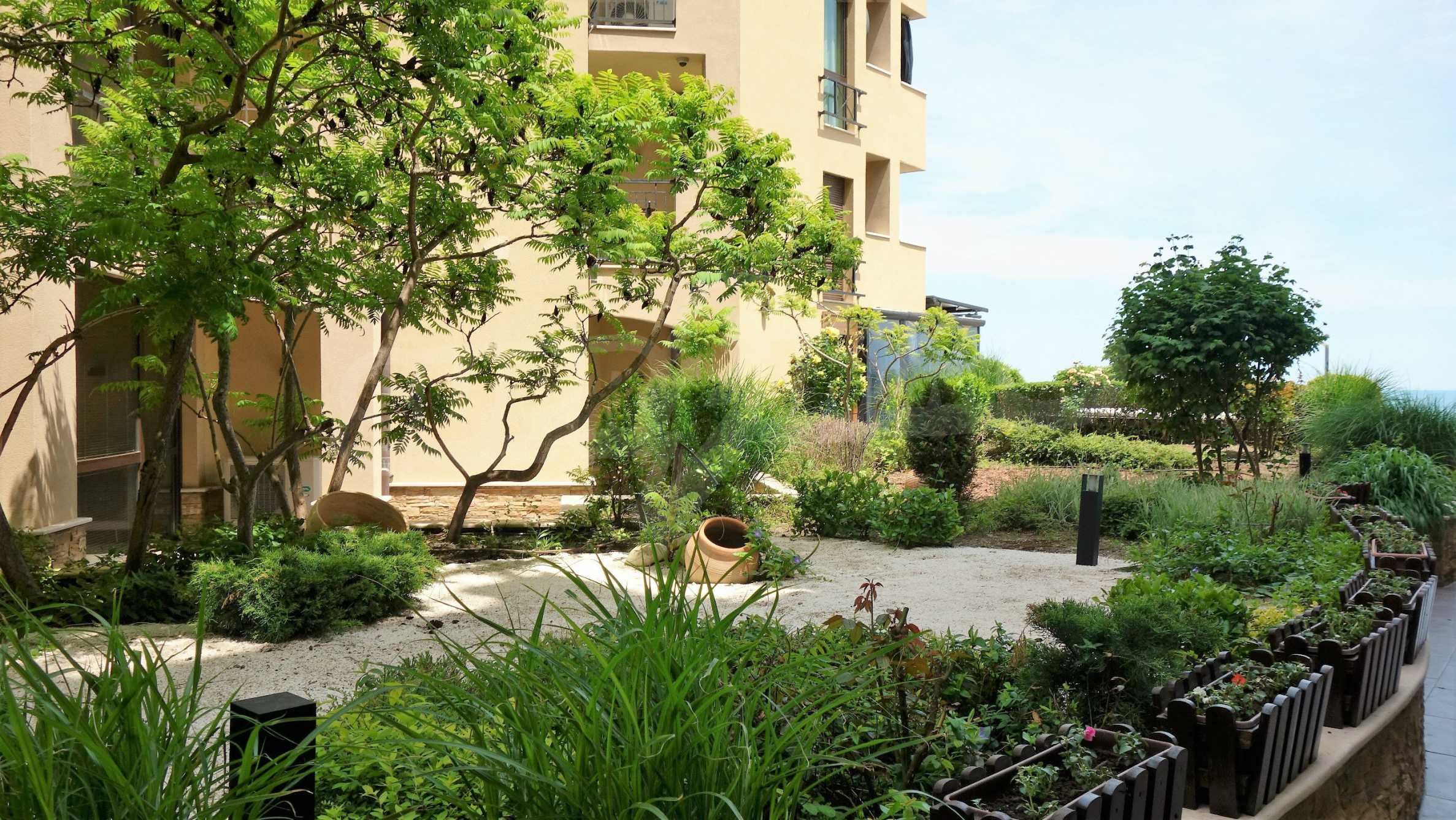 The complex is completely finished and successfully functioning, offering the owners and guests of the property first-rate service and amenities, nice views of the sea and the dunes, easy access to the beach and the necessary infrastructure of the popular resort. The building is surrounded by a green garden, influenced by a unique Japanese style, with 67 plant species and impressive decorative and light effects.