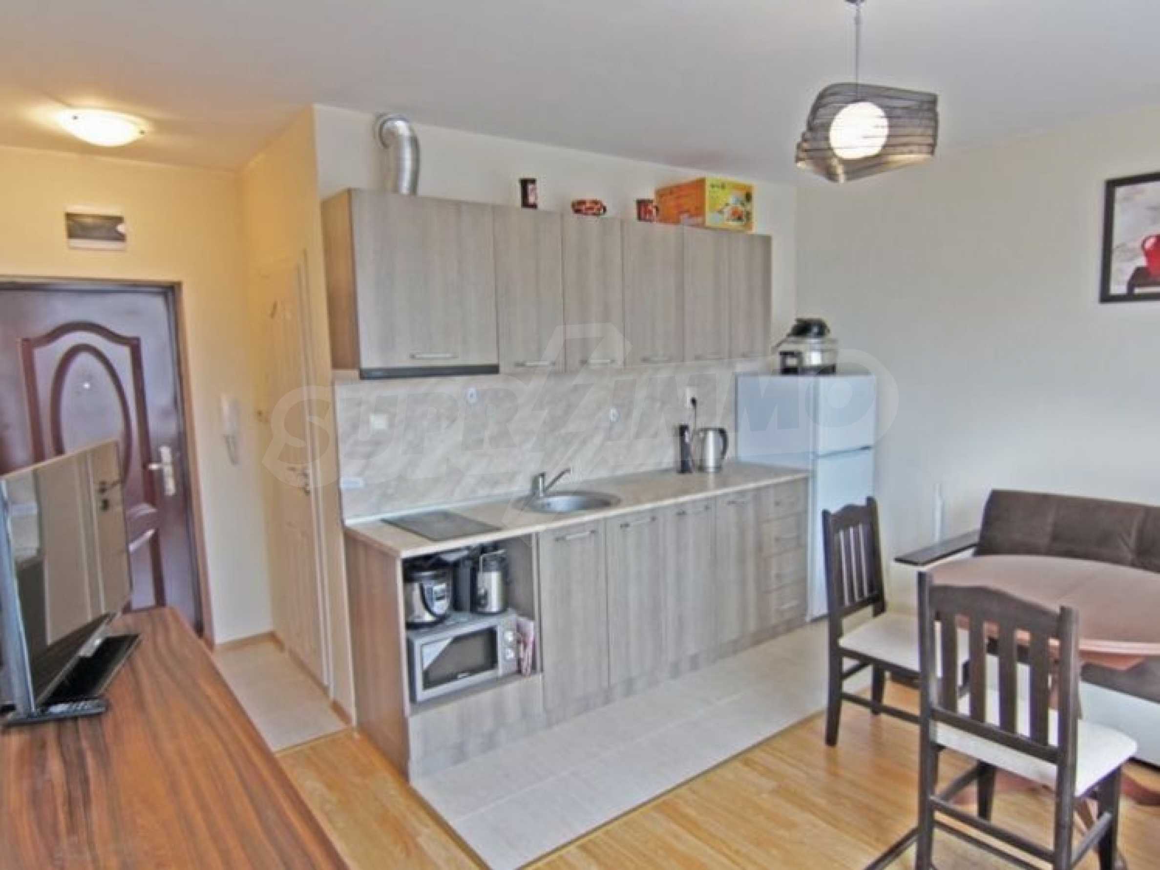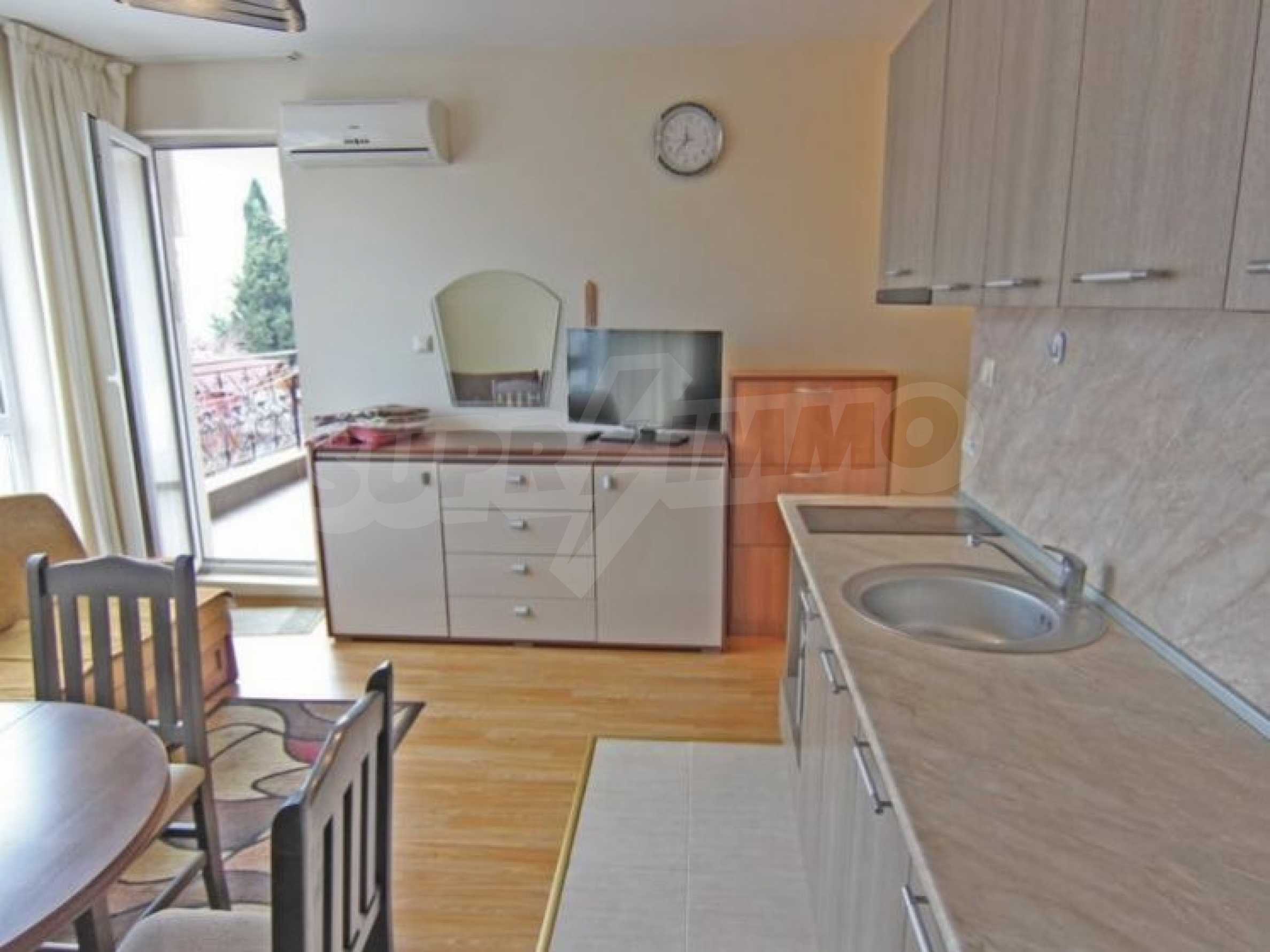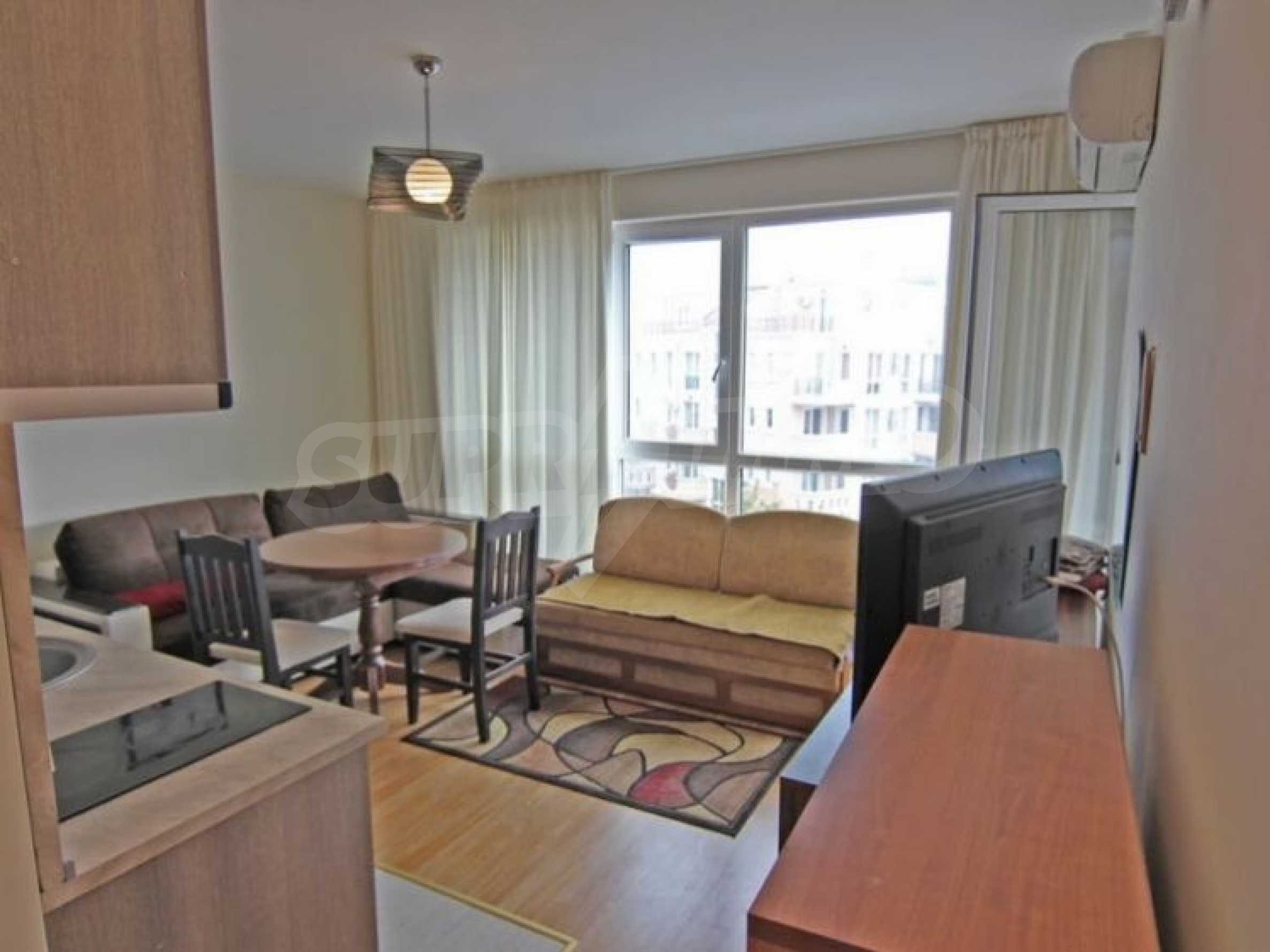 Lovely apartment for permanent residence in Bulgaria! Resale property. We offer for sale a compact one-bedroom apartment located on the fourth floor. Excellent condition: furniture and appliances as new.