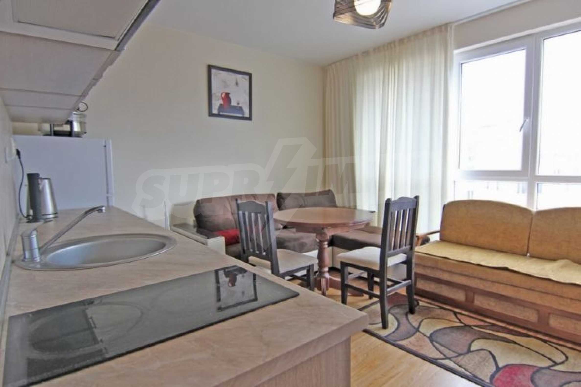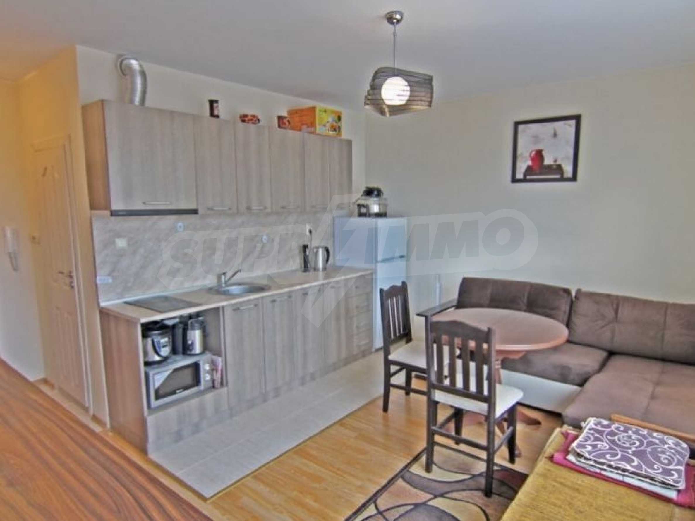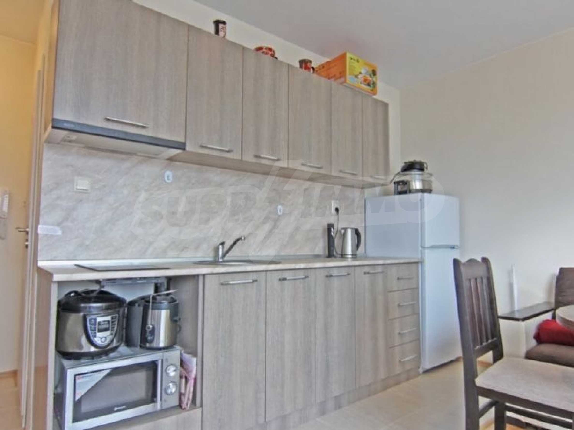 Lovely apartment for permanent residence in Bulgaria! Resale property. We offer for sale a compact one-bedroom apartment located on the fourth floor. Excellent condition: furniture and appliances as new.