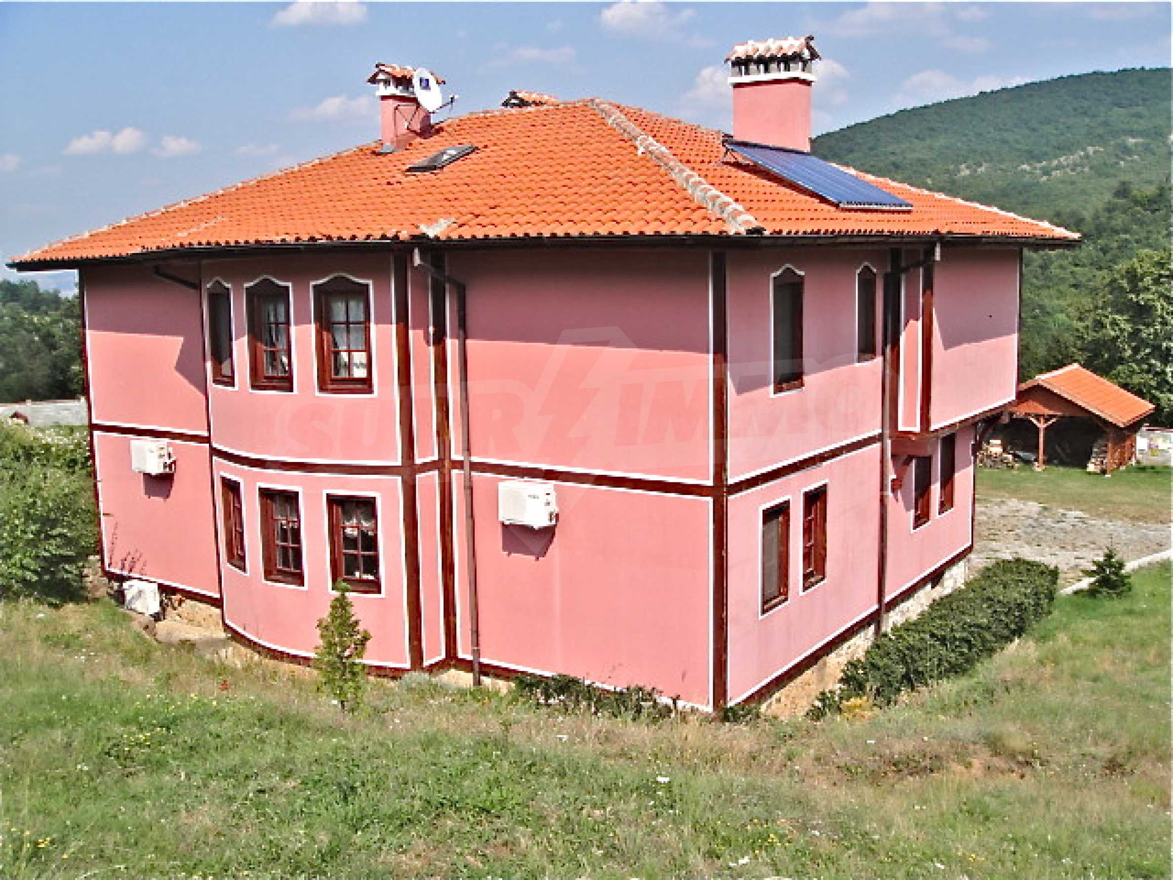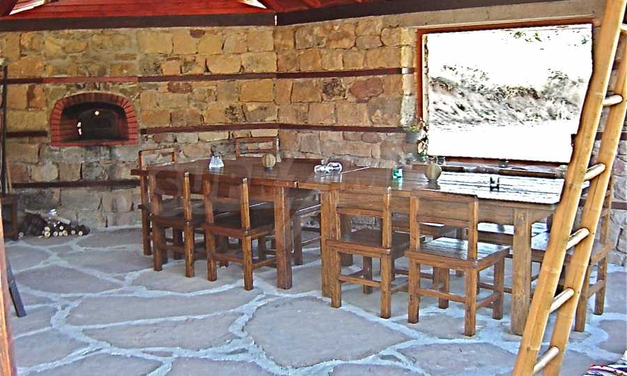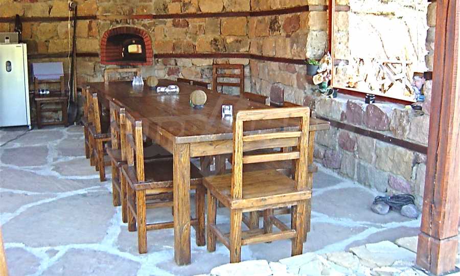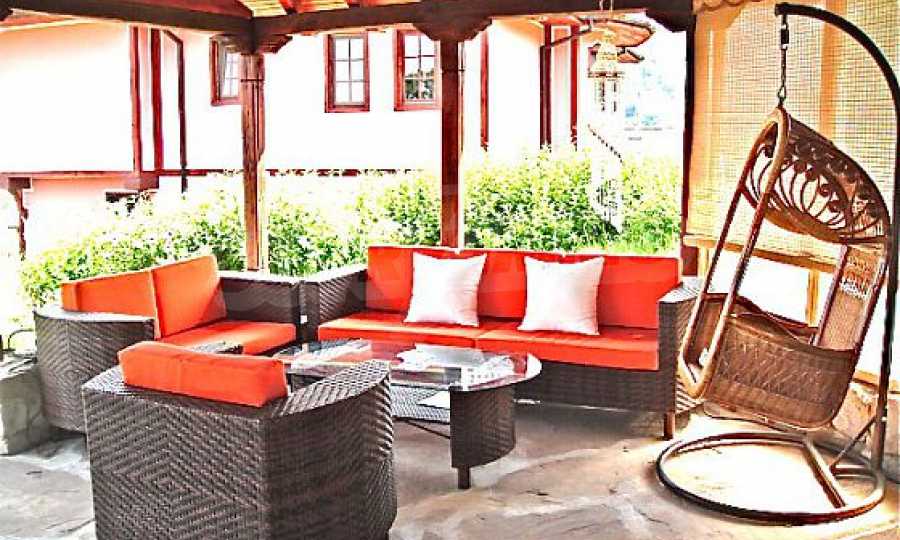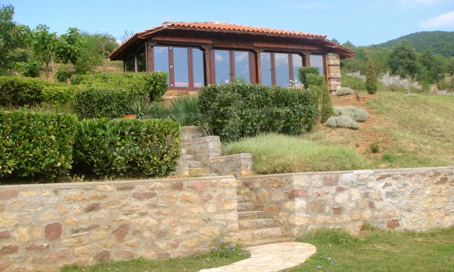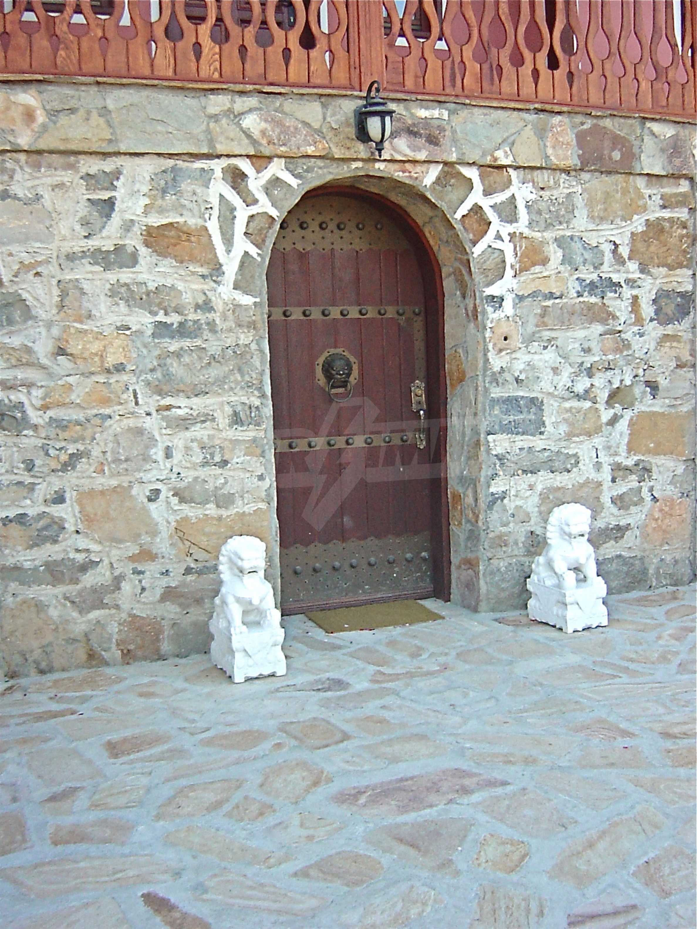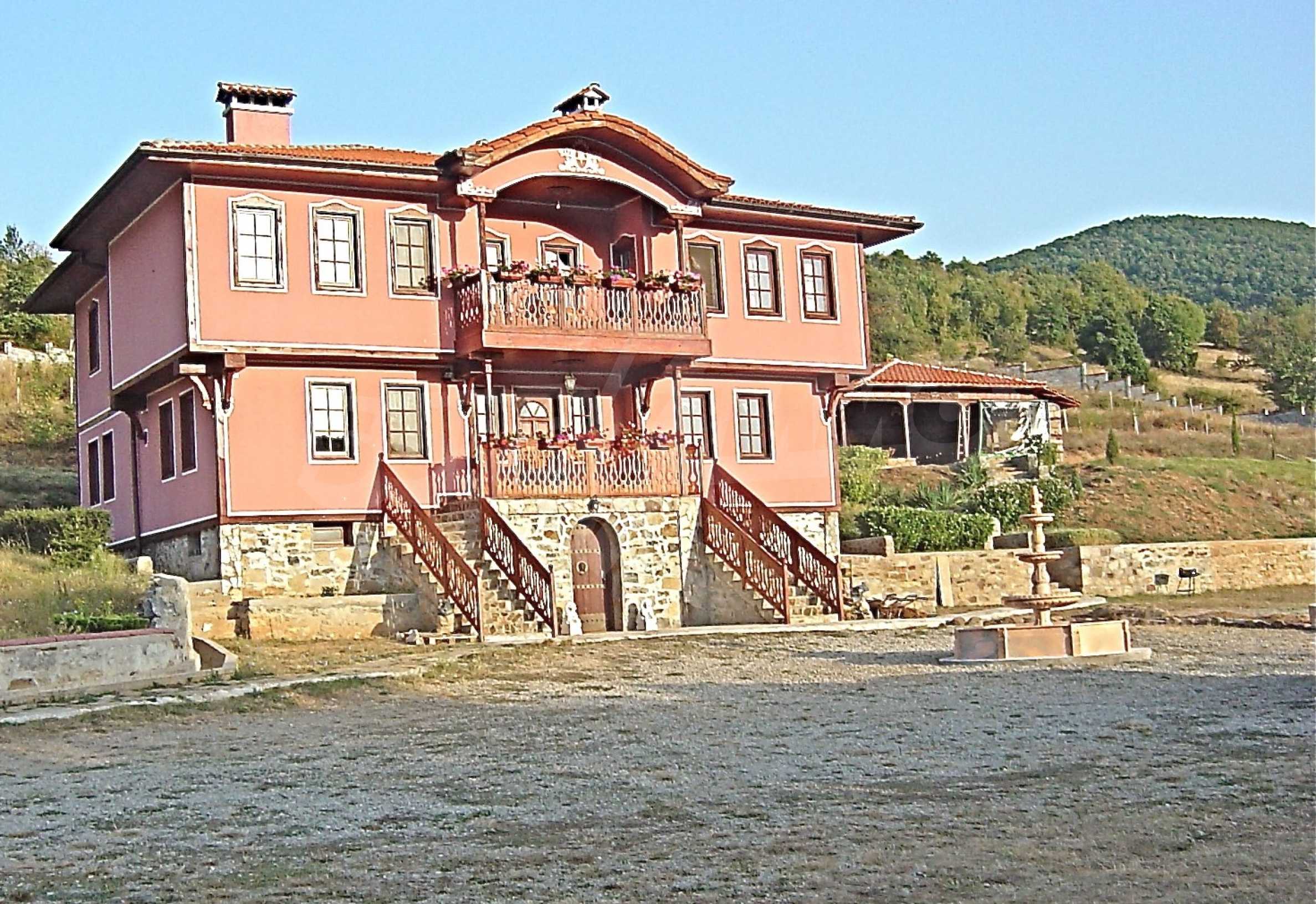 The house is in Bulgarian Revival style on three floors, with total living area of 450 m2. The plot is 10 decares with cement brick fence 180 cm high.