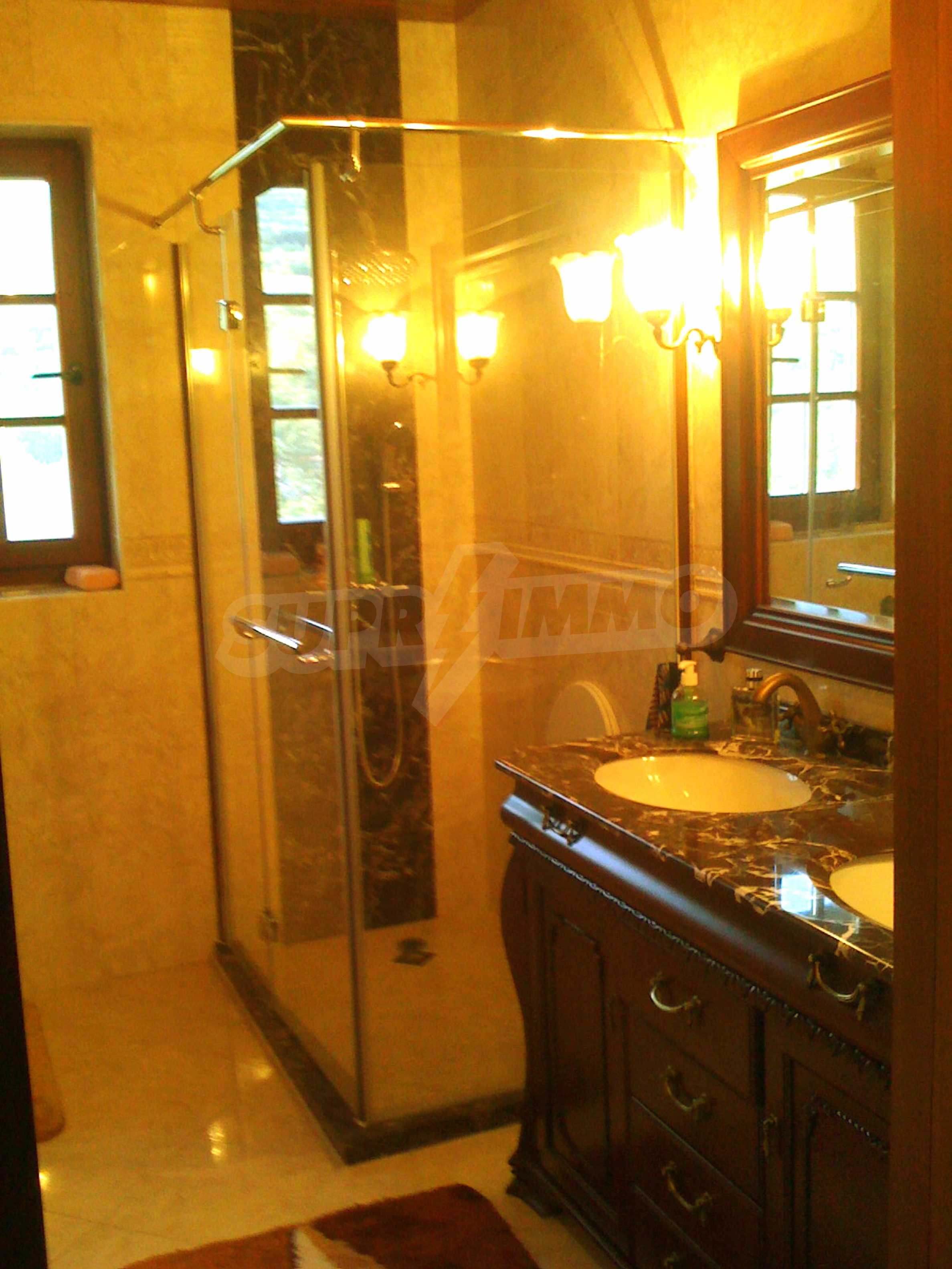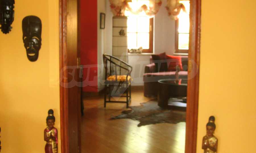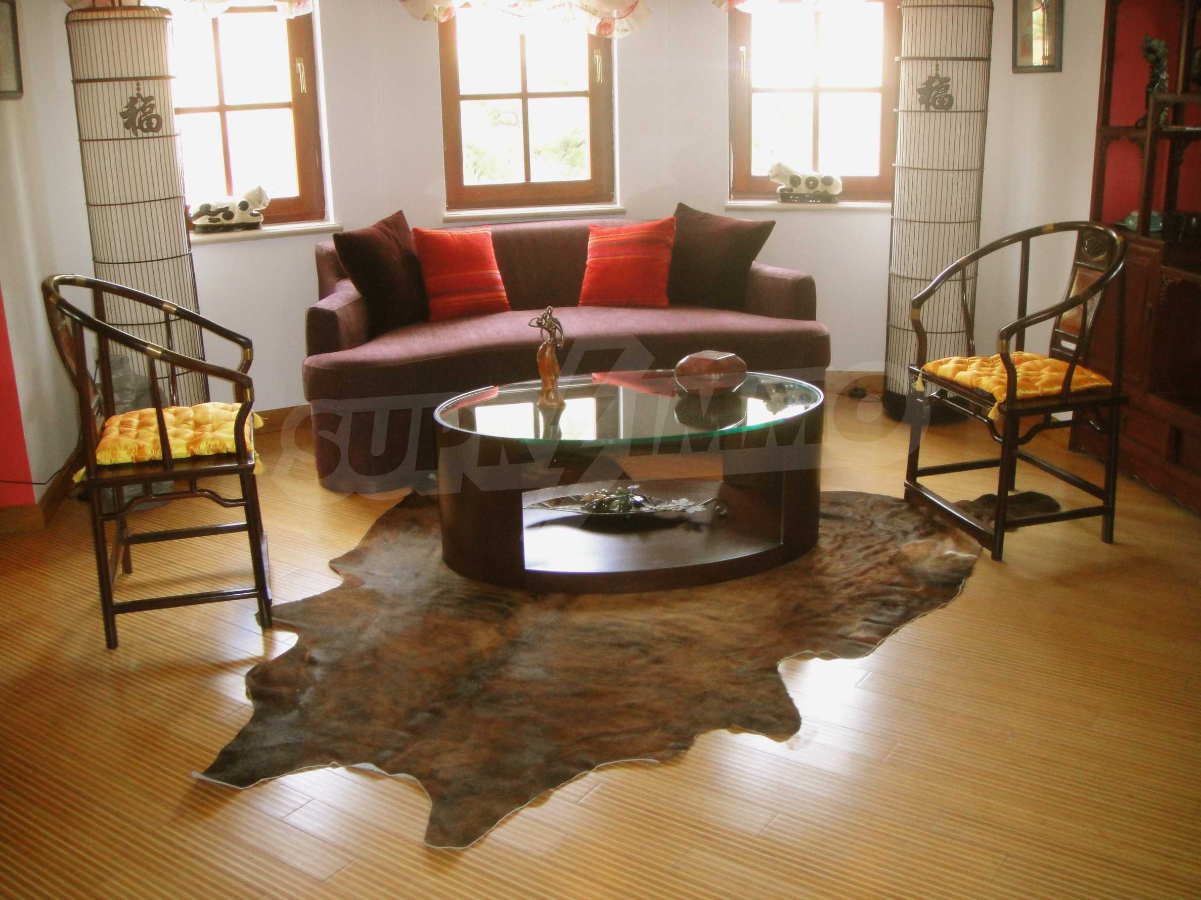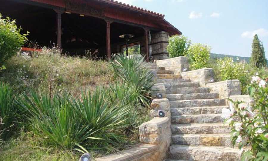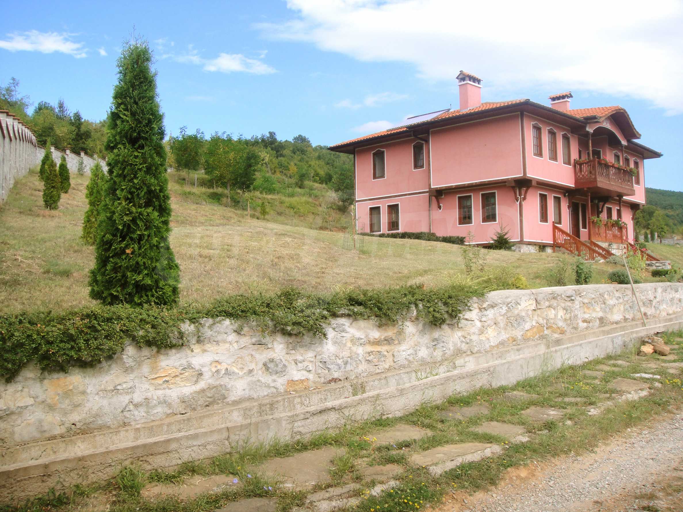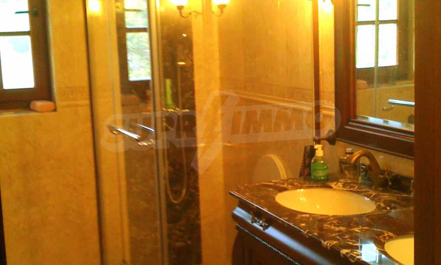 The house is in Bulgarian Revival style on three floors, with total living area of 450 m2. The plot is 10 decares with cement brick fence 180 cm high.