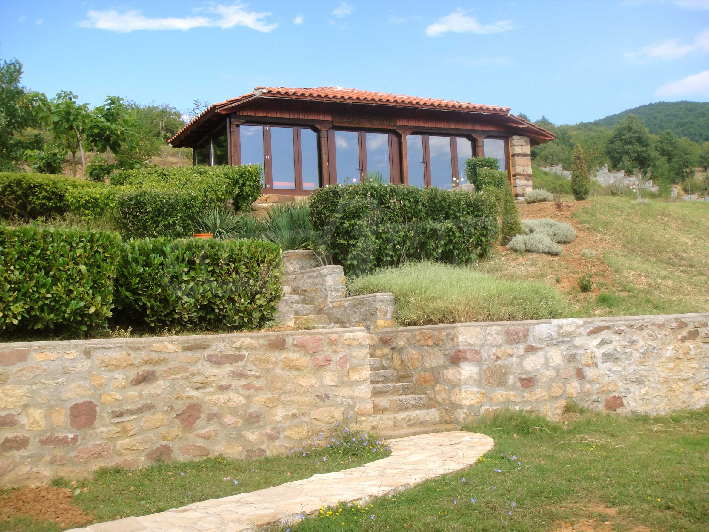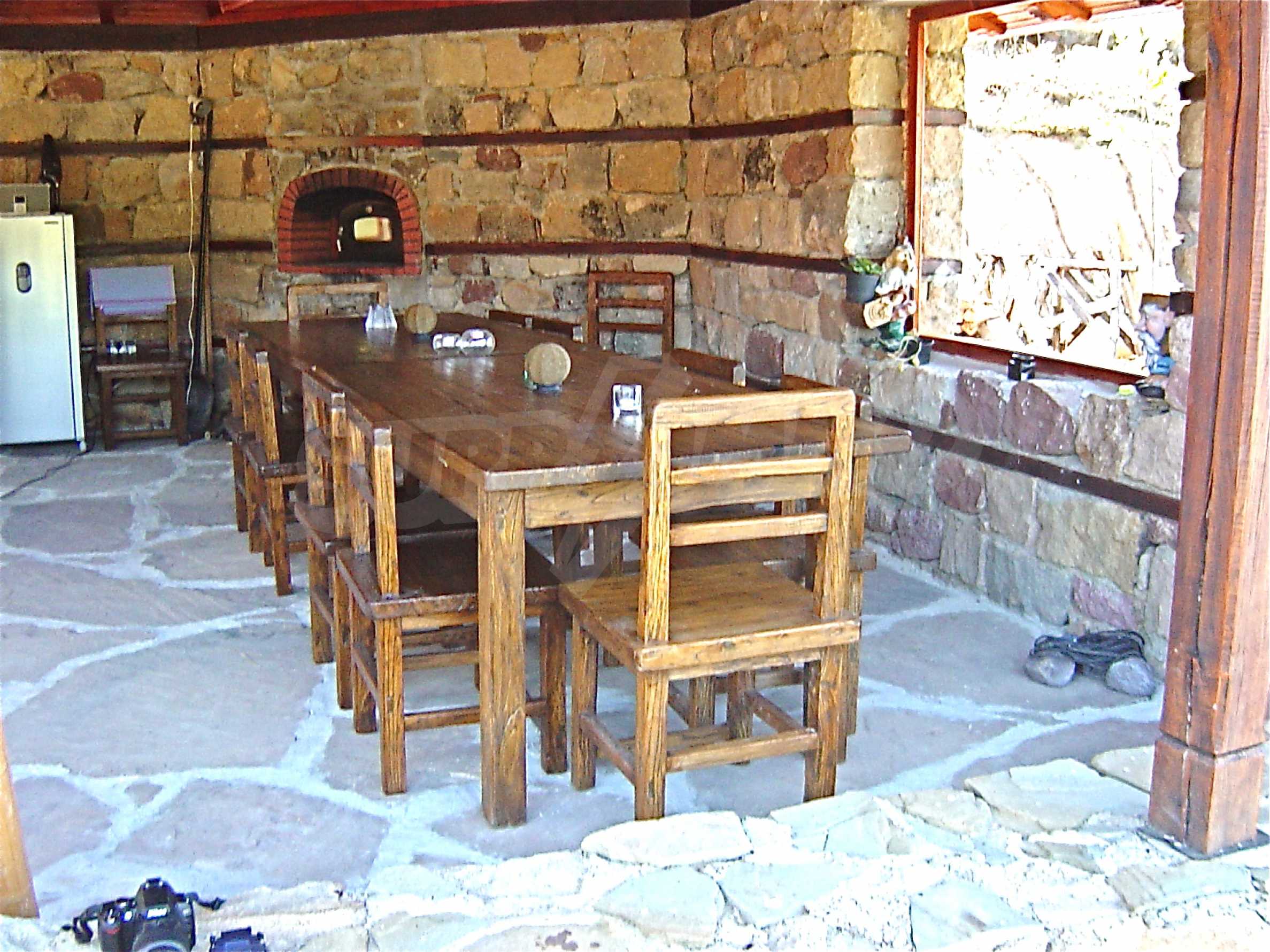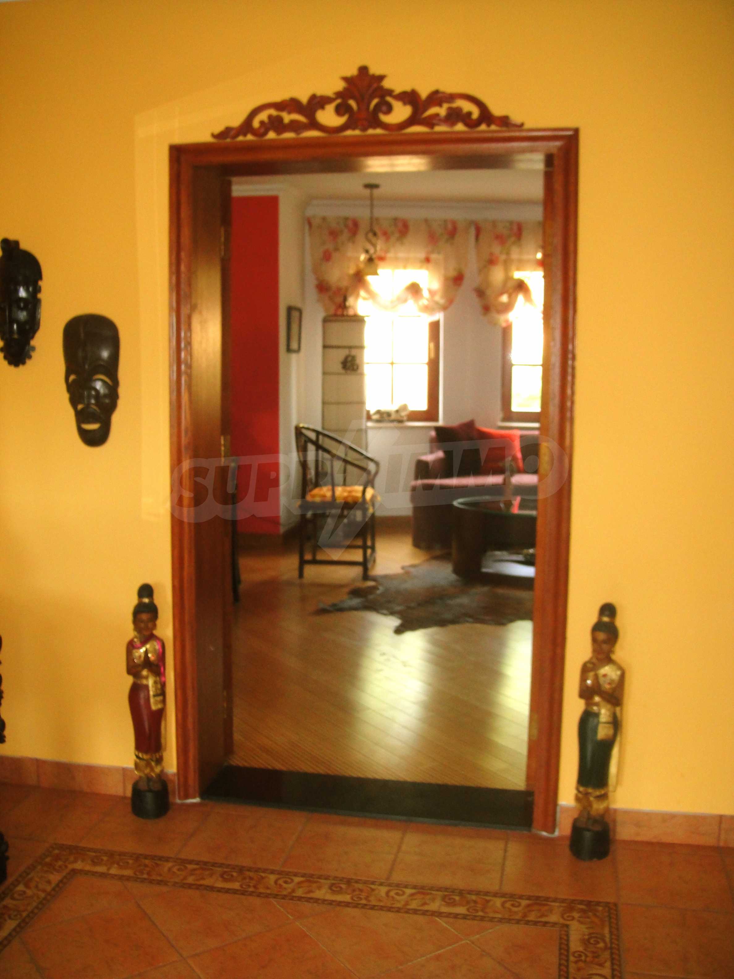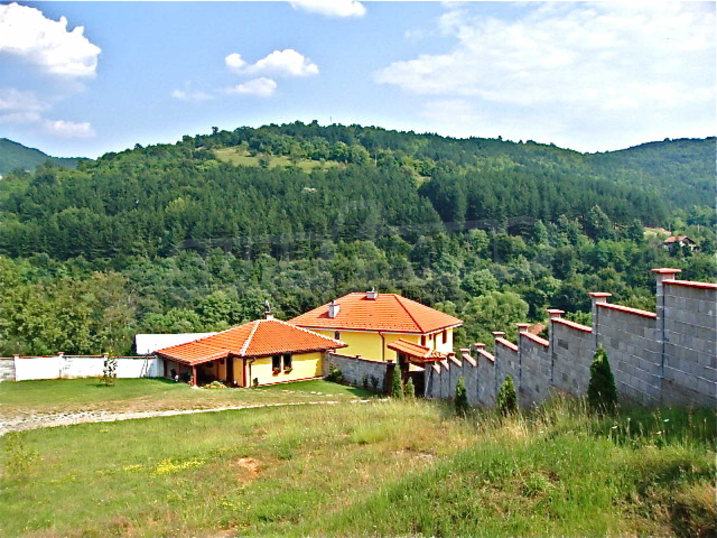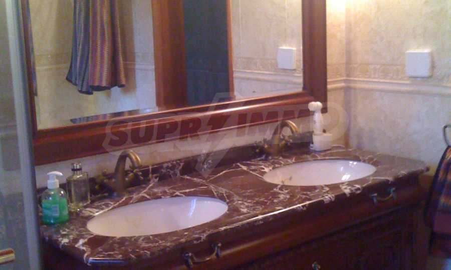 The house is in Bulgarian Revival style on three floors, with total living area of 450 m2. The plot is 10 decares with cement brick fence 180 cm high.