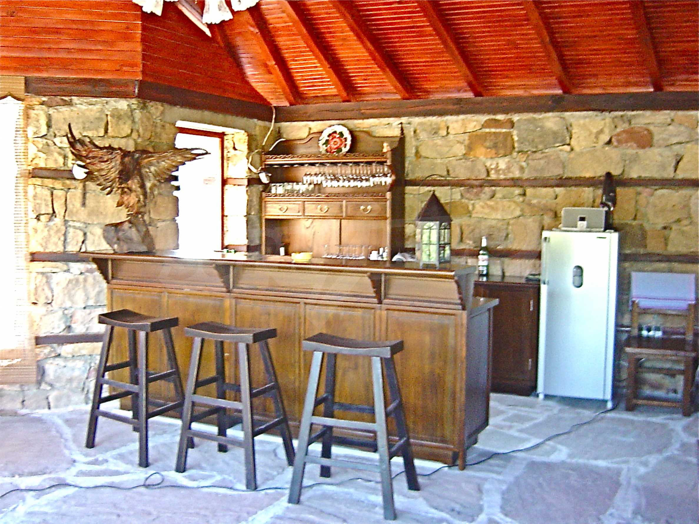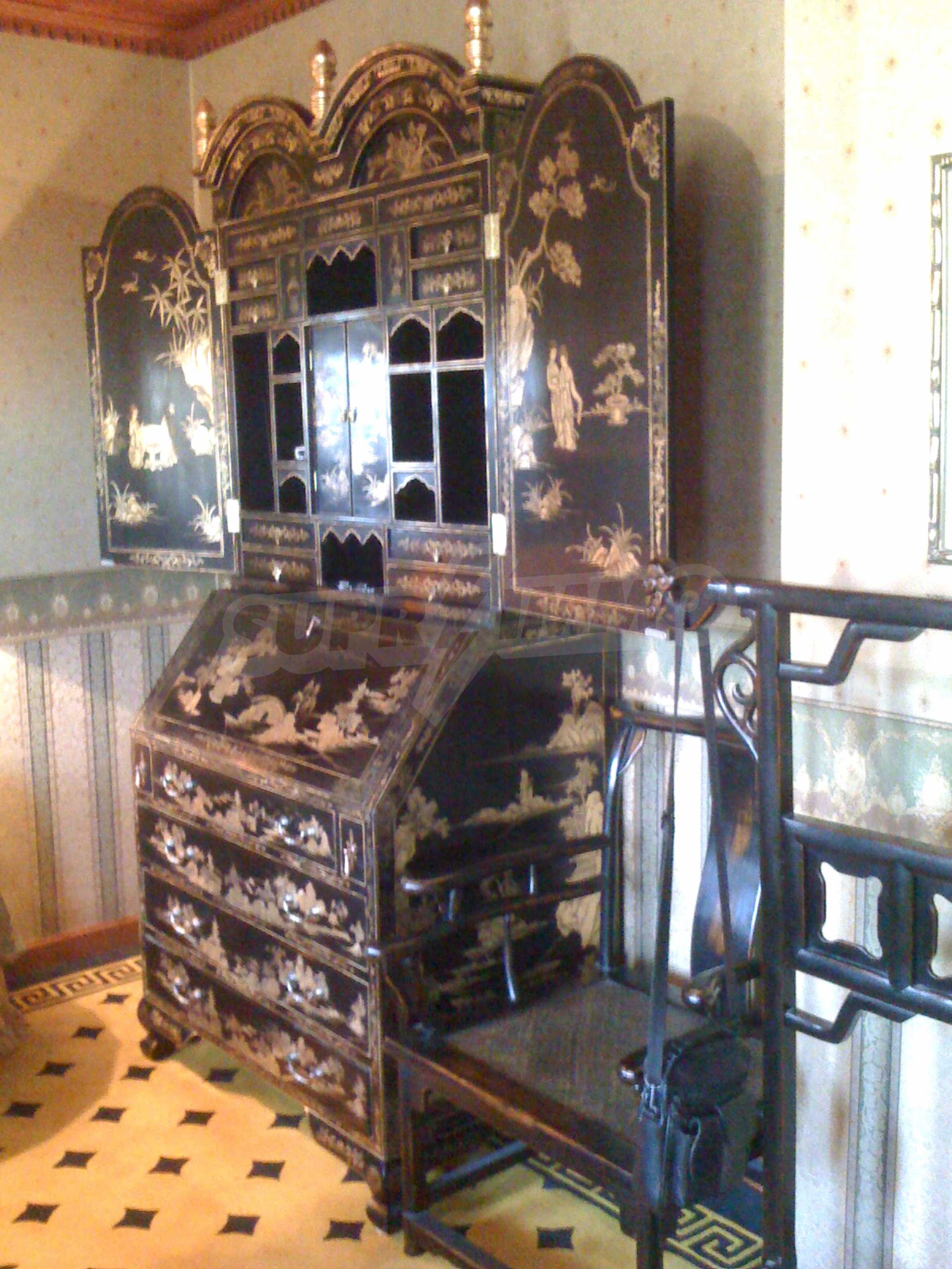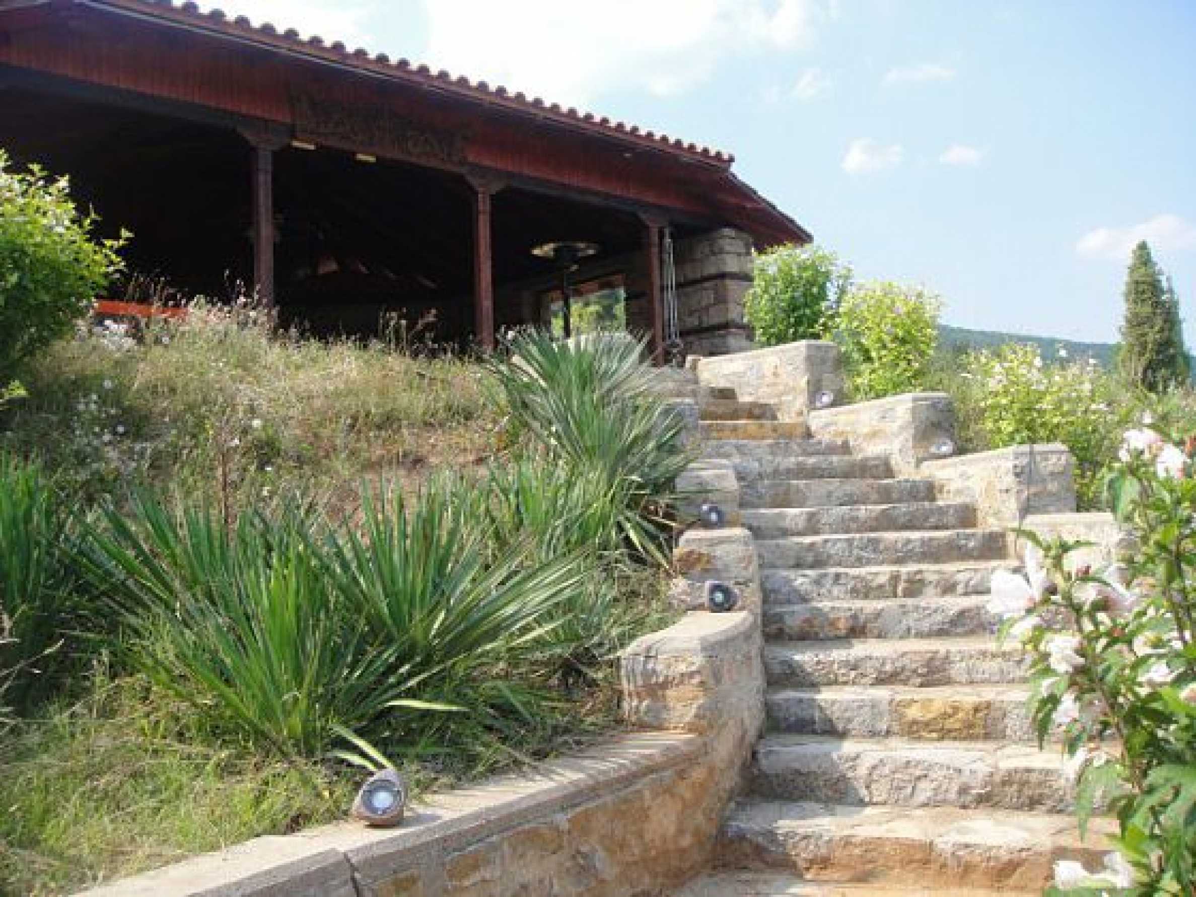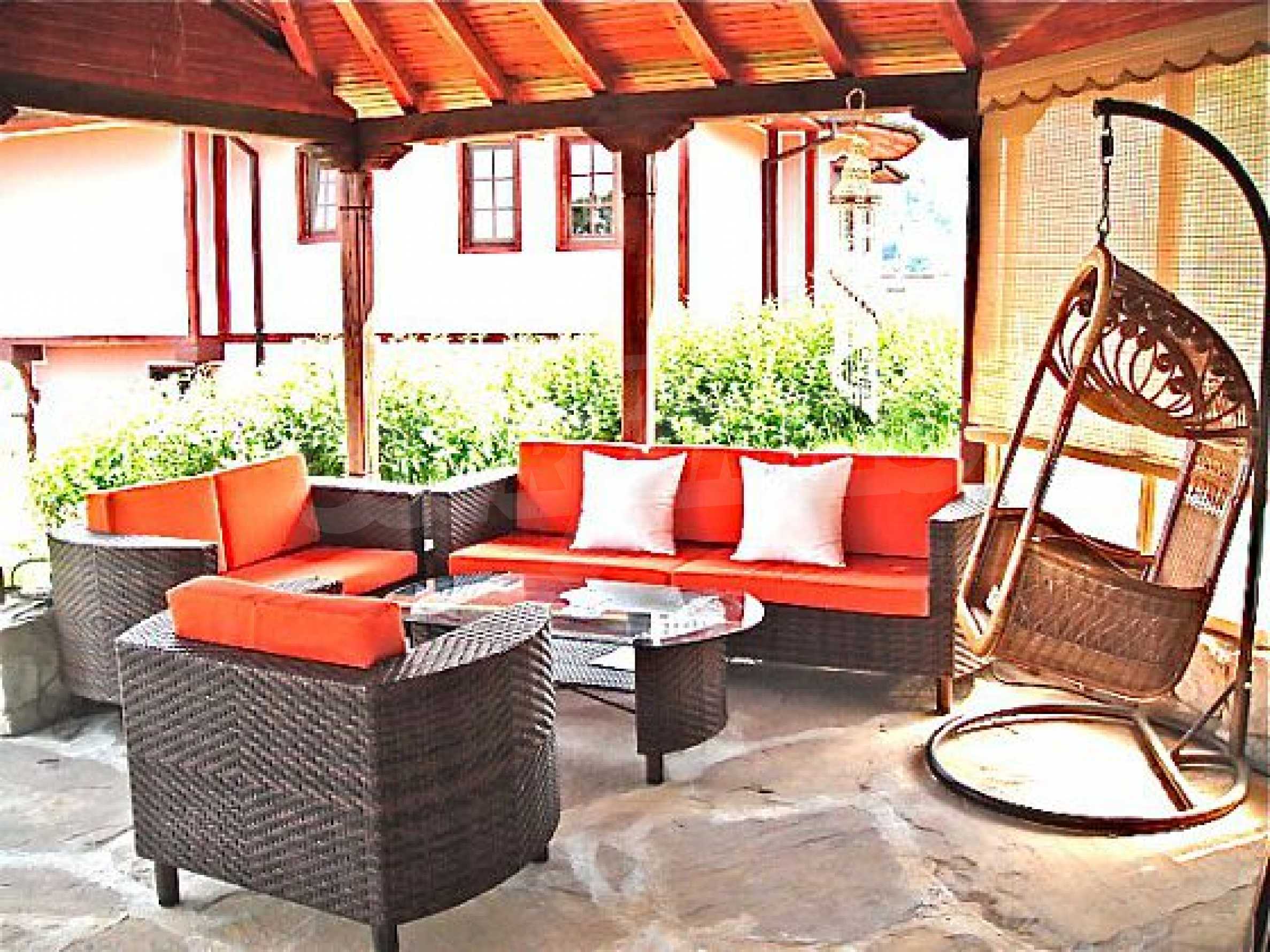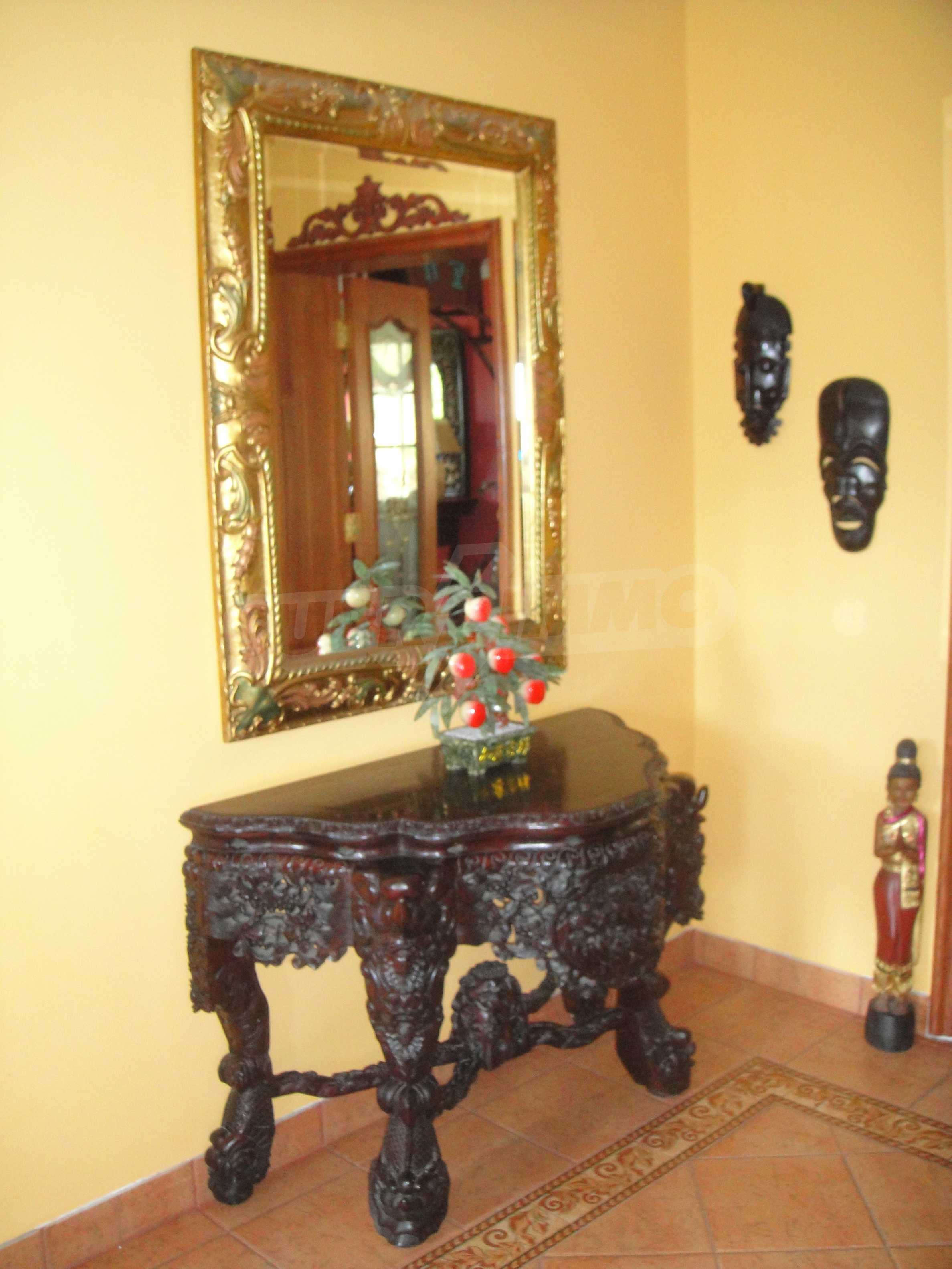 The house is in Bulgarian Revival style on three floors, with total living area of 450 m2. The plot is 10 decares with cement brick fence 180 cm high.