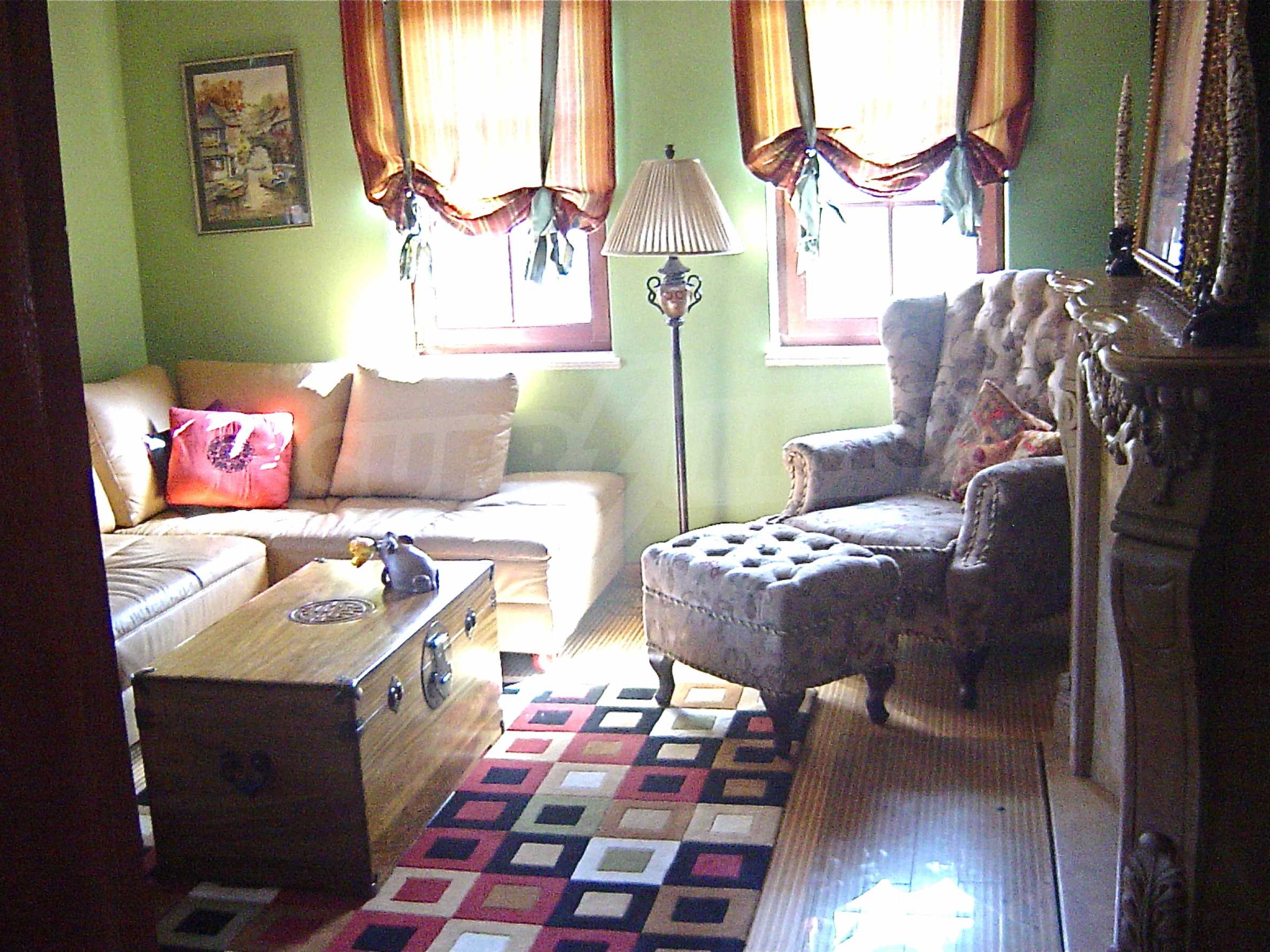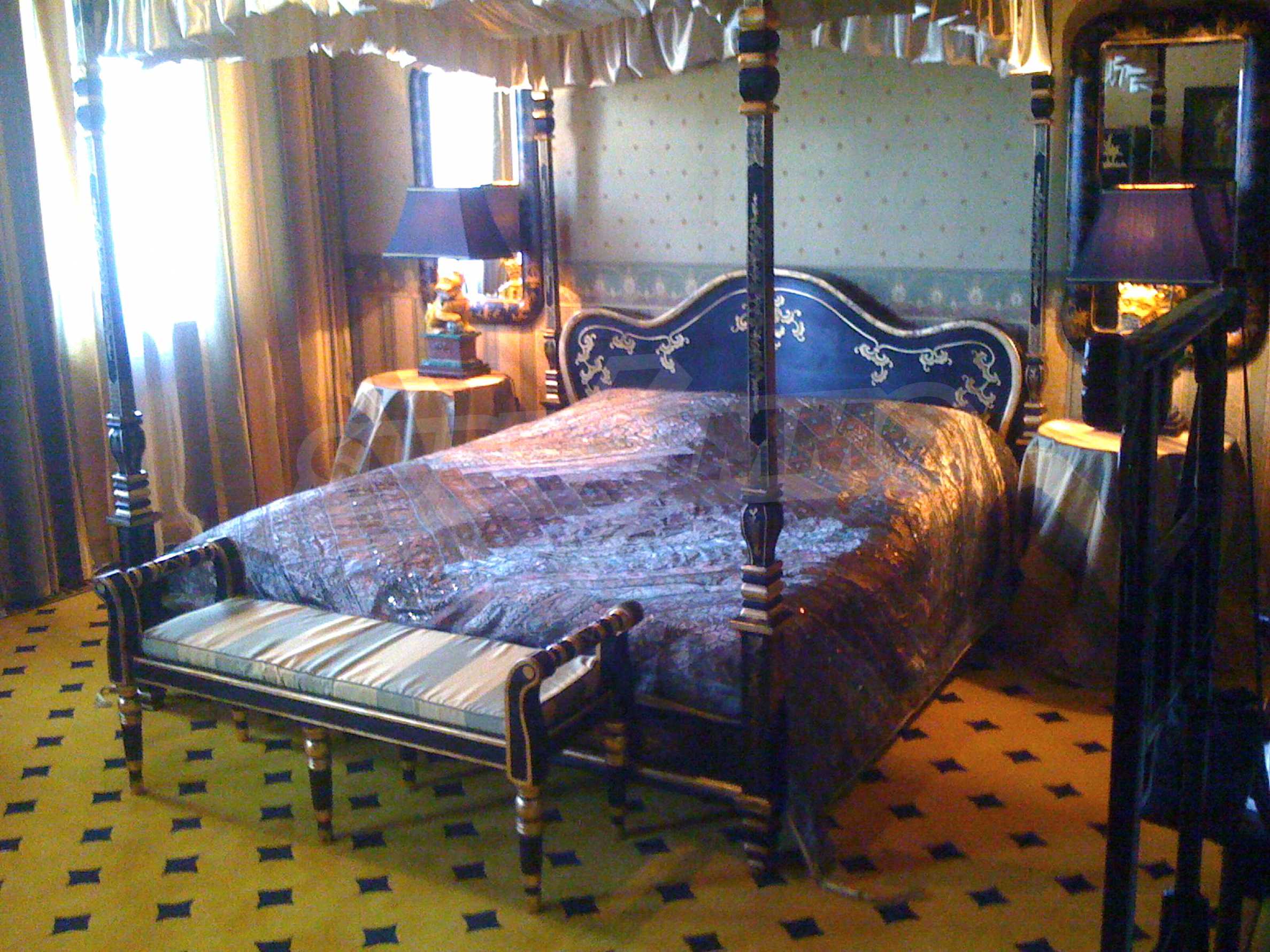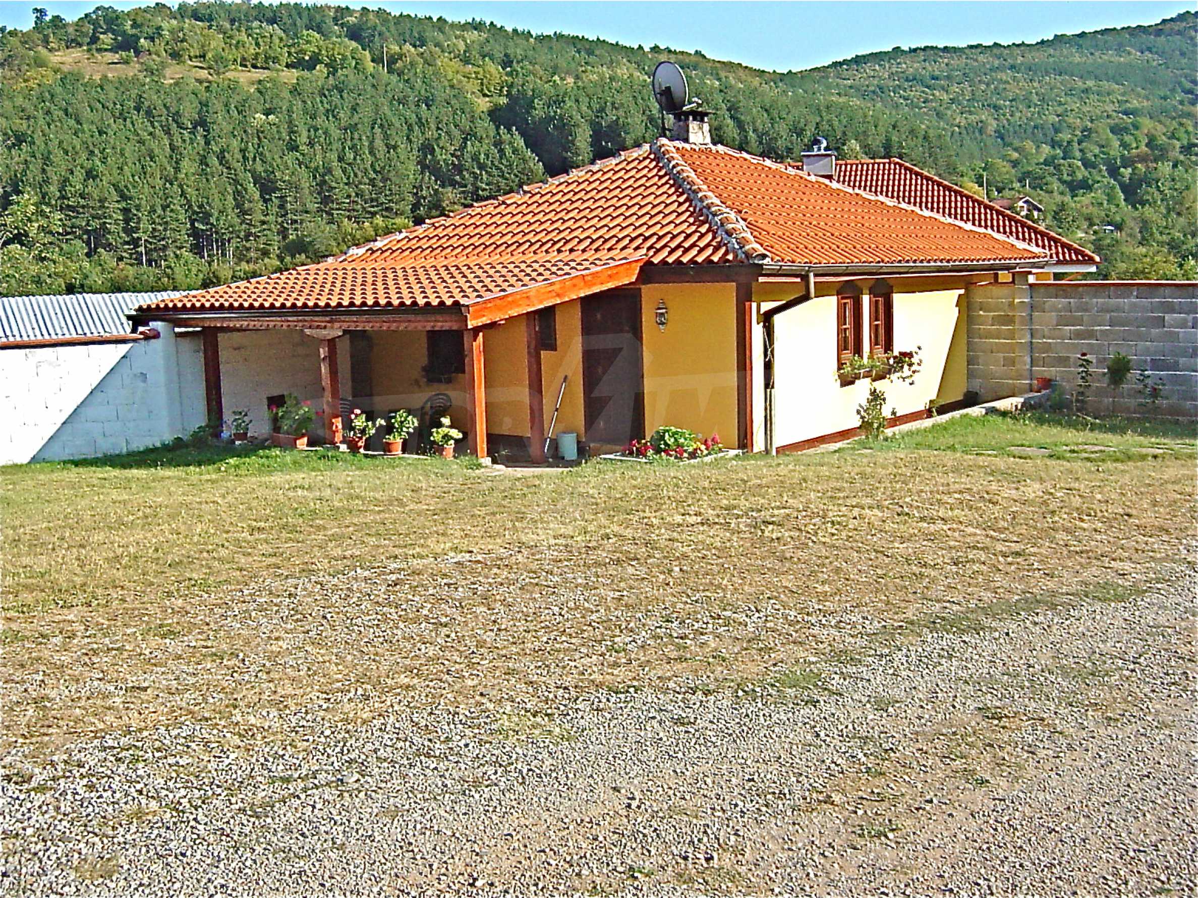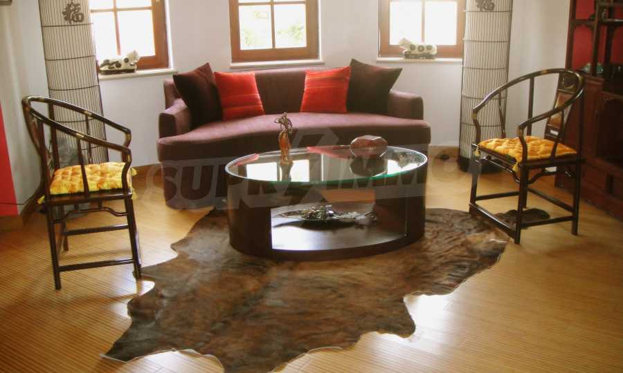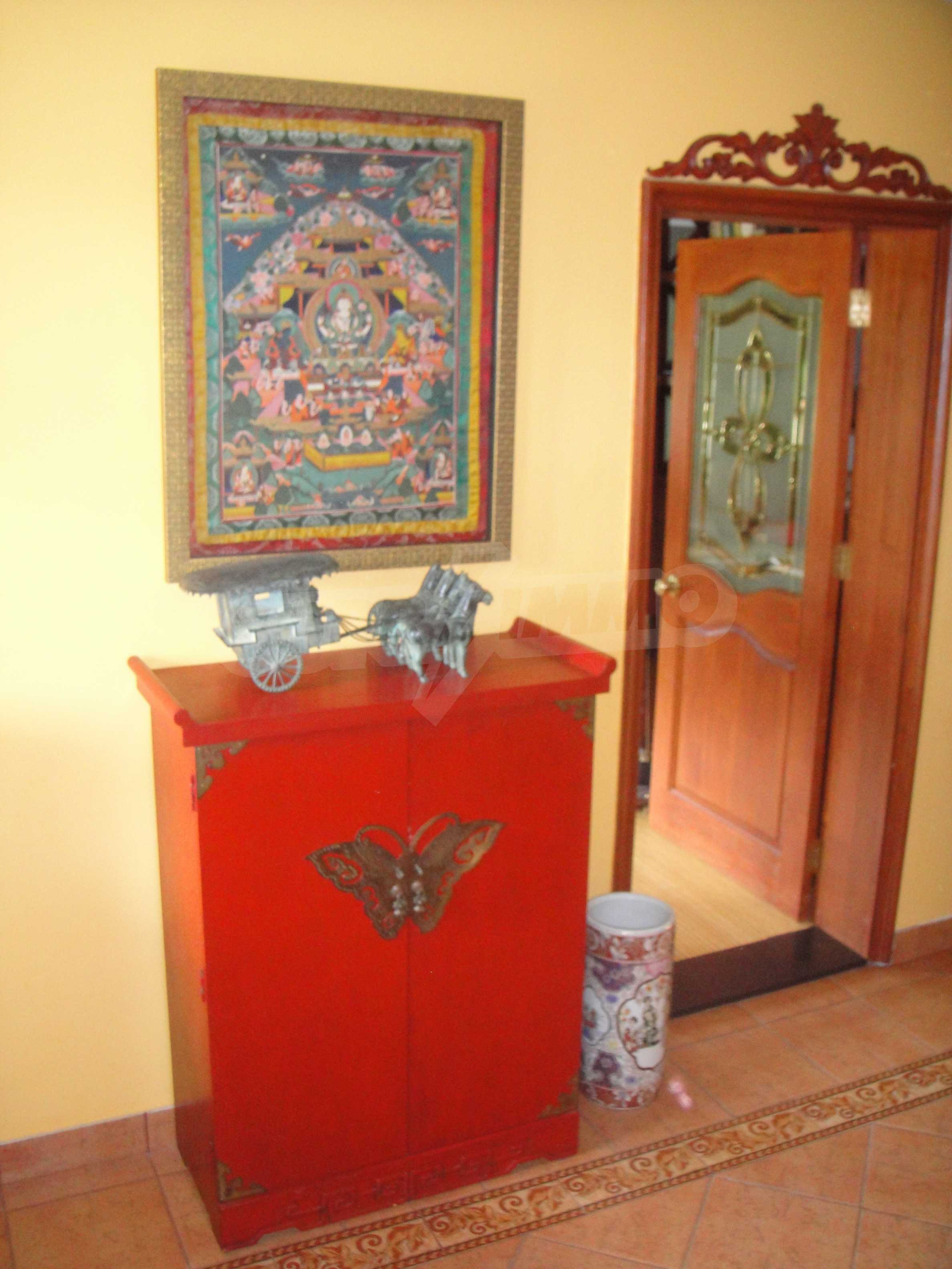 The house is in Bulgarian Revival style on three floors, with total living area of 450 m2. The plot is 10 decares with cement brick fence 180 cm high.