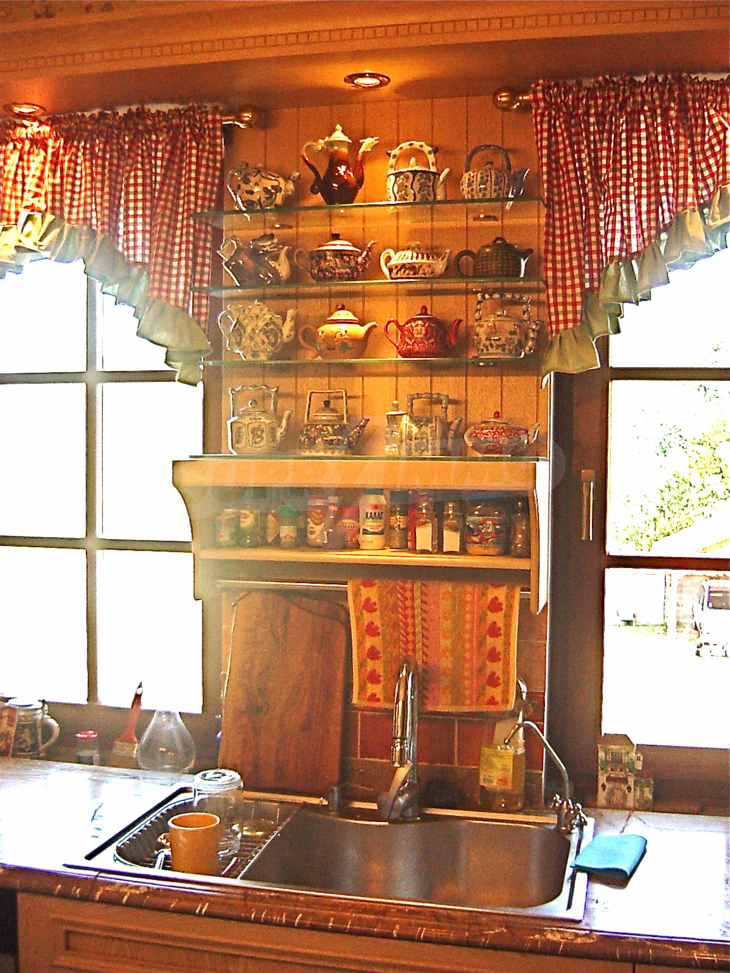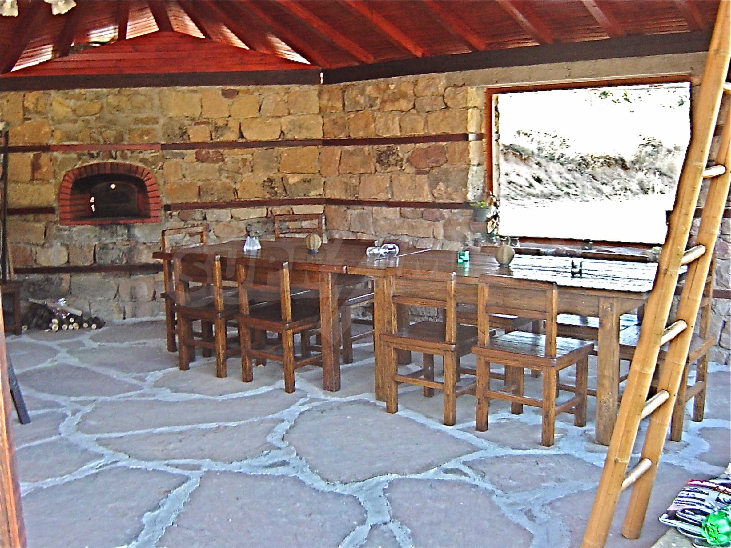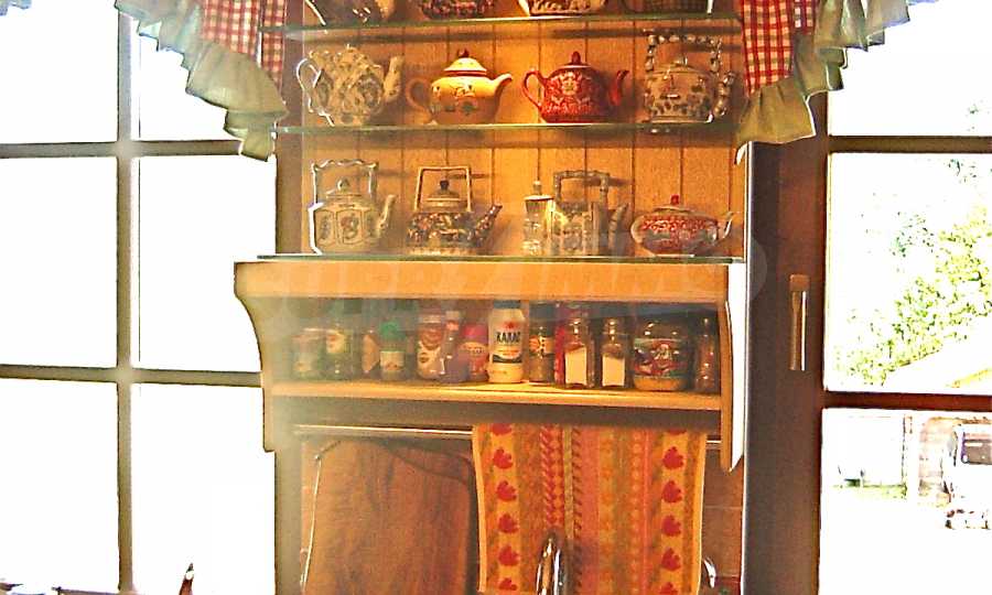 In the basement there is: wine cellar with barrels for wine and brandy, room with 300 liter boilers and washing machine, larger front room with storage for firewood. The windows are made of Indonesian mahogany and the doors are made of Chinese willow (brought from China), very heavy and sturdy wood.