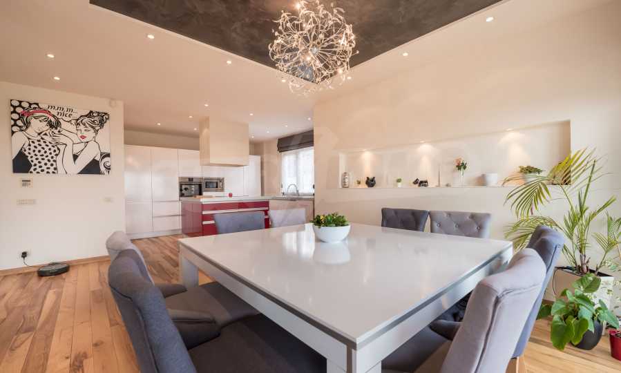 The property is spread over a plot of 900 m2. as it is situated: a two-level house with an area of 260 m2., a summer kitchen of 36 m2. and an underground garage of 120 m2.
