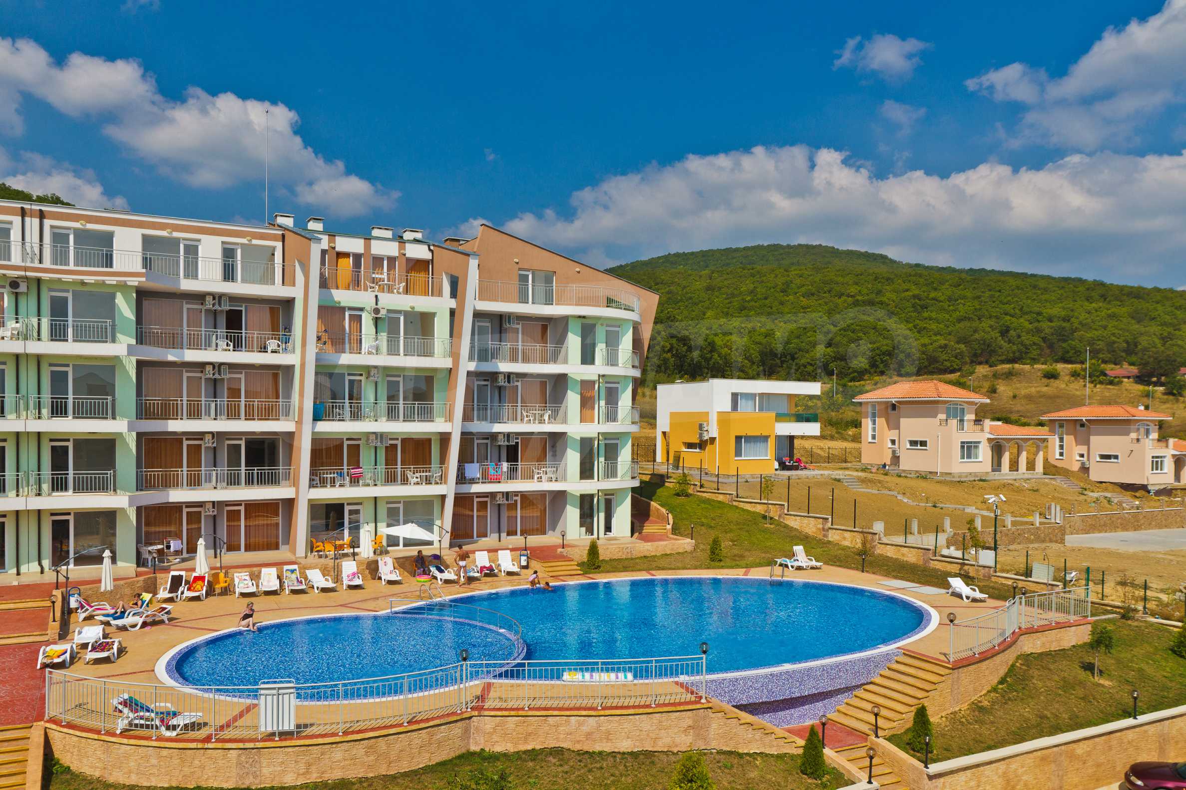 The apartment is part of the popular Sunset Kosharitsa mini-resort in the village of Kosharitsa. It offers swimming pools and first class amenities, and is well located in the green area of the ecological region near Sunny Beach.