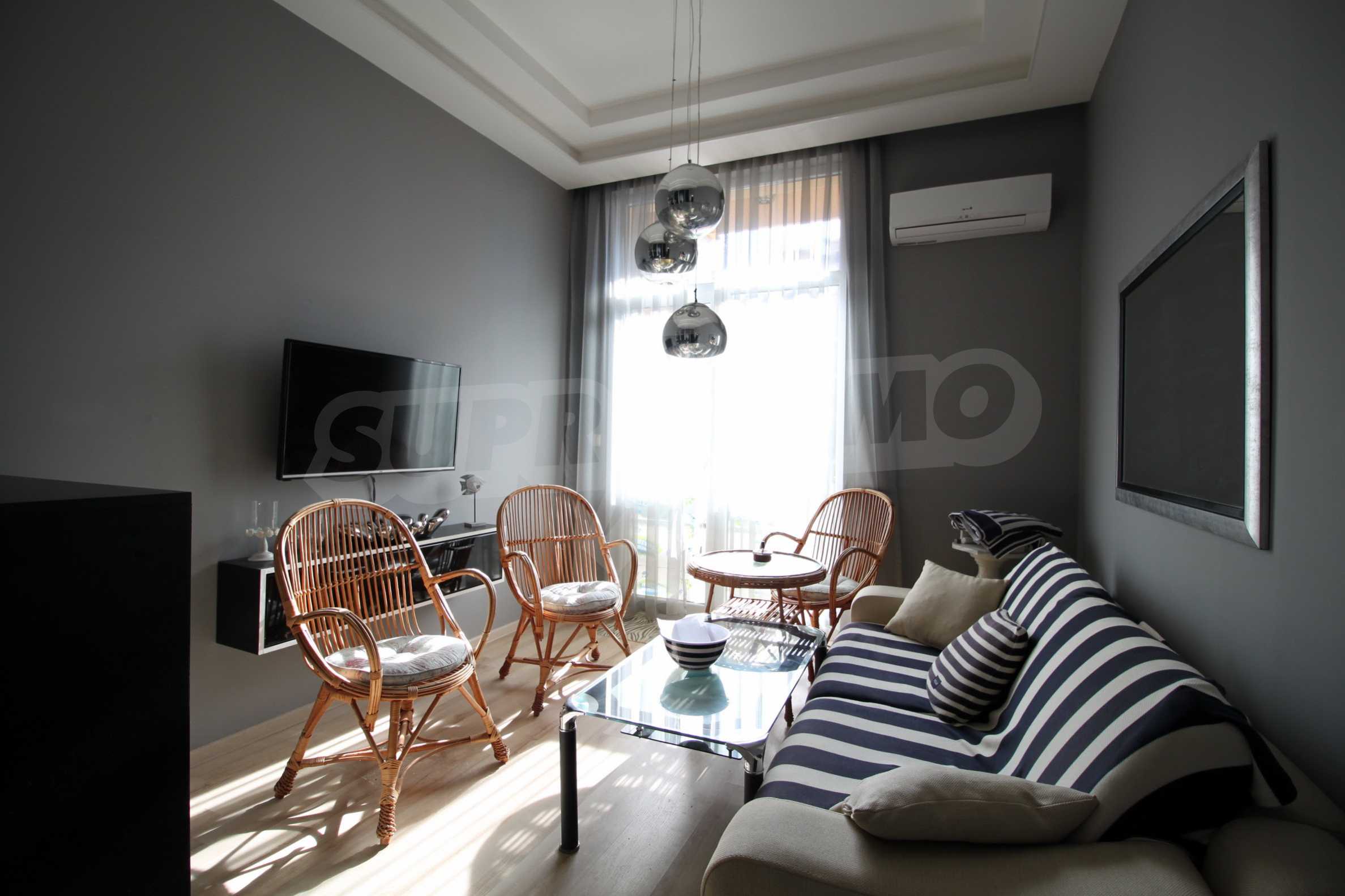 One-bedroom apartment of 54 m2 for sale in a luxurious complex with first class amenities and a swimming pool located in a quiet and western part of Sunny Beach resort, just 10 minutes from the beach and the sea.