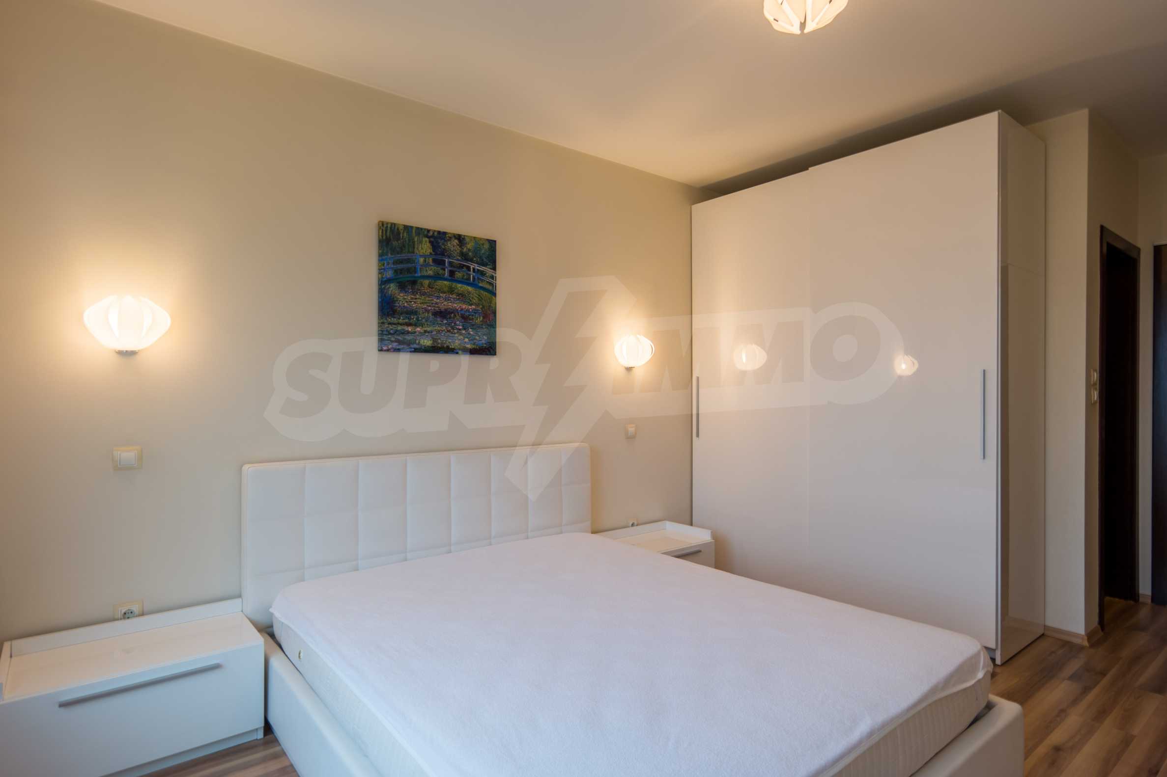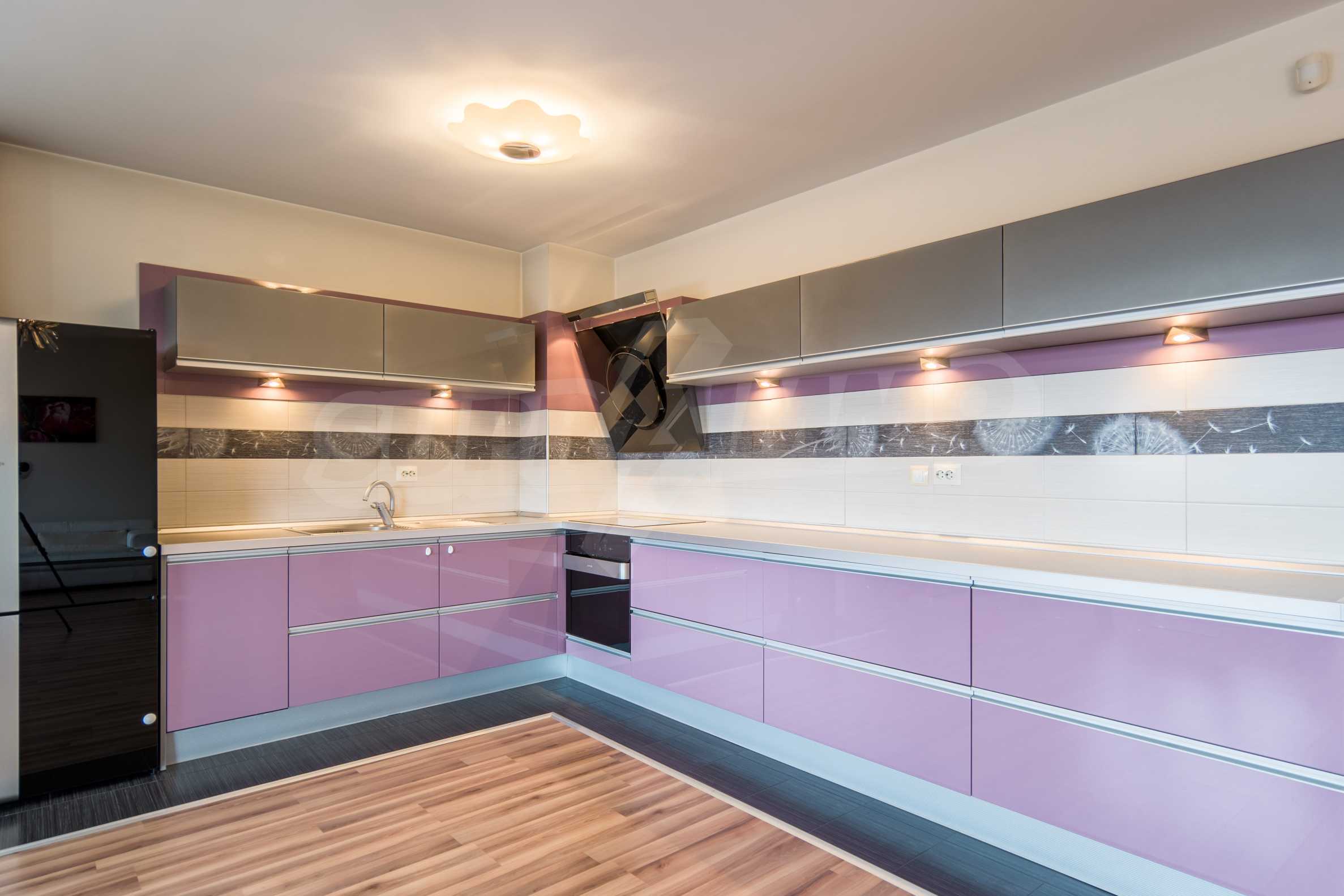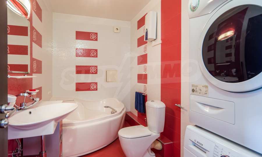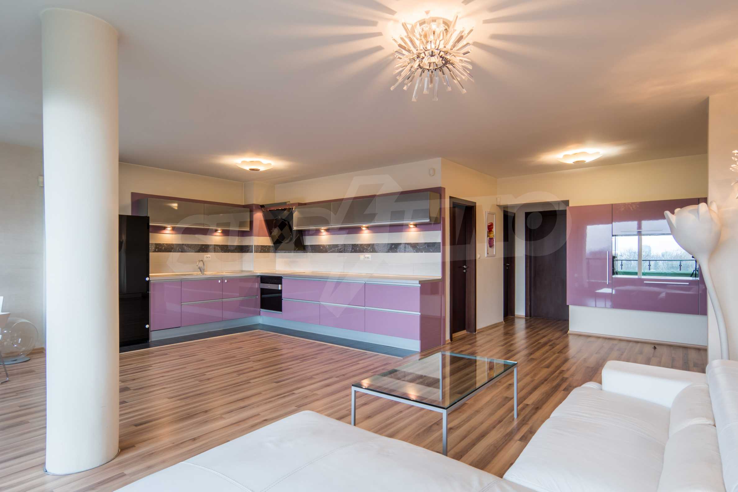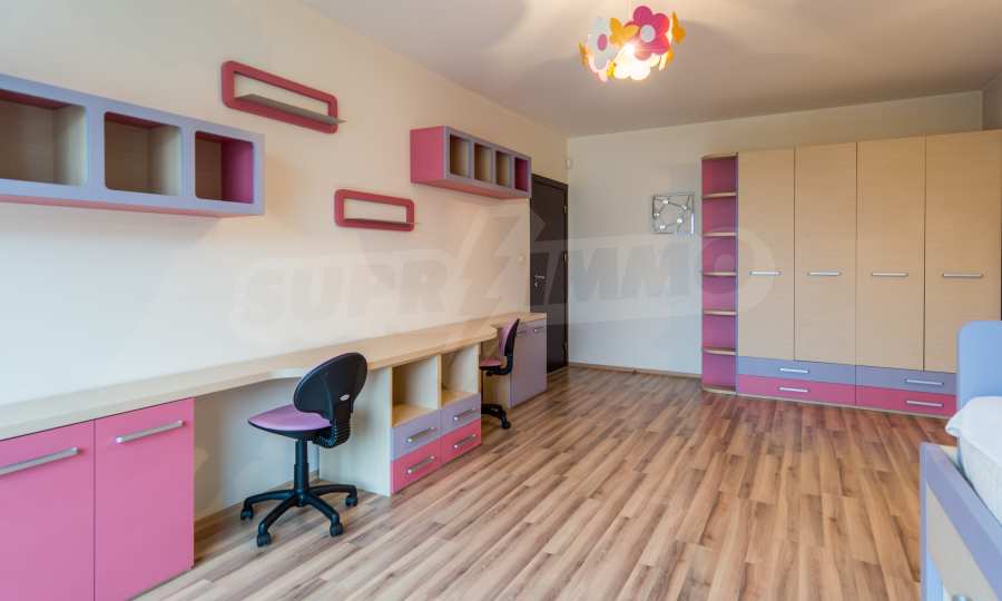 The apartment has an area of 134 m2 and has the following layout: a spacious living room with dining area and kitchenette equipped with everything needed for the tenants' comfort; a spacious terrace with sofas with spectacular views of South Park and Vitosha, a master bedroom with bath and toilet; second bedroom with terrace, bathroom with toilet.