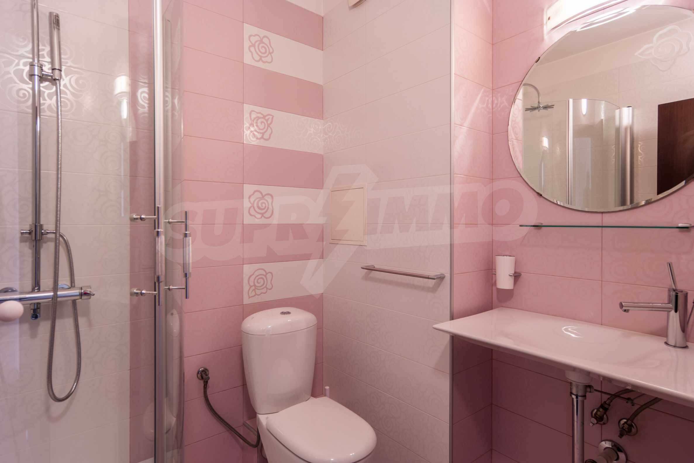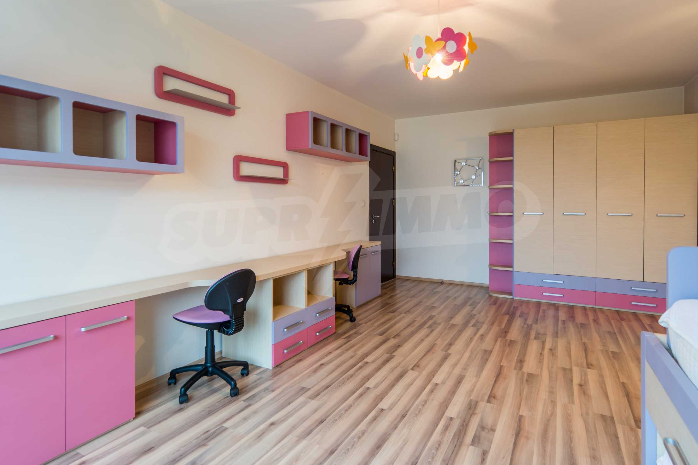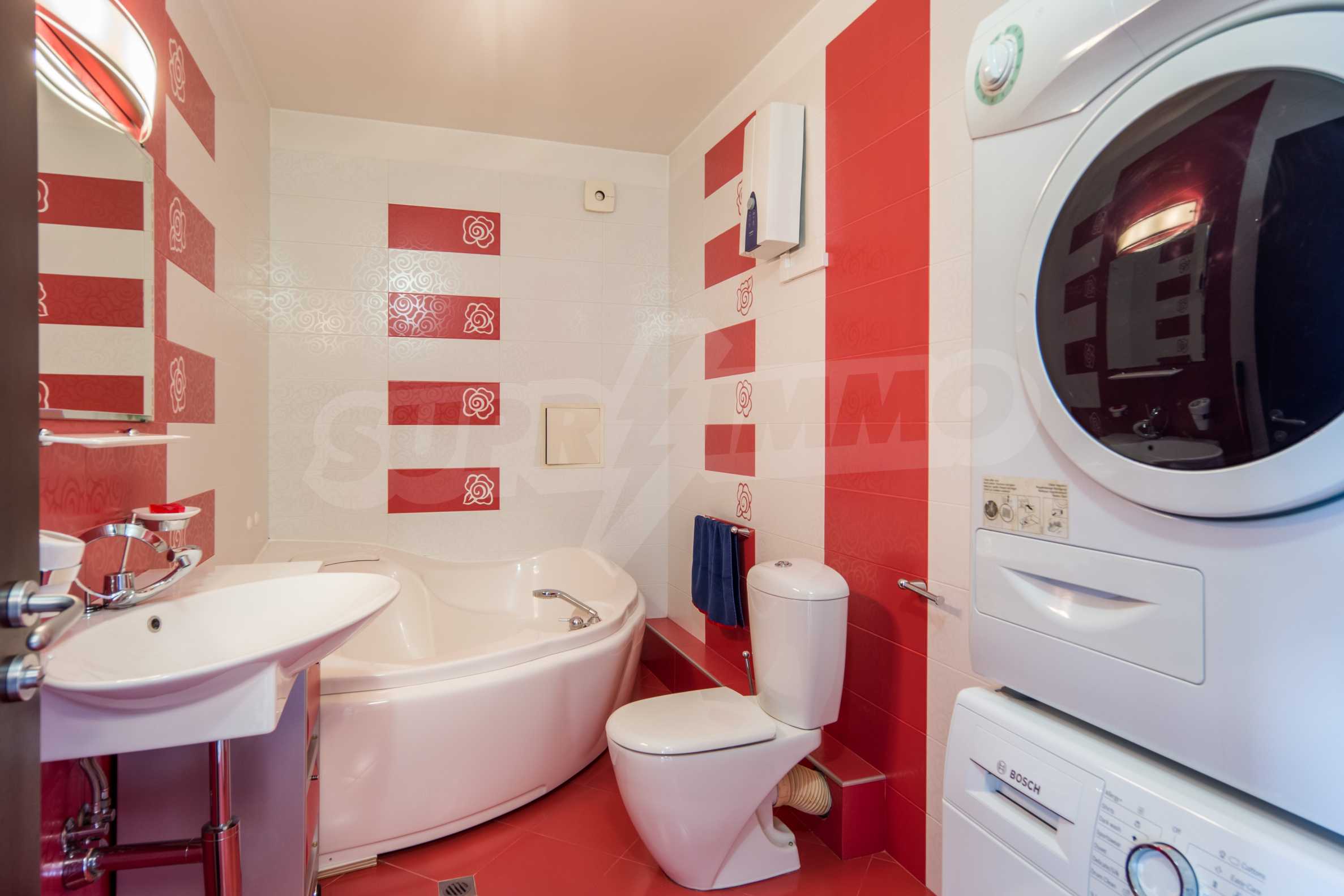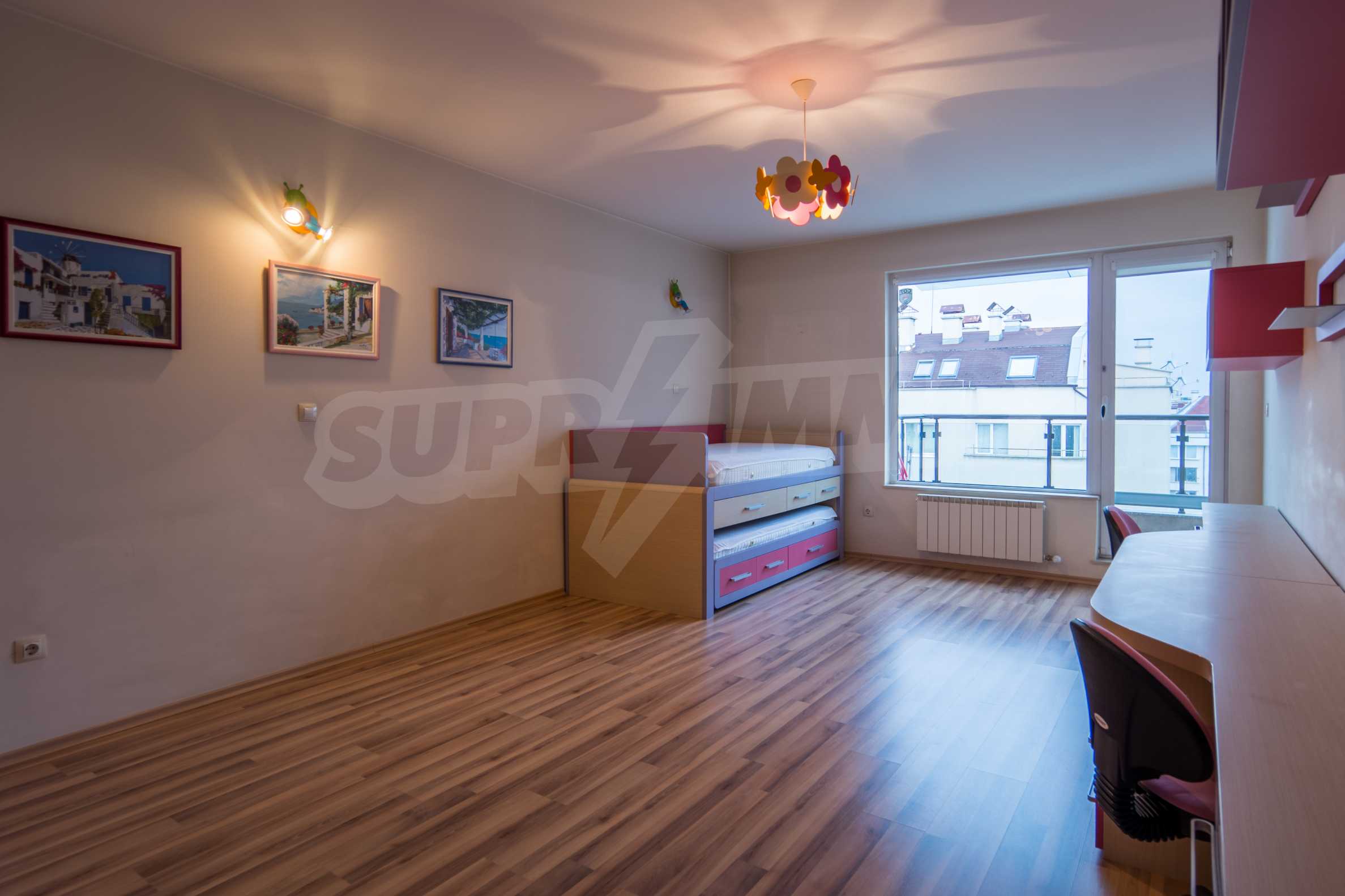 The apartment has an area of 134 m2 and has the following layout: a spacious living room with dining area and kitchenette equipped with everything needed for the tenants' comfort; a spacious terrace with sofas with spectacular views of South Park and Vitosha, a master bedroom with bath and toilet; second bedroom with terrace, bathroom with toilet.