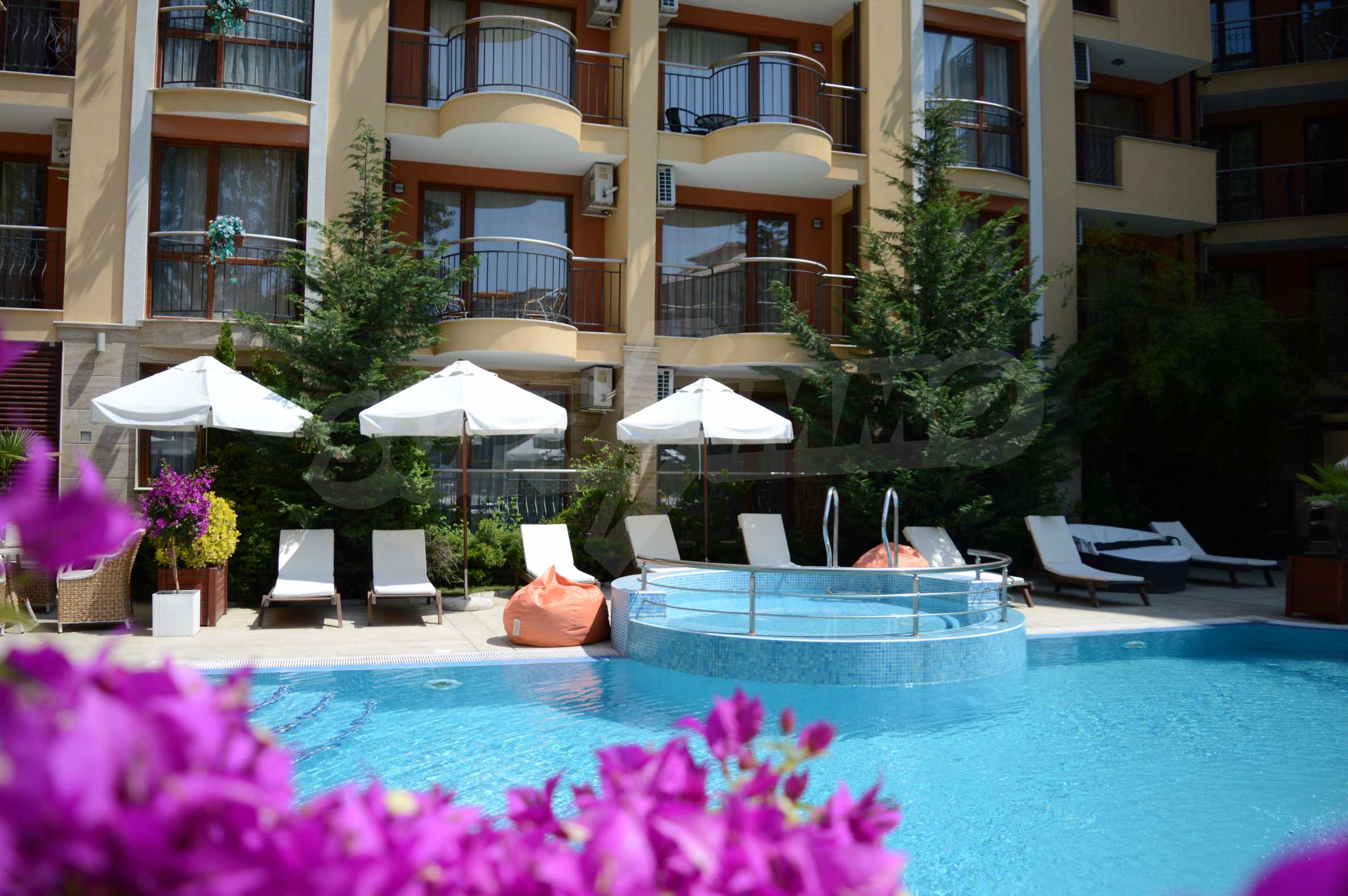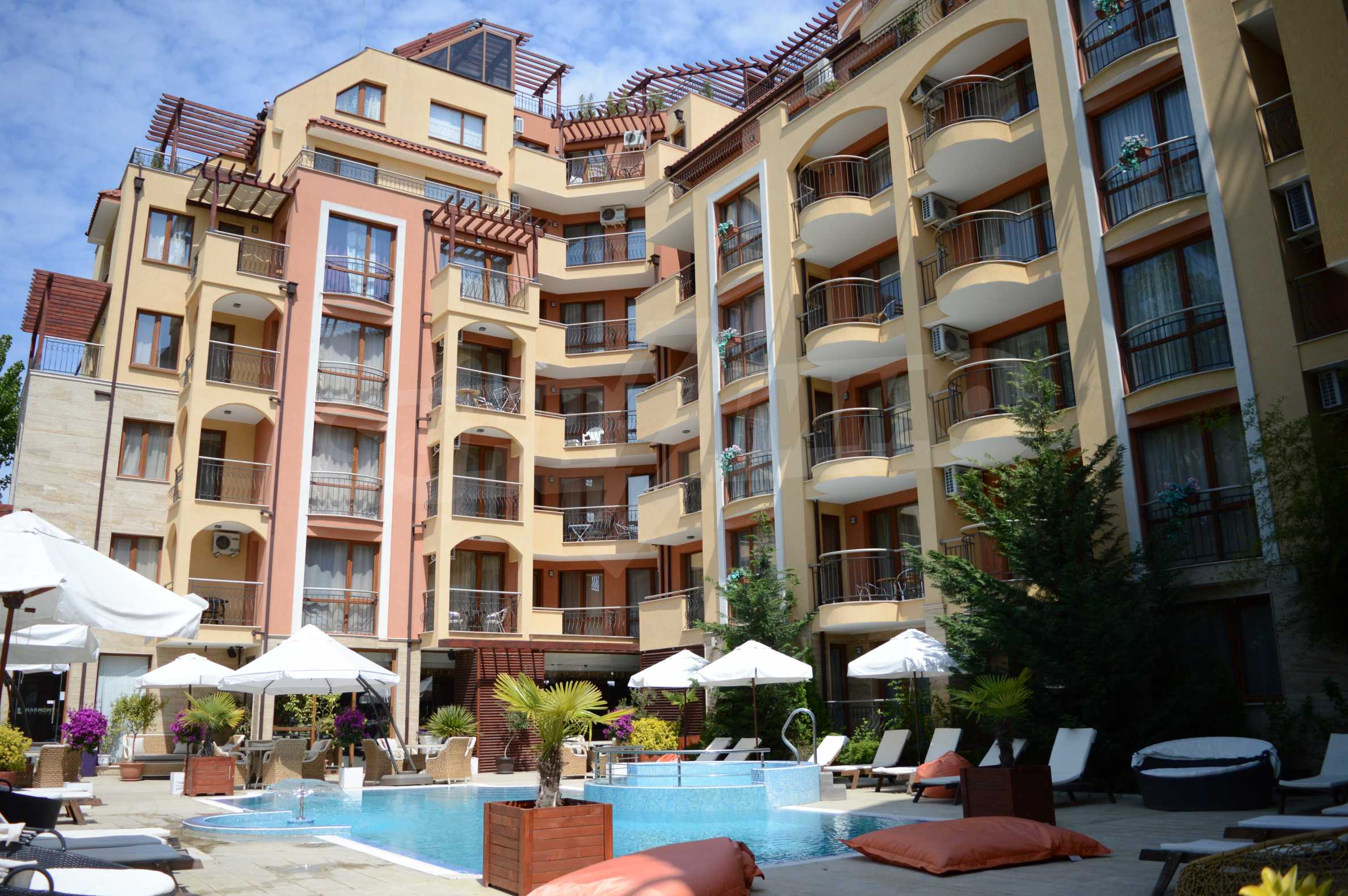 The complex stands out with an elegant architectural look and nice swimming pools and relaxation areas on site. The buildings are on 6 and 7 floors and have 2 and 3 modern elevators and well maintained, well-executed common parts.