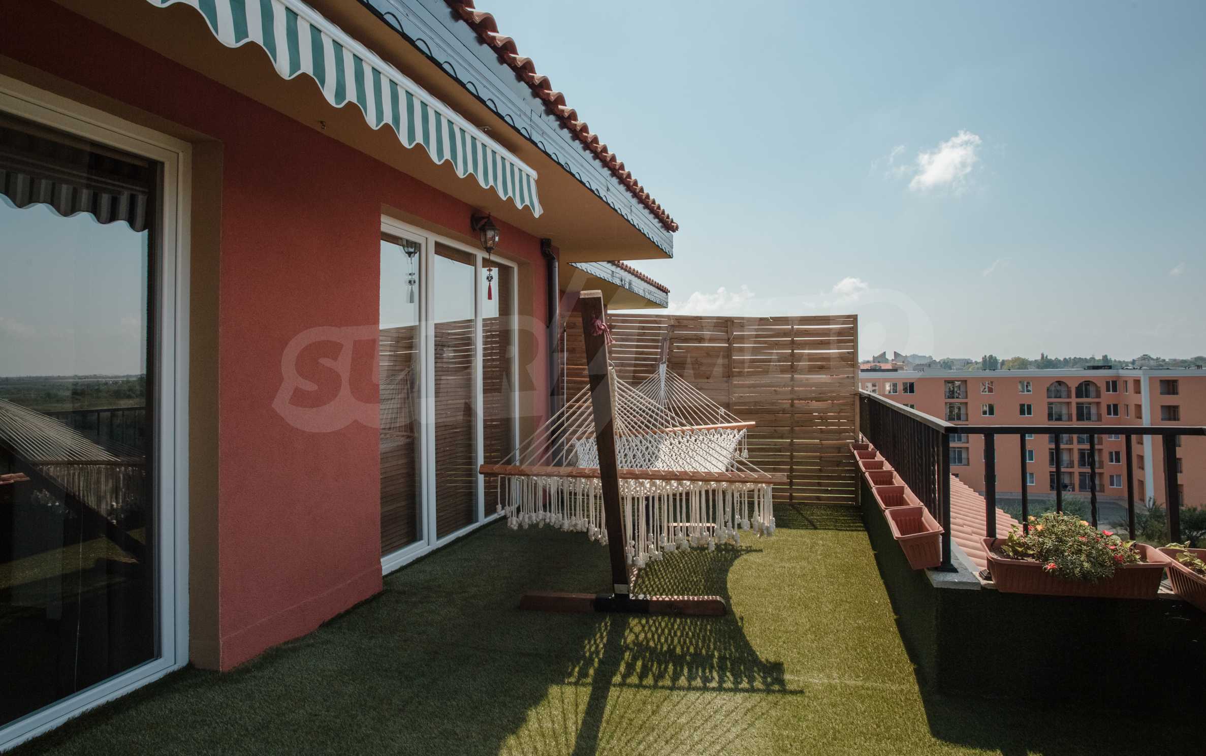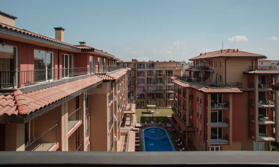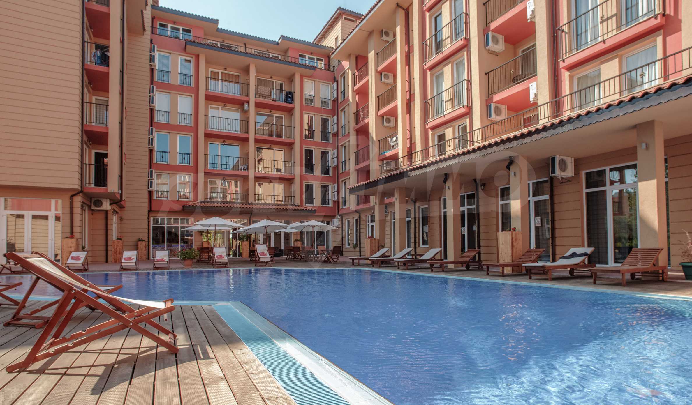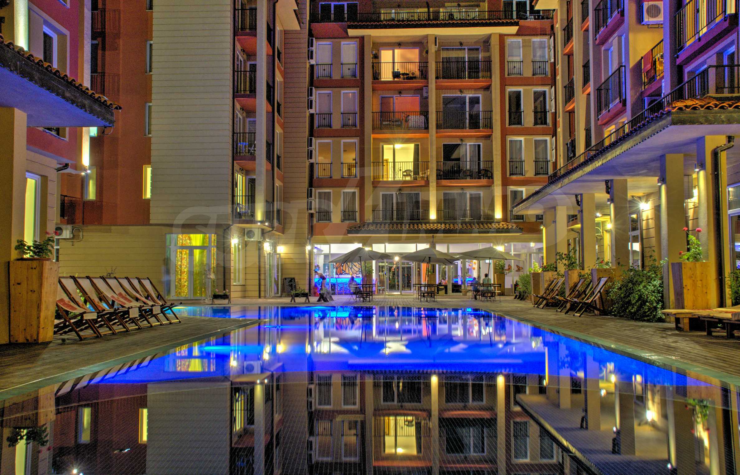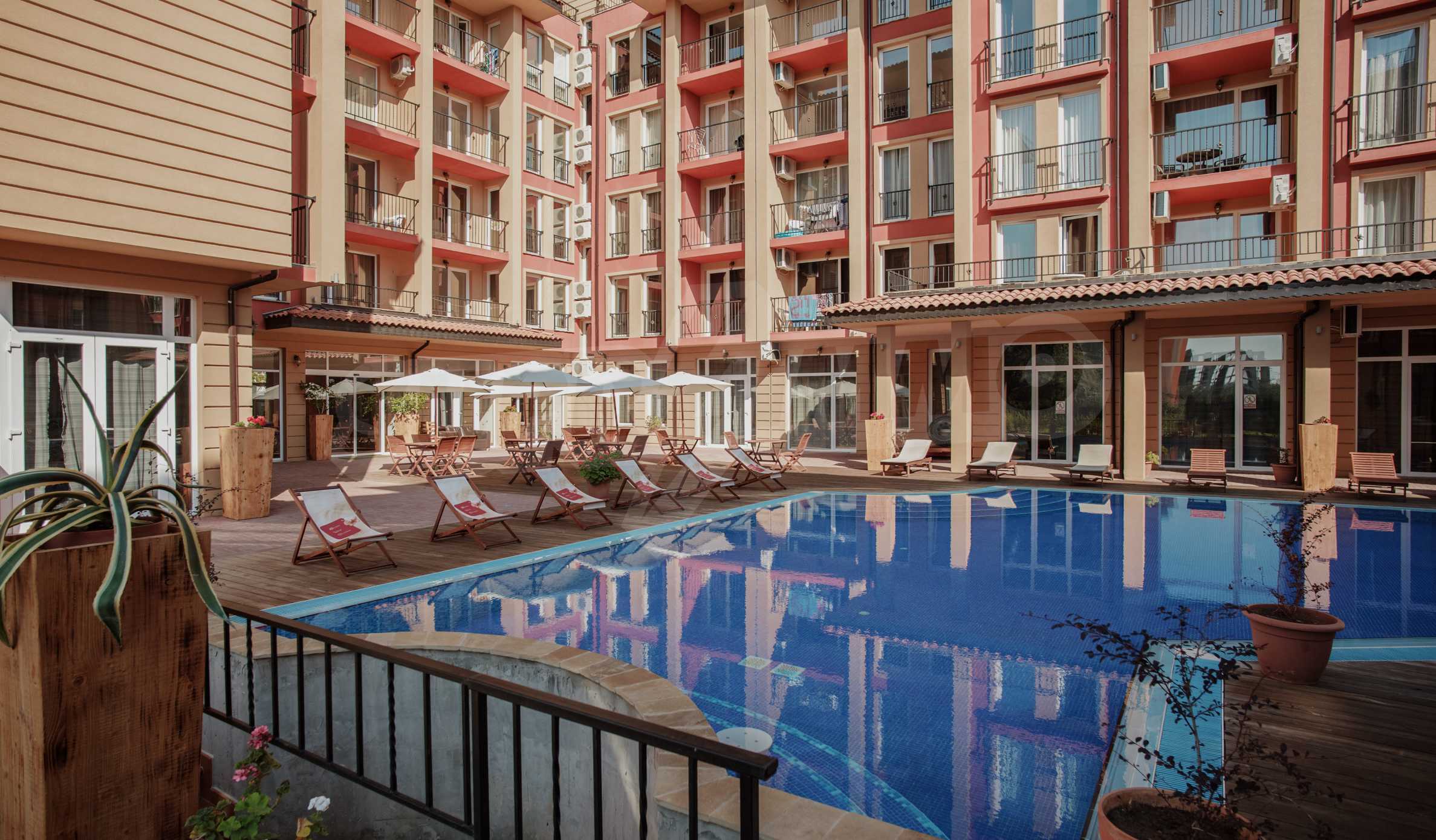 Апартаментите са разпределени в три отделни сгради на по шест етажа. Изложението на комплекса е на юг, като гледките са към басейна и спортна площадка. Към комплекса има множество екстри, които правят престоя приятен.