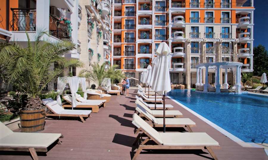 The elegant complex is surrounded by good infrastructure, enjoys its distinctive architectural style with modern accents and luxurious fa?ade decor, with spacious balconies and southeast exposure. It combines a luxurious atmosphere with many extras and comfortable apartments with excellent conditions for rest. The complex consists of 132 apartments of different types, namely studios, one-bedroom apartments and two-bedroom apartments. The new properties have nice views of the sea, the pool and the park.
