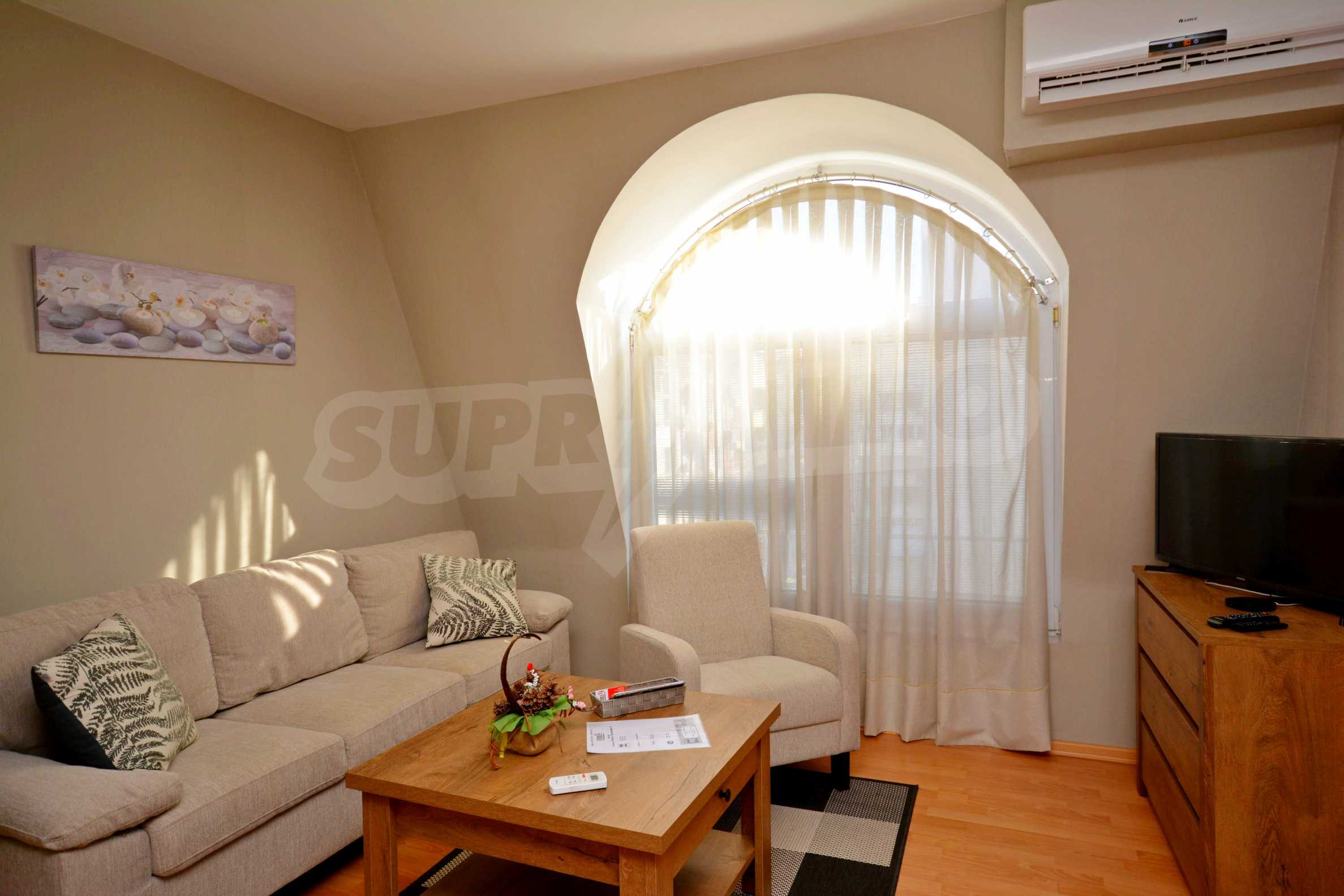 The apartment is stylishly furnished and offers its future users everything needed for their comfort and convenience. The area is extremely communicative, just 2 minutes from Novotel Hotel, Main Street, Tsar Simeon's Garden, the Old Town, many bus stops, supermarkets and more.