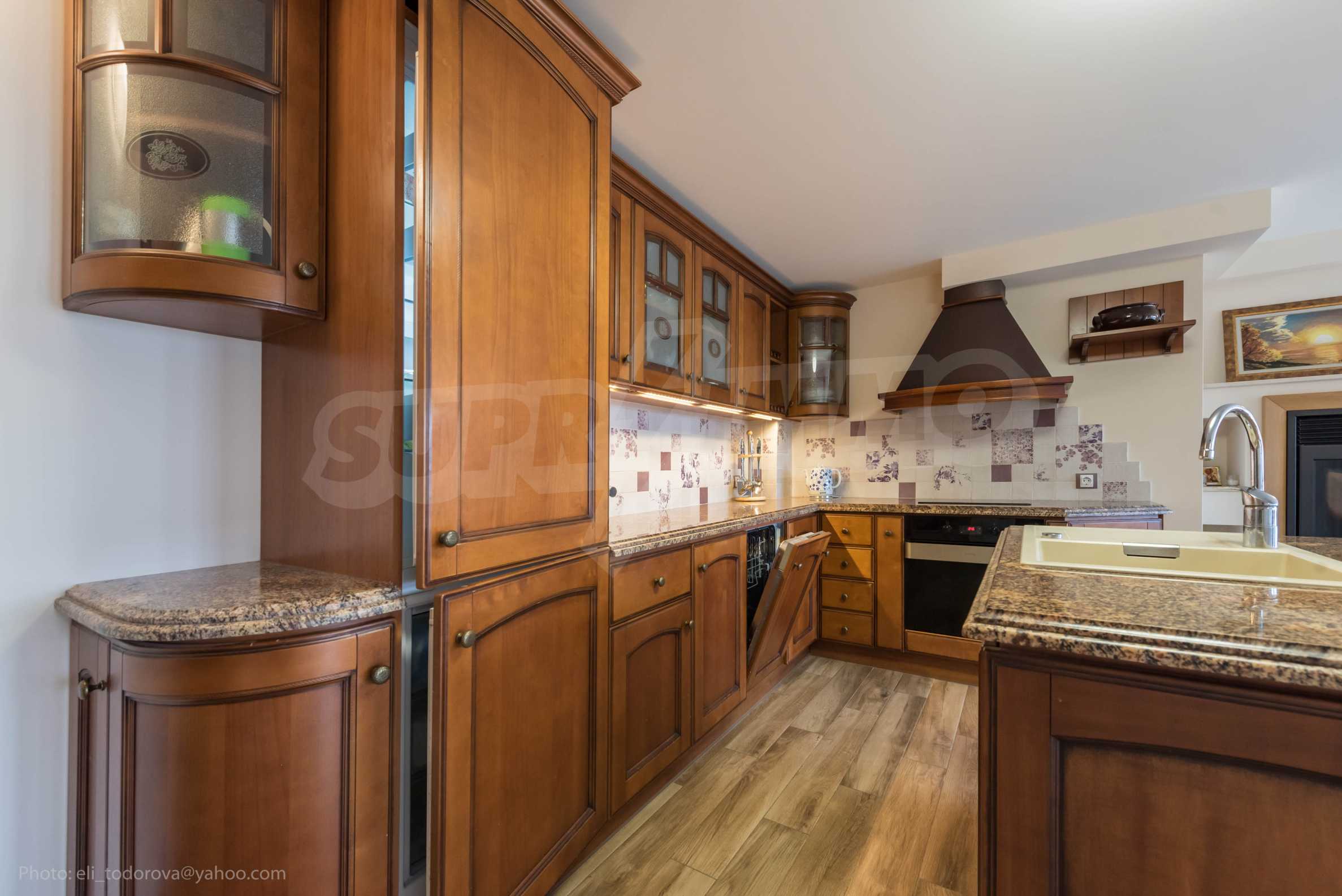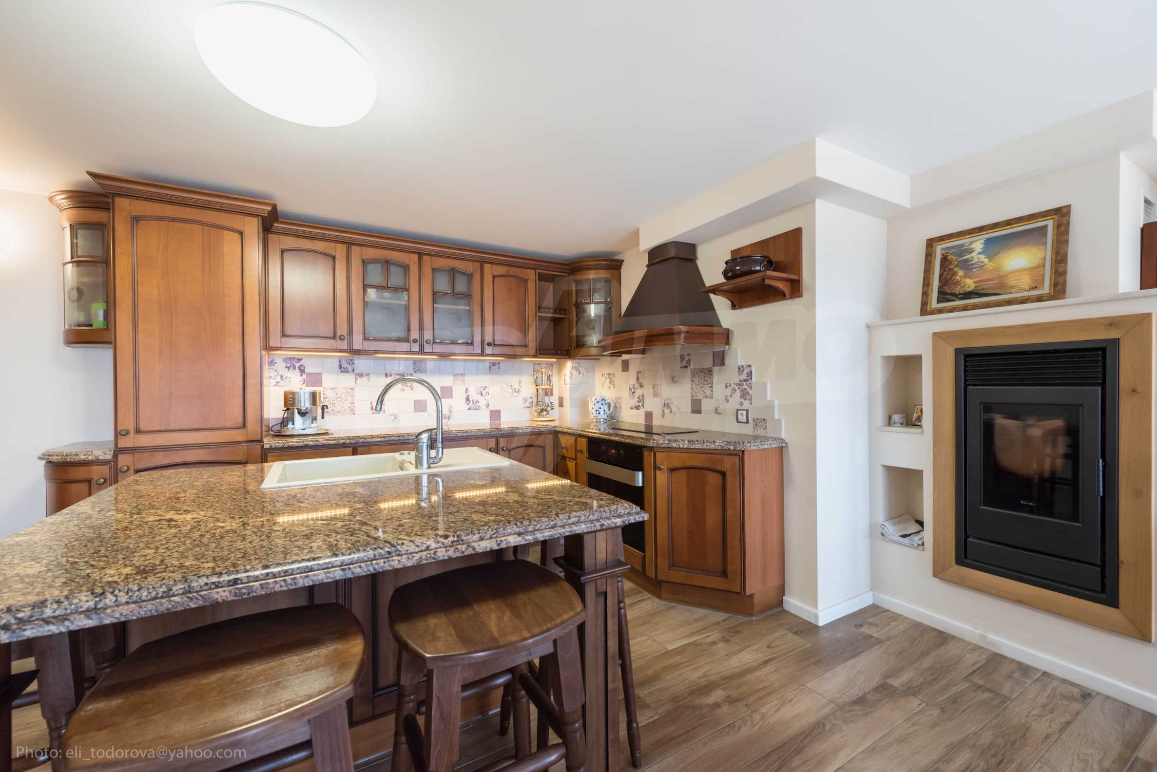 Full equipment in the kitchen: oven, hob, kettle, coffee machine, dishwasher, refrigerator with freezer, TV, vacuum cleaners (household and for the fireplace), utensils.